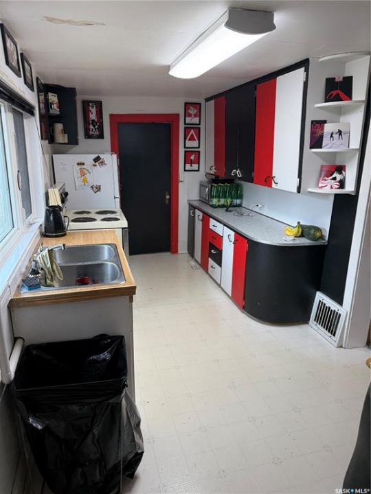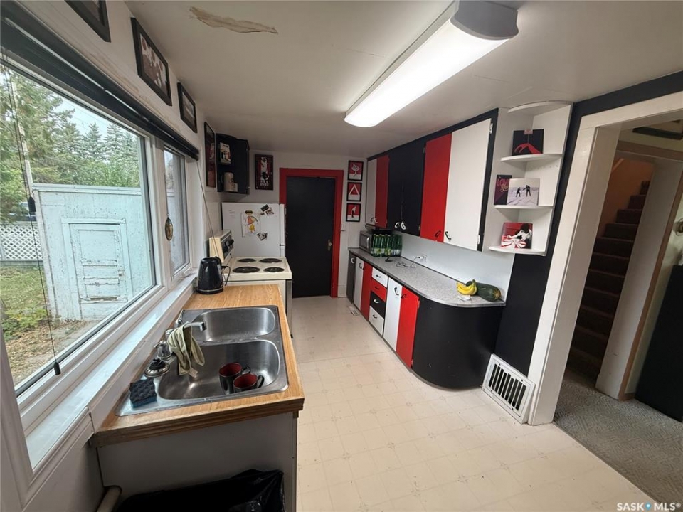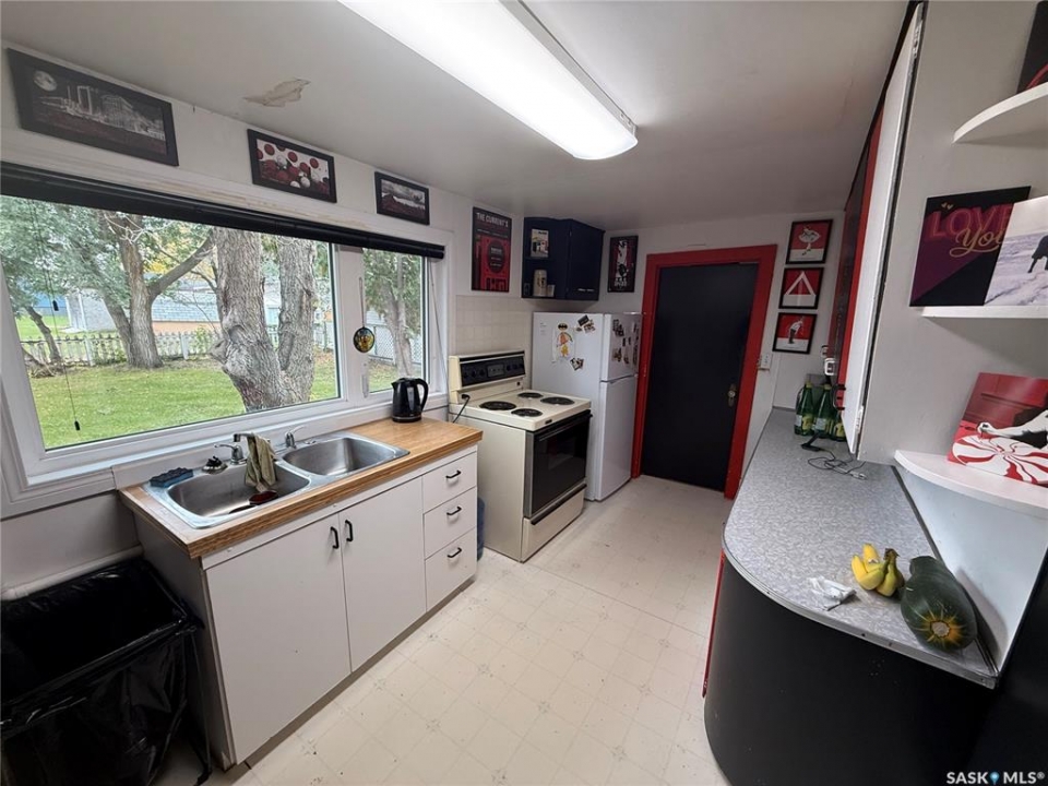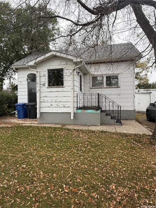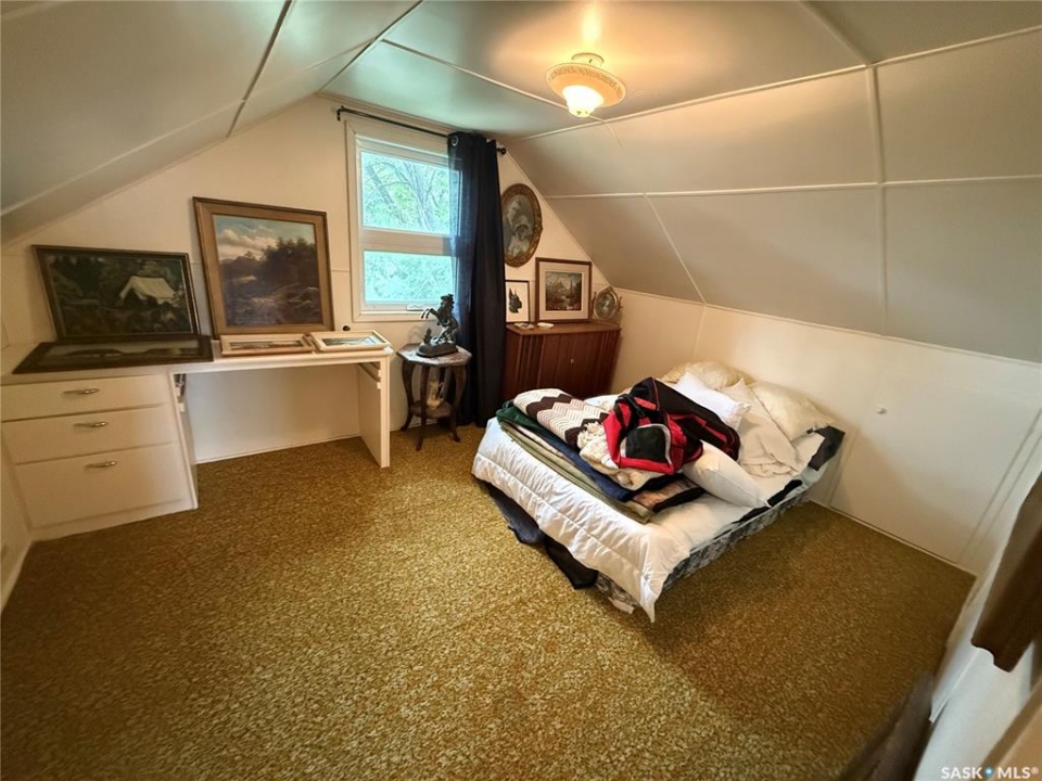 Charming 4 bedroom home that won't break the bank! This character home offers a large foyer, 2 main floor bedrooms, spacious living room with patio doors that face east. It has a galley style kitchen and dining room with a large window that looks out to the backyard. Just off the kitchen is the main floor 4 piece bathroom/laundry. Upstairs offers 2 spacious bedrooms with tons of storage areas. The basement is concrete and has a room perfect for storing your seasonal items. The outside yard is very private with a mature shelter belt and a attached garage. The garage has a concrete floor. You won't find a more affordable 4 bedroom home on the market!