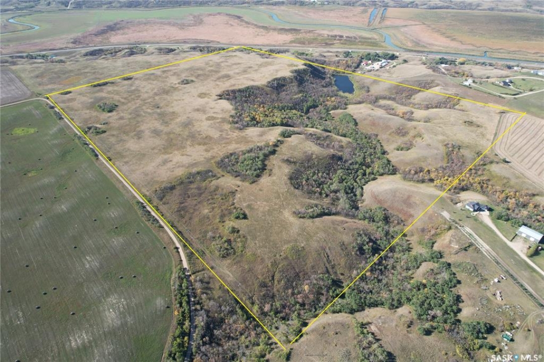 One full quarter section of farm land that has 50 acre good arable land, 105 acre of native grass with beautiful coulee, large pond, a creek, and amazing view of the valley and coulee. Land is partially fenced. 50 acre arable land is currently in tame grass, but can be broken up and farmed for grain production. There are a few good building sites for luxury houses with beautiful view of the valley and coulee. The neighboring community is on Pipeline water. Location of this land can not be any better: 3.5 km to Last Mountain Lake, 10 Km to the town of Lumsden, 33 km to Regina city limits. The neighboring land has already been developed into a small community.