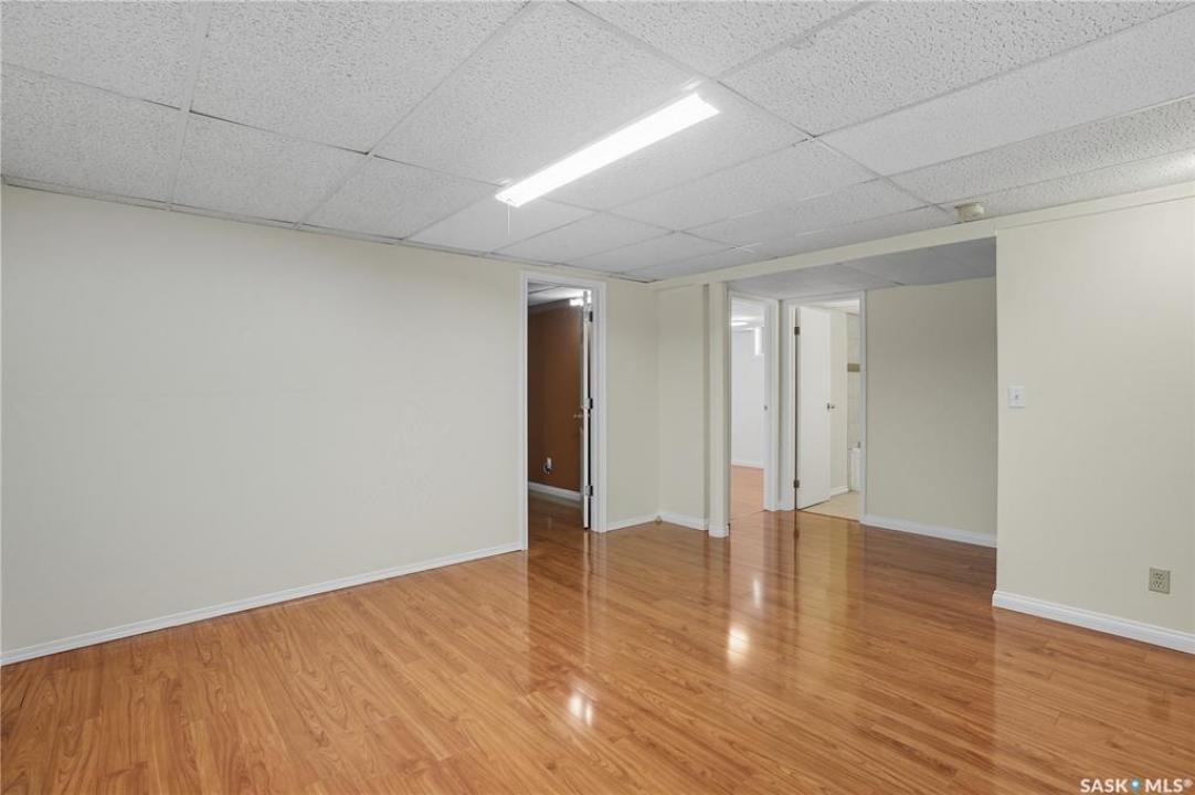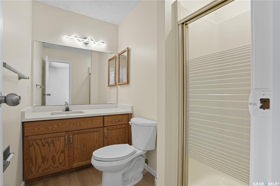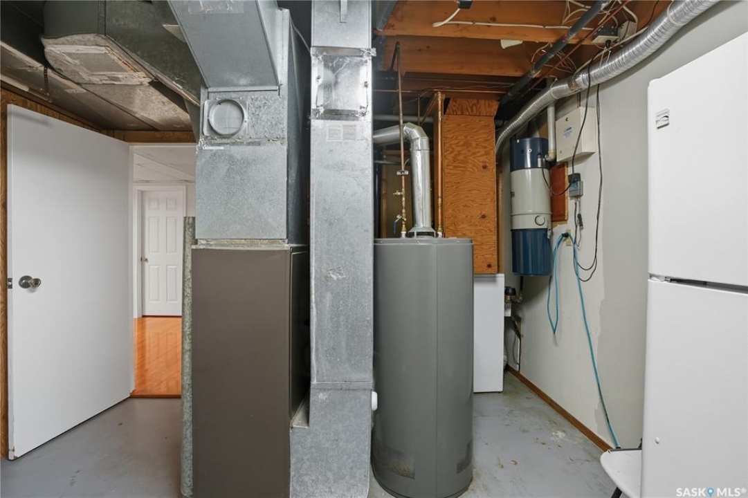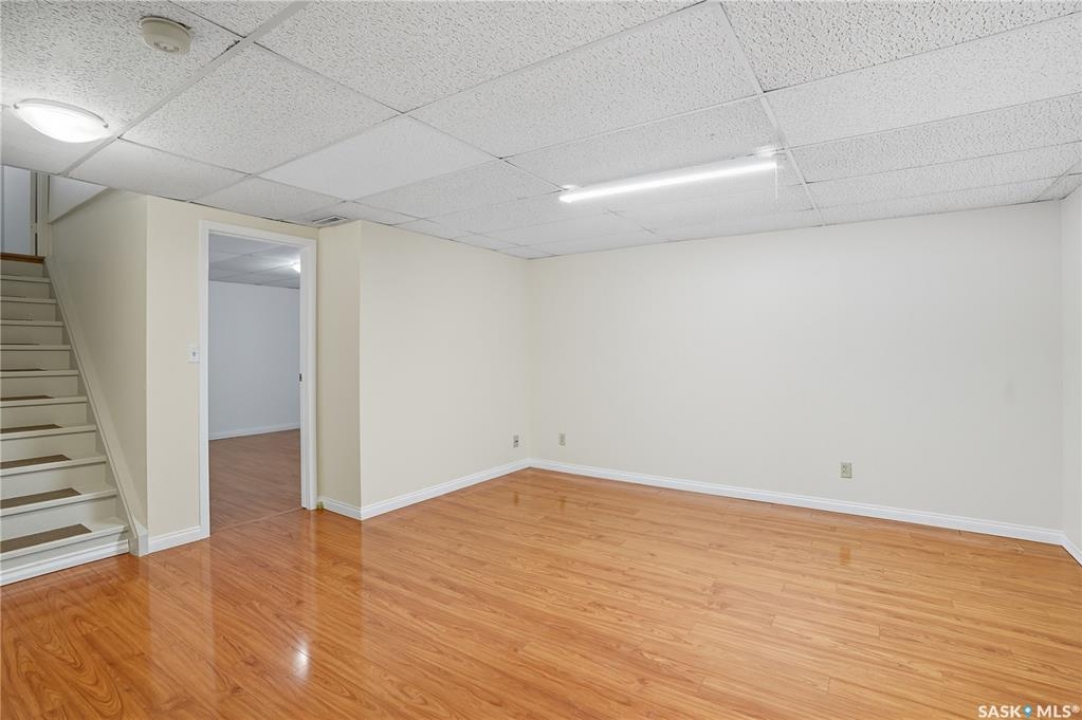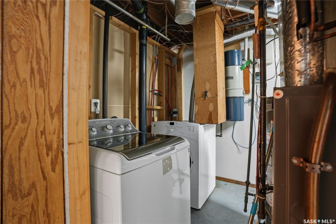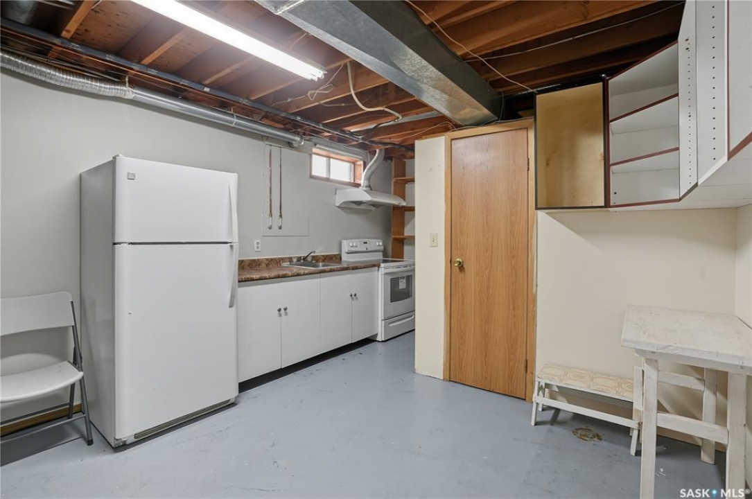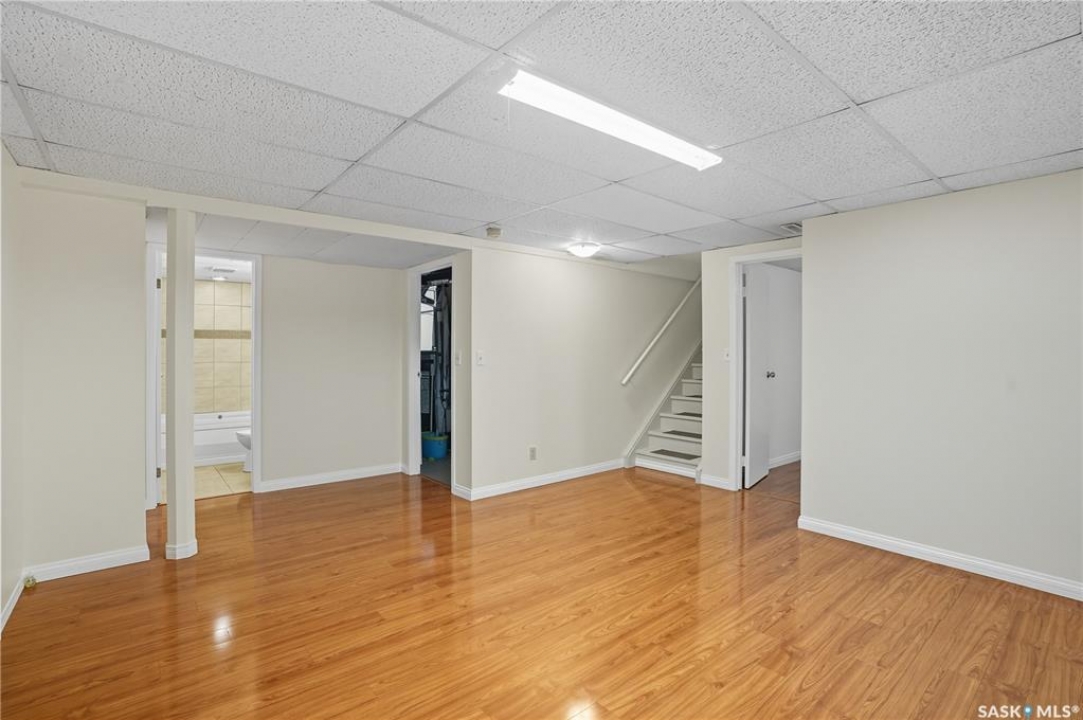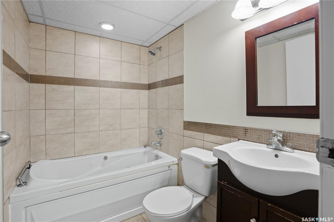 Welcome to 102 Bonli Crescent, a beautifully updated bungalow in the sought-after Erindale neighbourhood, known for its excellent schools, parks, and convenient amenities. Set on a corner lot, the home features classic brick and vinyl siding, a fully insulated double attached garage, and a landscaped front lawn with underground sprinklers. Inside, the main floor feels warm and bright with hardwood floors in the living and dining areas. The kitchen blends charm and practicality with golden oak cabinets, quartz countertops (2023), tile backsplash, a sink overlooking the backyard, hood vented outside, and appliances including stove (2023), built-in oven, fridge (2023), dishwasher, and microwave. Three main-floor bedrooms have new carpet, while the bathrooms are refreshed—a four-piece with new vinyl plank, golden oak vanity with quartz countertop, linen pantry, and new bathtub with new tile surround, and a three-piece en-suite with new vinyl plank and matching oak vanity. The basement, with a separate entry, offers great potential for income or extended family use. It includes a family room, two bedrooms, a four-piece bath, a storage room, and a utility room with laundry, mid-efficiency furnace, central AC, 40-gallon boiler, central vac, and 100A service. A second kitchen, complete with a stove, fridge, and hood vented outdoors, adds flexibility and value. The backyard is fully fenced with two newly replaced vinyl sides, a deck, underground sprinklers, a concrete pad, shed, and fire pit area for outdoor enjoyment. Recent updates include fresh paint throughout, new baseboards, repainted doors, LED light fixtures, and new flooring in bedrooms and bathrooms. Located near Dr. John G. Egnatoff School, Father Robinson Catholic School, Centennial Collegiate, and University Heights Square, with the Saskatoon Forestry Farm Park & Zoo nearby, this move-in-ready home offers comfort, functionality, and investment appeal in the desirable Erindale area.