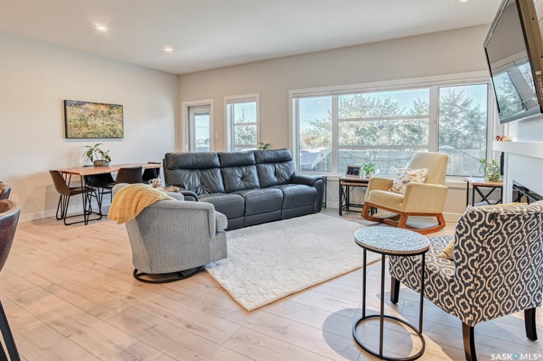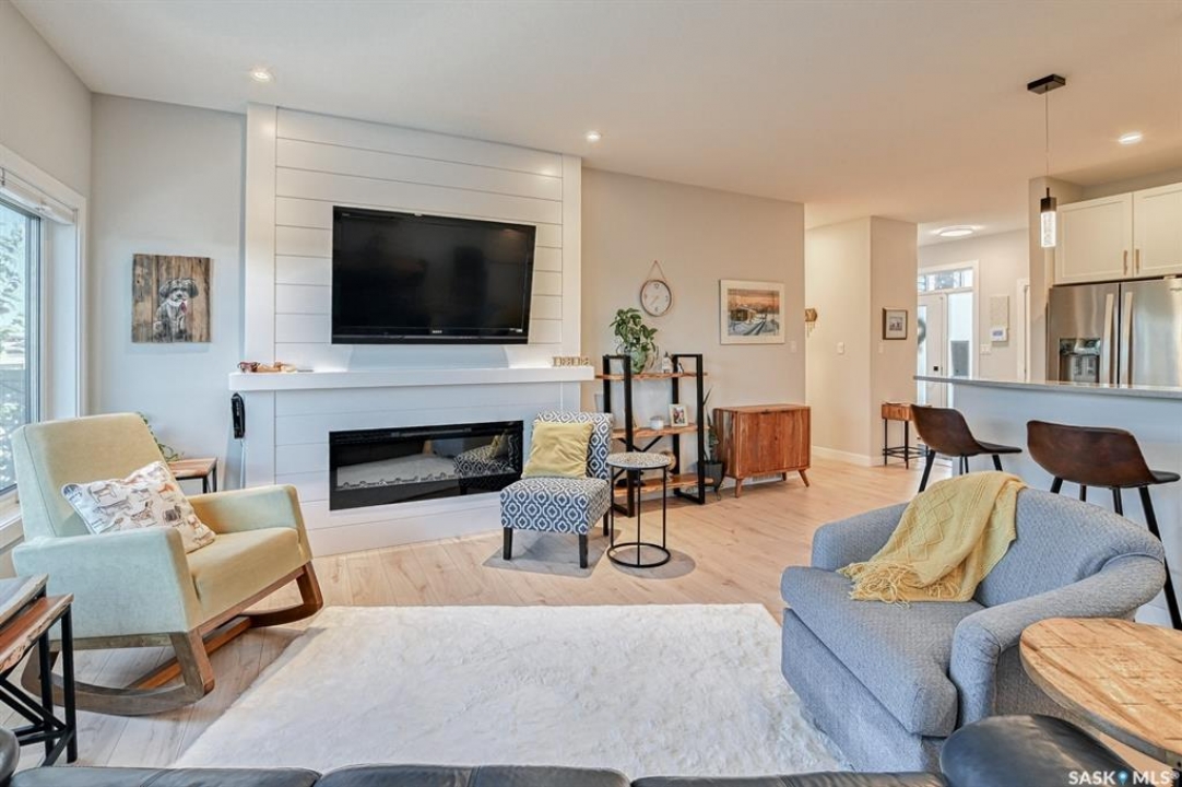 Welcome to 134-3960 Green Falls Drive, a stunning 3-bedroom, 3-bath condo in the Silver Oaks complex in Greens on Gardiner. This exquisite North Ridge built condo will impress you from the moment you step inside. Every detail has been meticulously crafted for comfort and style. The epitome of contemporary design, featuring an open-concept layout that seamlessly integrates living, dining, and kitchen areas. The gourmet kitchen is tailored with quartz countertops, stainless steel appliances, tiled backsplash and a convenient breakfast bar. In the living room, enjoy the comfort of a warm fireplace to enjoy your morning coffee or evening night cap. A garden door, with a phantom screen, off of the living room leads to a fully landscaped private backyard. The spacious primary suite has a walk-in closet and a three-piece ensuite with double sinks, spacious vanity with quartz countertop and plenty of storage. Additionally, the second bedroom has ample closet space, and a nearby 4-piece bath. A laundry room completes the main floor. With the partially developed basement, your living space increases with a spacious recreation room, a bedroom and a four piece bath. The double attached garage is fully insulated and has epoxied floors. Don't miss the opportunity to make this exquisite property your new home. Call today to book your viewing!