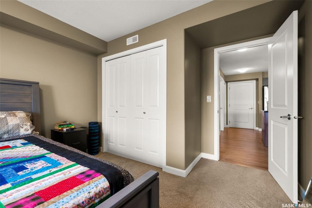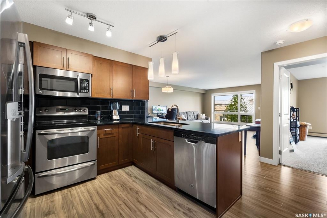 This modern 829 sq. ft. condo in Windsor Park offers a bright, open layout and stylish finishes in a well-managed low-rise building. Perfect for first-time buyers, downsizers, or investors, this home blends comfort and convenience with a prime east-end location. The spacious living room features large windows and direct access to a private balcony, filling the suite with natural light. The kitchen is thoughtfully designed with granite countertops, tile backsplash, stainless steel appliances, rich cabinetry, and a centre island with seating—ideal for entertaining or casual meals. The open dining area flows seamlessly from the kitchen, making the space warm and inviting. This unit includes a primary bedroom with generous closet space, a versatile den that works as a home office or guest room, and a full 4-piece bathroom. In-suite laundry with upgraded washer and dryer adds extra convenience. Other highlights include laminate flooring in the main living areas, carpet in the bedrooms, and central air conditioning. The unit comes with one underground parking stall and access to building amenities such as an elevator, secure entry, and guest parking. Condo fees cover water, heat, common area maintenance, exterior upkeep, reserve fund, snow removal, lawn care, and building insurance—providing peace of mind and low-maintenance living. Located close to parks, shopping, restaurants, schools, and all east-end amenities, this home delivers both lifestyle and location.