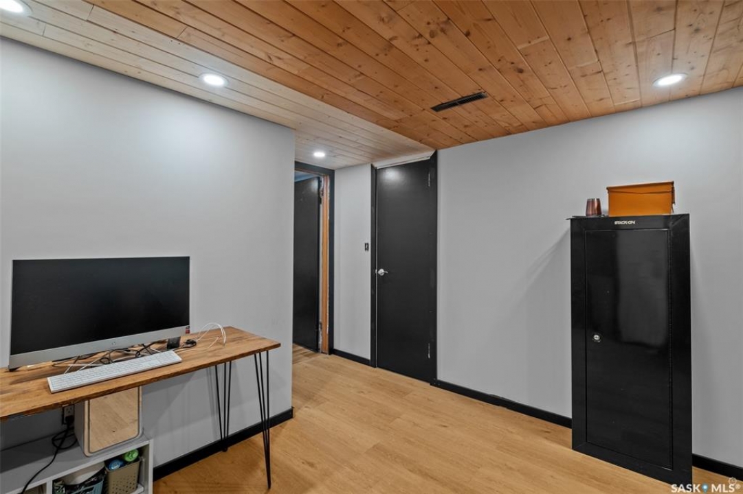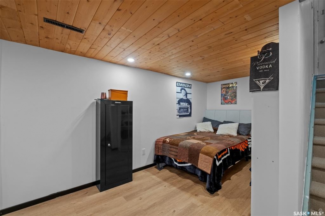 Just like living on an acreage but in the city! This charming 3 bedroom, 2 bathroom bungalow details 1,173 square feet of living space and rests on a massive .65 acre veteran lot. The main level of the residence features a bright and cheerful front living room, formal dining area that is flanked by a big oak kitchen that is accented by gorgeous granite counter tops. The lower level of the home comes fully developed with a cozy living room, upgraded mechanical room, spacious bedroom and a ton of storage space. Additionally the property provides a heated 2 car attached garage with mudroom, a detached steel shop and a coverall quonset.