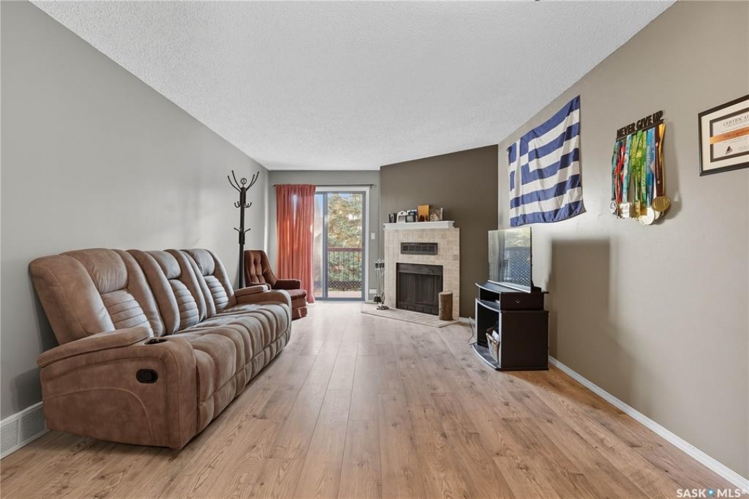Perfectly located just steps from Rochdale Park—with the lake, walking paths, arena, and all the North End amenities nearby—338 Cedar Meadow Drive offers the perfect blend of comfort, convenience, and low-maintenance living. This bright and spacious upper-floor unit means no noisy neighbours above you, so you can truly relax and enjoy the peace and quiet of home. Inside, an open layout welcomes you with a cozy decorative fireplace—perfect for unwinding after a long day or hosting friends. The kitchen is fully equipped with all appliances, ample counter space, and plenty of cabinets to make everyday cooking easy and enjoyable. You'll love the thoughtful storage throughout, including built-in shelving and a well-organized laundry area that keeps things tidy and functional. Both bedrooms are generously sized, with the primary featuring two closets, and laminate hardwood flooring flows throughout most of the home for a clean, modern feel. A 4-piece bathroom completes the layout with comfort and style. Step outside to enjoy two large balconies—front and back—**ideal for morning coffee, fresh air, or warm summer evenings. There's even extra outdoor storage right on the balcony for added convenience. This condo also includes one electrified parking stall, and the location can't be beat—everything you need just minutes away. Whether you're a first-time buyer, downsizing, or looking for a smart, low-maintenance investment, this home delivers great value and an easy North End lifestyle. Come see for yourself how comfortable condo living can be at 338 Cedar Meadow Drive!