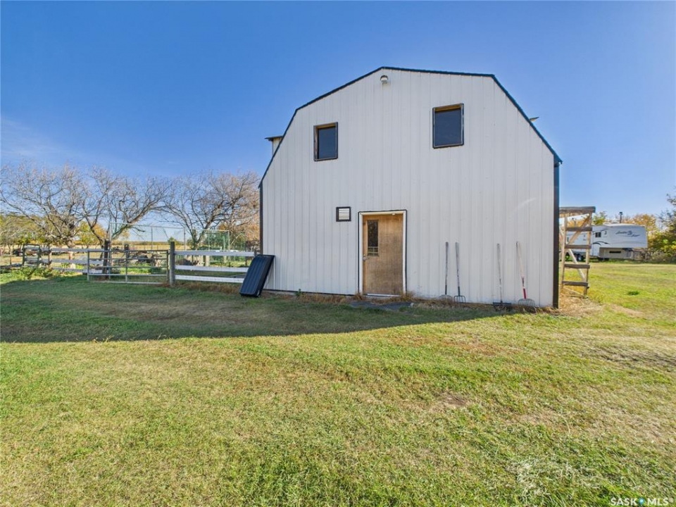 Visit REALTOR � website for additional information. Looking for that great spot for your horses. This acreage is set-up with its own riding ring, lots of space for grazing and room to add other animals. The barn is insulated and heated with 2 stalls, a storage room for saddles and ropes as well as a 24'x24' heated shop at the other end of the barn. There is a 26'x40' pole shed for equipment storage. 1 single car garage used as storage and the 2nd garage was used as a sheep barn. The house has had renos completed as well as a porch addition done 2025. There are 2 bedrooms on the main with a 4pc bathroom. The upper level has a 2 pc bathroom , 1 bedroom as well as extra room for what your needs are. There is also spots for storage in the loft. The basement is completed but could use some updating. The shingles were replaced in 2020. Hot water heater is new 2025. The sand riding arena is 100'x172' which also has hardwired lights. This acreage could support up to 5 horses grazing all summer. There are 2 tractors that can be negotiated to stay. Neilburg school bus comes to driveway.