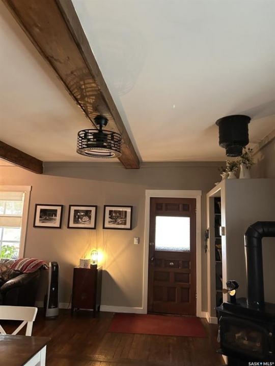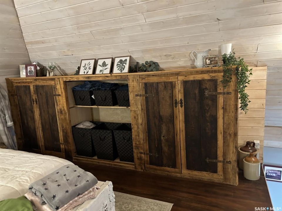 Step into timeless charm with this 1.5-story T. Eaton house, built in 1926 home blends historic character with modern upgrades, fully renovated 10 years ago. The main floor boasts 9' ceilings and original fir flooring, creating a warm, inviting ambiance. The living and dining room feature a cozy gas fireplace. Updated kitchen with S/S appliances, butcher block countertops, a country-style sink, and an Italian imported gas stove, a pantry with open S/S storage. The bath showcases an antique clawfoot tub, a 5' tiled walk-in shower, antique cabinetry accents. Main floor laundry, Upstairs, the primary bedroom offers original fir flooring, two dormer windows, and custom cabinetry crafted from repurposed barn wood lined with beech. The downstairs bedroom features open pine-clad beams, a copper-and-pine ladder to aloft. The unfinished basement provides ample storage, with a 230' deep well, 1400-gallon septic tank, and a 40-gallon electric hot water heater. The gas fireplace heats most of the home, with an electric recessed wall heater in the bathroom. The roof was completely re-shingled 2 years ago. The 20'x20' cedar deck with space for patio seating, lounging, and barbecuing, adjacent to a 4'x8' raised garden for fresh herbs or flowers. The expansive backyard, treed on all sides for privacy, is half-landscaped with rock gardens and a cozy firepit area, ideal for gatherings. A 20'x24' shed with a mezzanine, wired for 220v, is perfect for hobbies or a workshop. The front yard features rock gardens and a pond, driveway accommodates four vehicles, boats, or a visiting RV. Just 90 steps from lake access with a boat launch and room for your dock, world-class fishing for walleye and jack. The community offers a concession stand, a pickleball court, baseball diamond, beach volleyball court, kids' playground, mini-golf, and a band shell with a beer garden for summer events. A local farmers' market adds charm, while paved roads lead right to your door.