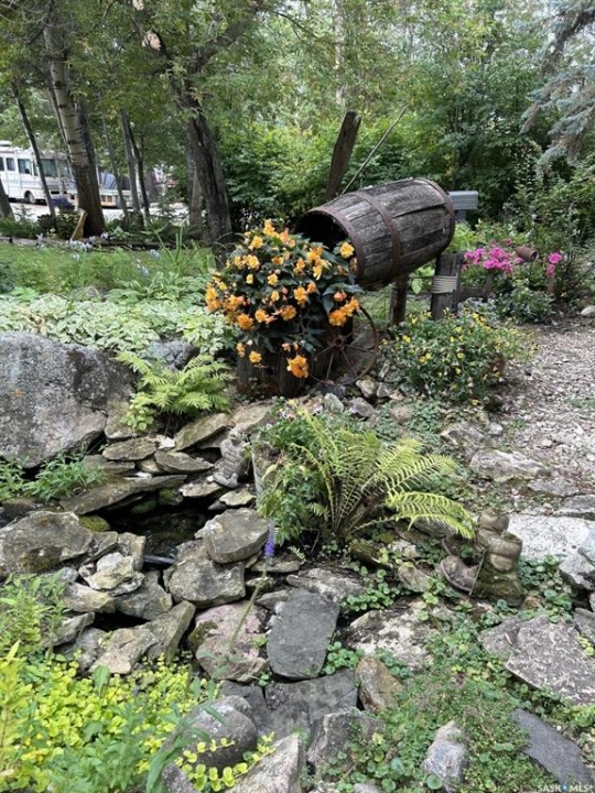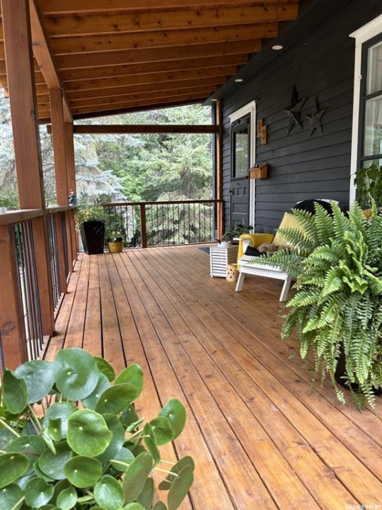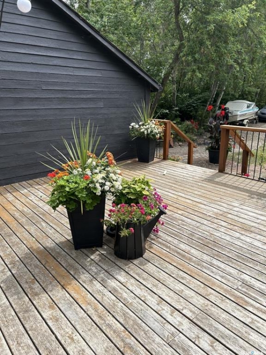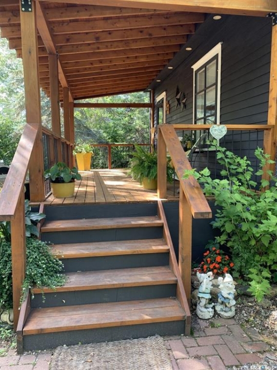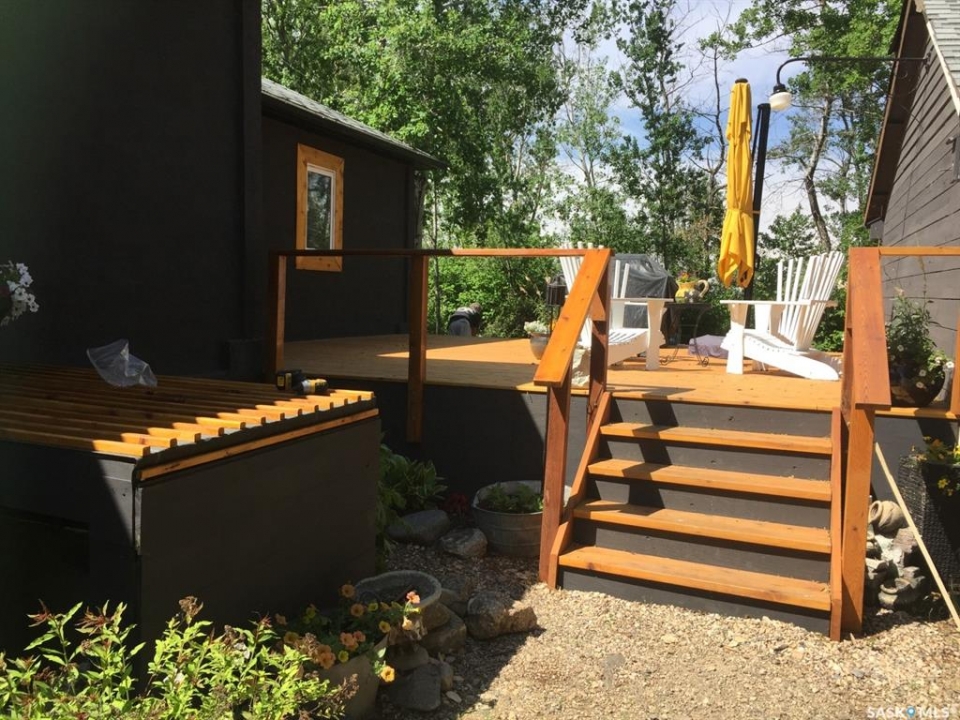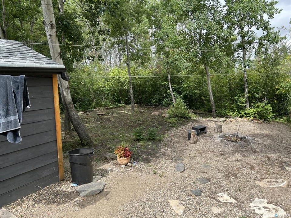 Outdoor: Deck, Garden Area, Lawn Front, Partially Fenced, Firepit, Trees/shrubs