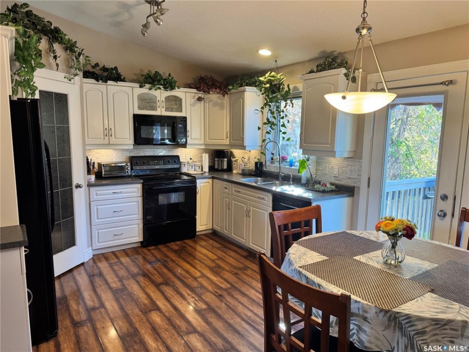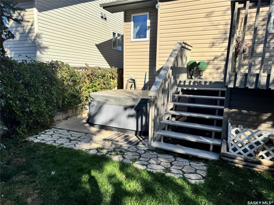 Your Backyard Oasis Awaits in Arbor Creek. This 1,024 sq ft bi-level has that welcoming “home sweet home” vibe the second you pull up—thanks to its charming rock fountain and quiet, family-friendly street. Inside, vaulted ceilings and big, bright windows set the tone, while a spacious kitchen and dining area make it easy to gather and entertain. All three main floor bedrooms are a great size, and both bathrooms feature skylights that flood the space with natural light. The fully developed basement is ready for fun nights in, with an extra bedroom and bathroom, a wet bar, a large TV, plus a projector and big screen—hello movie nights! Shingles were replaced just 5 years ago, and the home is equipped with central air conditioning and underground sprinklers front and back. Step outside and fall in love with your private backyard oasis: a big deck, mature trees, and even a hot tub to unwind in. Add in a 2-car attached garage, and this Arbor Creek gem truly has it all. Don't wait—book your personal showing today and make it yours!
