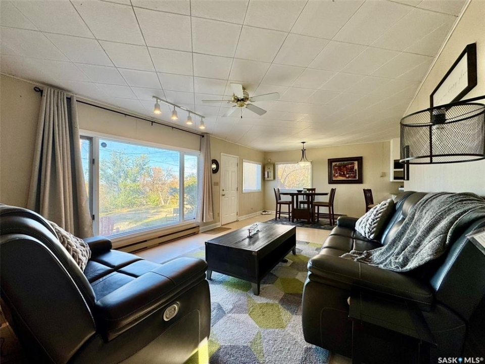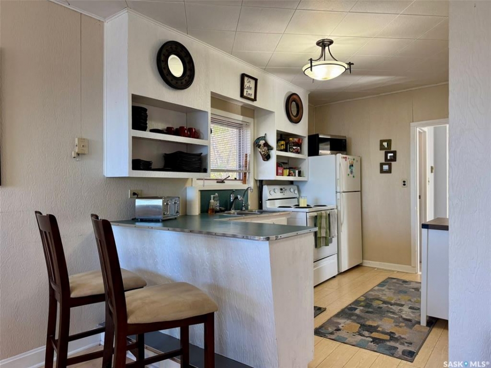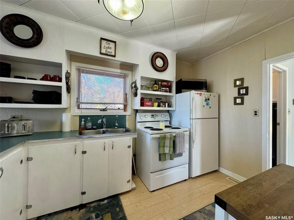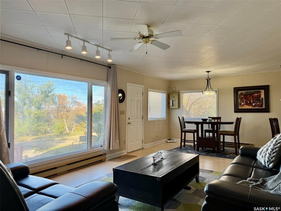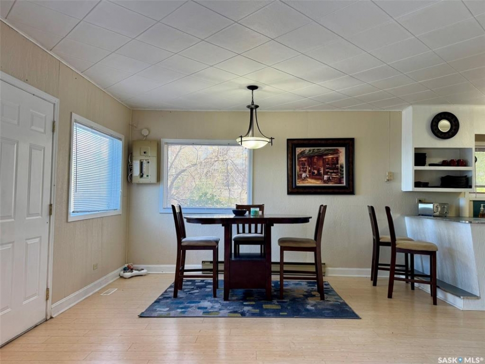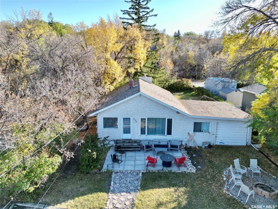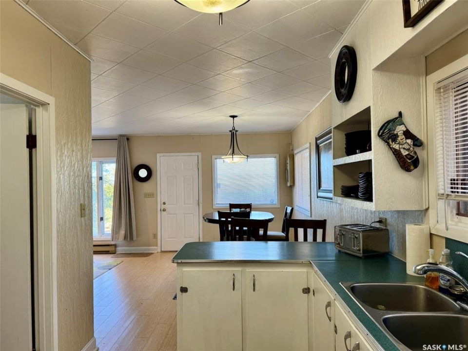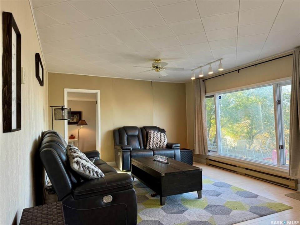 Location & Lake views!!! This bright, cheery cottage/home situated on a huge 132'x132' lot is located only 2 blocks from the main beach and yacht club. Well designed interior with convenient kitchen, open style living/dining room and a cozy family room with wood burning fireplace. Two bedrooms, a den that is presently used as a third bedroom and a 4pc. bath complete the interior. Attached single garage used for storage only. Outside you will find a large deck off the family room and a large patio and firepit area overlooking fantastic views of Last Mountain Lake. This expansive property provides plenty of room for future development or convenient storage for all your recreational vehicles and outdoor gear. Don't miss out, call your realtor today!!