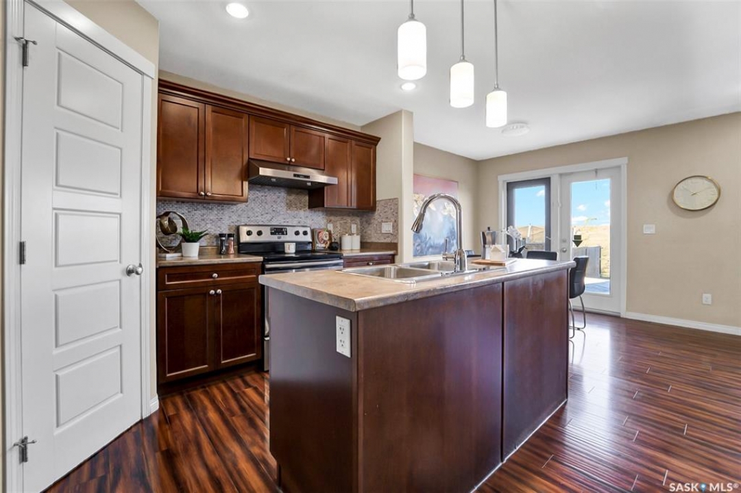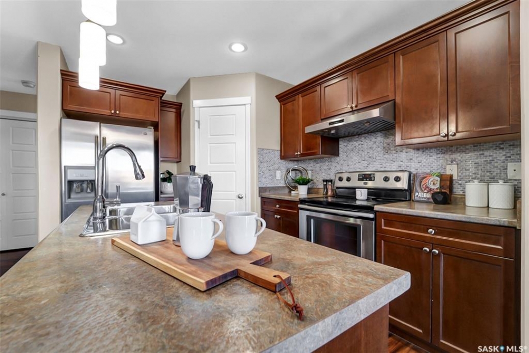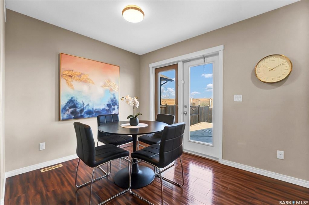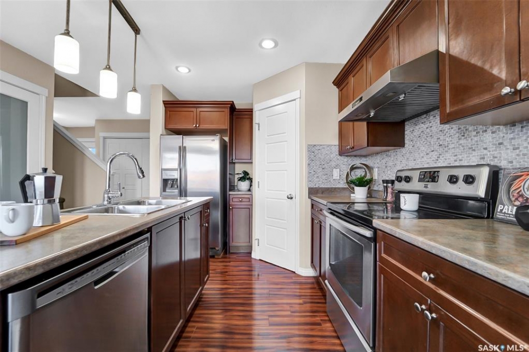Welcome to 203 Henick Crescent This well-planned two-storey home with a double attached garage combines style, comfort, and functionality. Ideally located in Hampton Village, it offers easy access in and out of the neighborhood and is just minutes from shopping, dining, and everyday amenities. Step inside to a spacious foyer that opens into a bright, open-concept main floor — perfect for entertaining or relaxing with family. Laminate flooring flows throughout, complementing the modern kitchen with ample cabinetry, modern backsplash, stainless steel appliances, and a pantry. The dining area features patio doors that lead to a large deck overlooking the fully fenced backyard — ideal for summer gatherings. Upstairs, the primary bedroom offers a peaceful retreat complete with a 4-piece en suite and walk-in closet. Two additional spacious bedrooms, a 4-piece family bathroom, and a convenient second-floor laundry area complete the upper level. The fully developed basement adds even more living space with a cozy family room, an additional bedroom, and a 4-piece bathroom. Additional highlights include central air conditioning, HEATED Garage and everything you need to simply move in and enjoy!