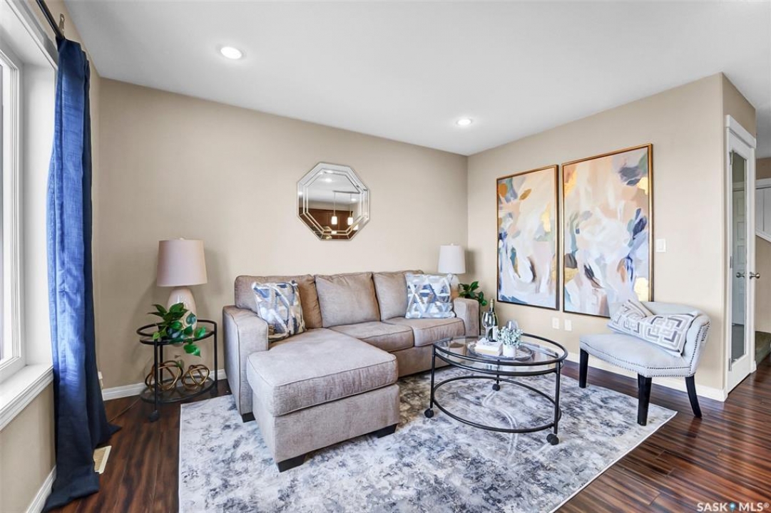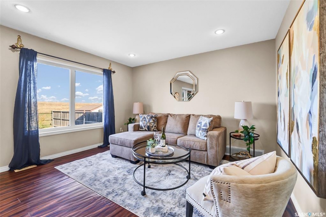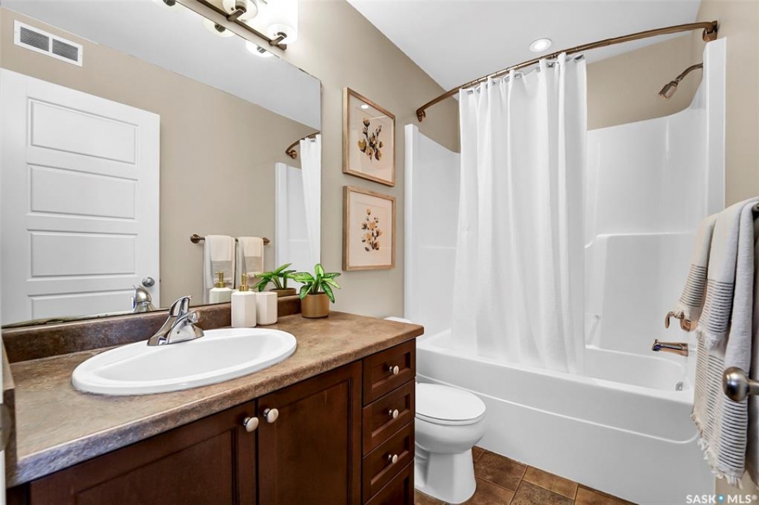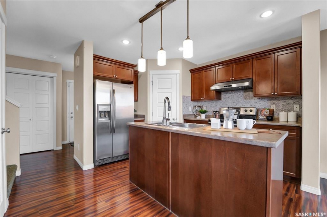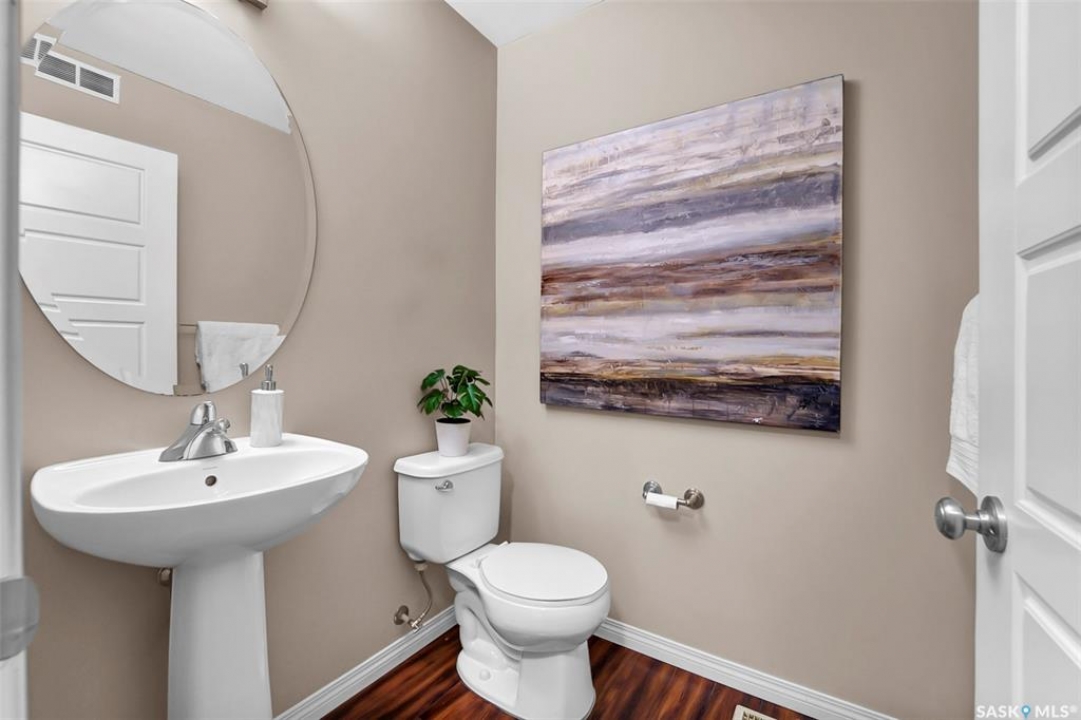 Welcome to 203 Henick Crescent This well-planned two-storey home with a double attached garage combines style, comfort, and functionality. Ideally located in Hampton Village, it offers easy access in and out of the neighborhood and is just minutes from shopping, dining, and everyday amenities. Step inside to a spacious foyer that opens into a bright, open-concept main floor — perfect for entertaining or relaxing with family. Laminate flooring flows throughout, complementing the modern kitchen with ample cabinetry, modern backsplash, stainless steel appliances, and a pantry. The dining area features patio doors that lead to a large deck overlooking the fully fenced backyard — ideal for summer gatherings. Upstairs, the primary bedroom offers a peaceful retreat complete with a 4-piece en suite and walk-in closet. Two additional spacious bedrooms, a 4-piece family bathroom, and a convenient second-floor laundry area complete the upper level. The fully developed basement adds even more living space with a cozy family room, an additional bedroom, and a 4-piece bathroom. Additional highlights include central air conditioning, HEATED Garage and everything you need to simply move in and enjoy!