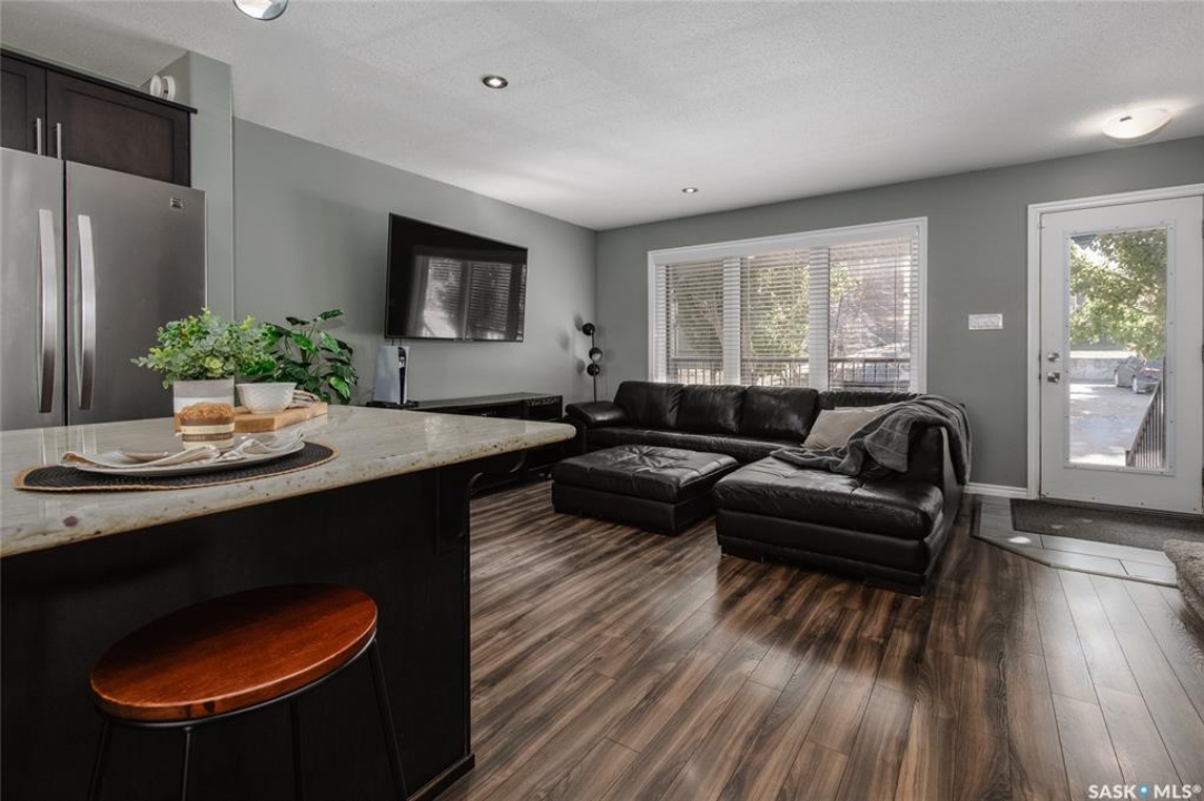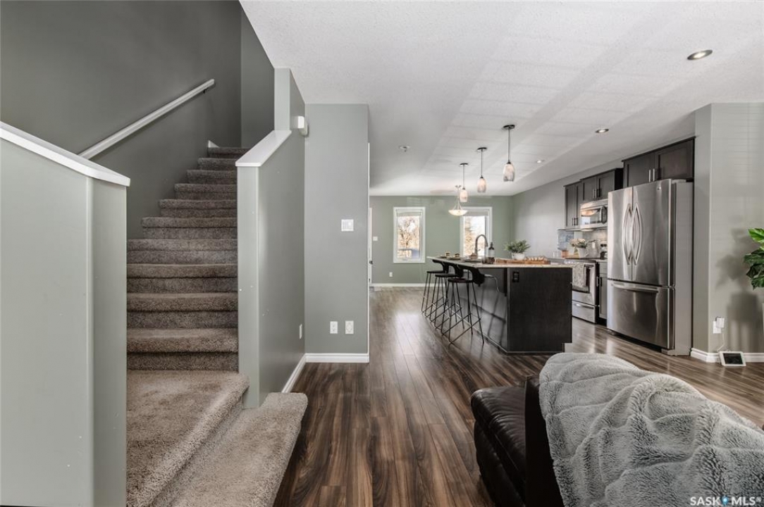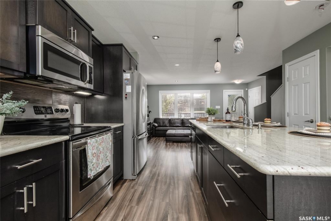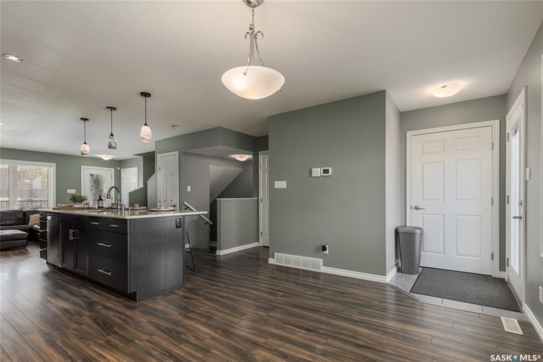 This isn't just a house, it's the total package: Open-concept main floor, stunning kitchen with granite countertops, and dark cabinets, with an oversized island, and stainless steel appliances. Bright living room up front, dining area at the back, plus a convenient 2-piece bathroom on the main level, perfect for family dinners or hanging out with friends. Upstairs: three bedrooms and a full bath, including a spacious primary with walk-in closet. Downstairs: cozy family/theatre room, guest bedroom, and another full bathroom. Plus a cozy spot for family movie nights. Outside, enjoy a fully fenced yard, extra parking, and even a spot to pull in a camper. Location is prime. Just steps from Cornerstone Christian School, minutes from downtown, and quick highway access makes commuting or trips to 5 Wing Moose Jaw a breeze. Over 2,000 sq. ft. of finished space, thoughtfully laid out, move-in ready, and ready to make your own. Don't just buy a house--buy a lifestyle!
