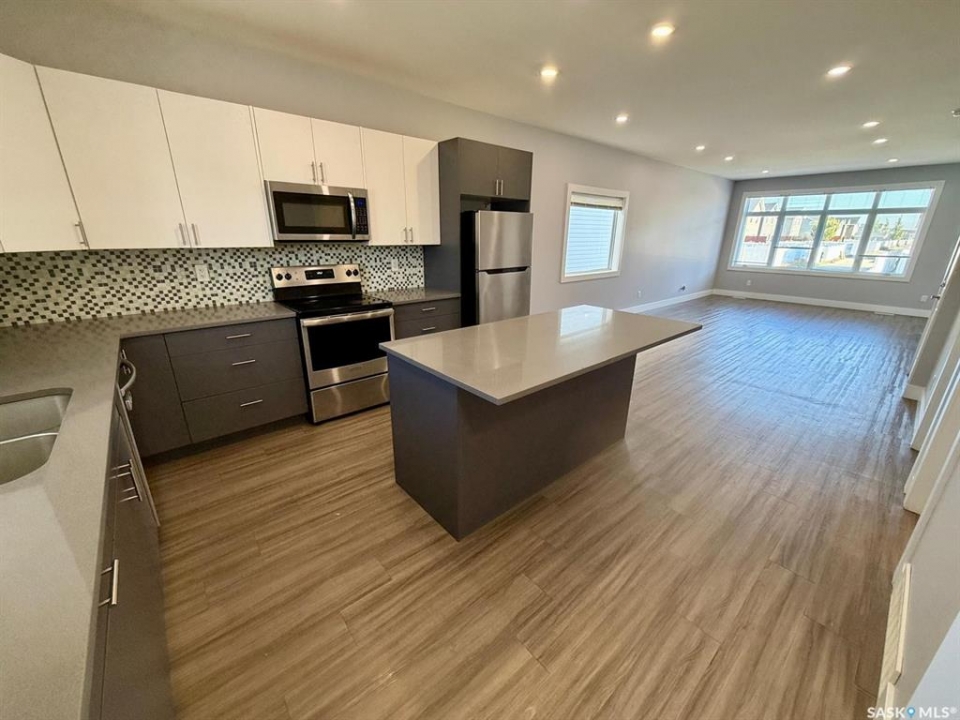 Welcome to 3218 Green Brook Road in The Towns, a beautifully finished 2-storey home with a fully developed regulation basement suite offering excellent income potential. Built in 2021, this 1,640 sq. ft. home is thoughtfully designed with modern finishes, functional space, and family-friendly appeal. The main floor features an open-concept layout with luxury vinyl plank flooring, a spacious living room with large front windows, and a bright dining area that flows seamlessly to the backyard. The kitchen is equipped with quartz countertops, stainless steel appliances, tile backsplash, and a generous island with seating—perfect for everyday living and entertaining. A convenient 2-pc bathroom completes this level. Upstairs, the primary suite includes a walk-in closet and 4-pc ensuite. Two additional bedrooms, a full bath, and a laundry room provide comfort and practicality for family life. The basement is a self-contained regulation suite with a separate entrance, making it ideal as a mortgage helper or extended family space. It features two bedrooms, a full kitchen with stainless steel appliances, a living room, and a 4-pc bath, all finished to the same high standard as the main home. Located in a growing east Regina community, close to schools, parks, and shopping, this home combines modern family living with the benefit of income-generating potential.