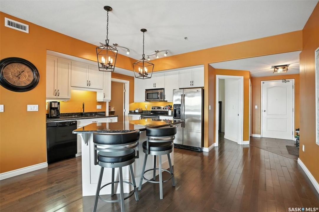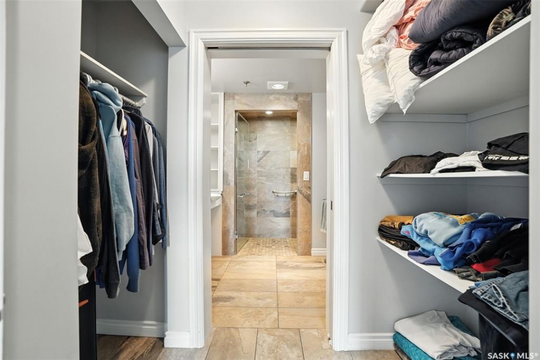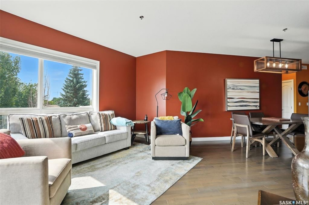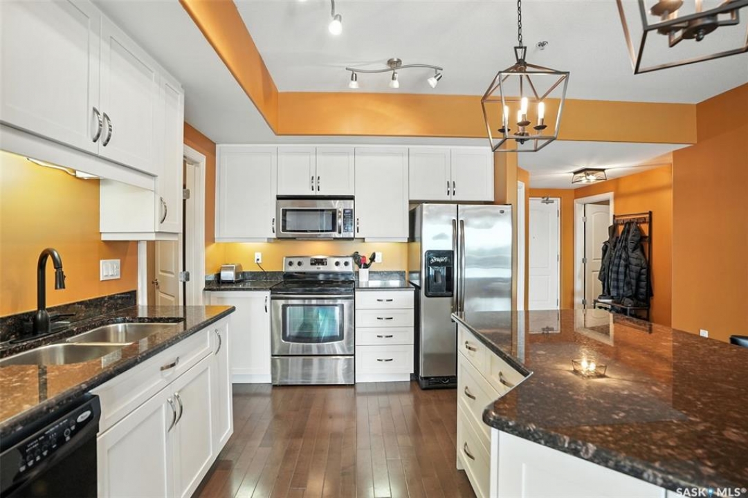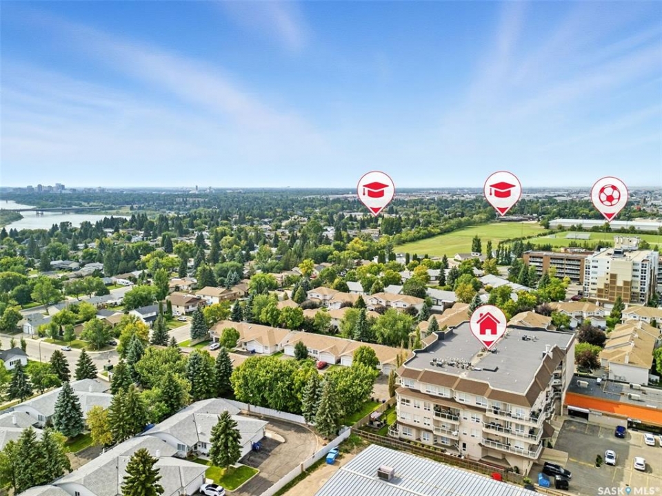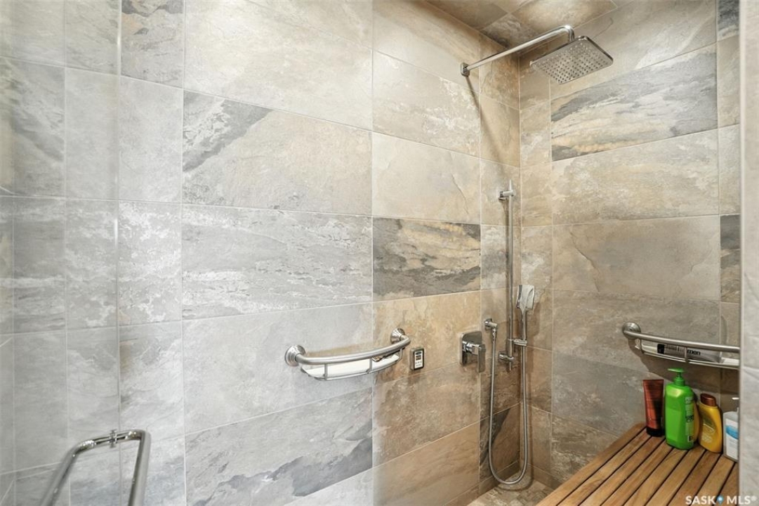 Welcome to this truly one-of-a-kind condo in Lawson Heights, thoughtfully modified with wheelchair accessibility in mind without compromising on comfort or style. Offering 1,428 square feet of open concept living, this spacious third floor condo features two bedrooms plus a den, two balconies, and an abundance of natural light from its desirable south facing exposure. At the center of this home is a beautifully designed, accessible ensuite that combines luxury with functionality. A roll in steam shower with a built-in bench, roll under sink, and generous maneuvering space by the toilet create a space that's both functional and comfortable for daily living. Continuous tile flows seamlessly from the ensuite into the primary bedroom, where open shelving in the closet ensures everything is within reach. Everyday tasks are made simple with an accessible laundry area and a spacious pantry designed to be easily accessed from a wheelchair. Both balconies have been modified for accessibility, with smooth, lip free thresholds that make stepping or rolling outside easy. An elevator and underground parking stall located conveniently close to the elevator add even more practicality to daily living. Beyond the accessibility features, this condo shines with thoughtful design. The kitchen offers granite countertops, an island perfect for entertaining, and a large pantry. The open layout creates flow and connection between the living, dining, and kitchen spaces, ideal for hosting friends or relaxing in the sun filled comfort of home. A rare opportunity to own a spacious, modern condo built with true accessibility in mind. Don't miss your chance to experience comfort, convenience, and thoughtful design all in one place.