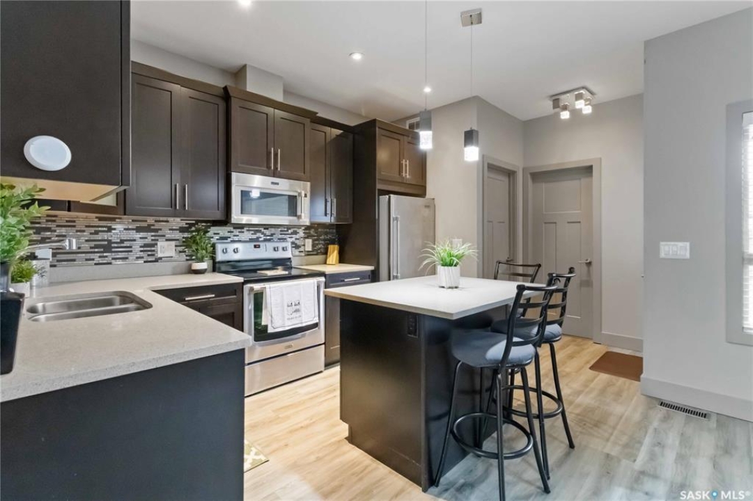 Stylish 3-Bedroom Townhome in Prime Evergreen Location. Just steps from Evergreen Square, this beautifully finished townhome features luxury vinyl plank and tile flooring, quartz countertops, maple cabinetry, and stainless steel appliances. The open-concept main floor includes a large dining area and oversized walk-in pantry. Upstairs offers a spacious primary bedroom with ensuite and walk-in closet. There are two more good sized bedrooms, a full bath and convenient second-floor laundry. The unfinished basement is ready for your personal touch with two large windows. Enjoy a private fenced yard, covered deck, stone patio, single detached garage, and an extra parking stall. Bonus features include central A/C, natural gas BBQ hookup, and blinds throughout.
