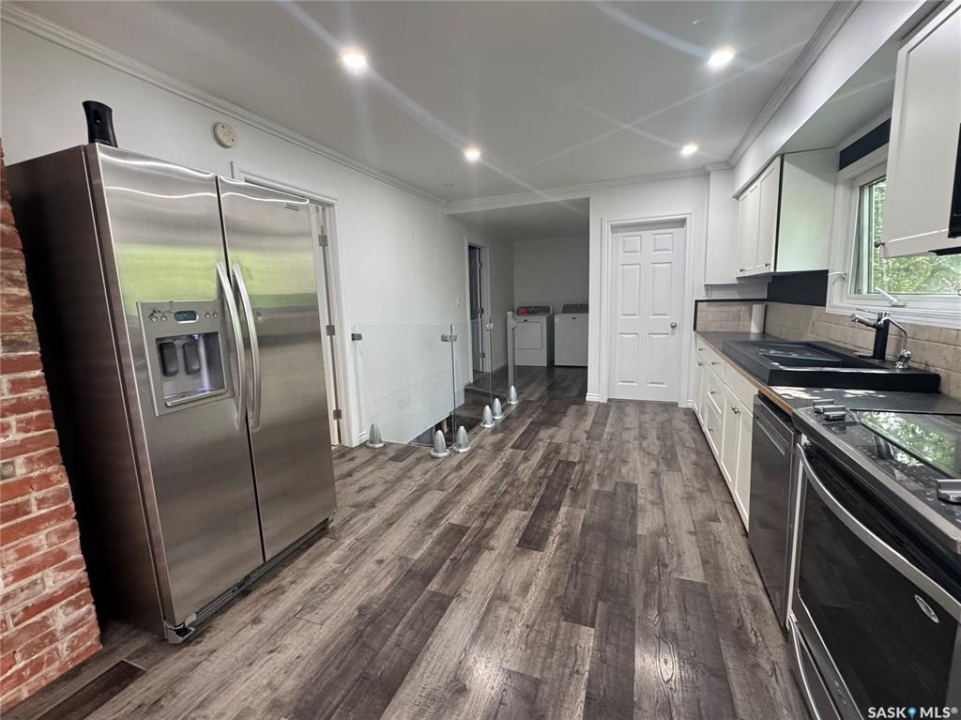 Welcome to your own piece of paradise in the town of Norquay SK! This professionally landscaped lot measures 75x234 and has many features of an acreage with town amenities. The original part of the home was built in 1940 with an addition and renovation done in 2009. Entering the home from the north door, you will be welcomed to a large porch/dining room area. A few steps over will take you to the updated kitchen featuring stainless steel fridge, stove, dishwasher, and microwave. Enjoy relaxation time in the living room area featuring skylights and wood fireplace. Down the hall you will find two excellent sized bedrooms. The main floor living space is completed with a 4-piece bathroom. The main floor has been extensively updated with new paint, flooring, triple pane windows, kitchen cabinets, electrical, lighting, and insulation. The partial basement includes a 4-piece bathroom and office area. The utility area includes gas furnace and water heater, 100 amp panel box, sump pump, and washer/dryer (downstairs included only). Moving outdoors, there is 592 square feet of deck space that wrap around the north and west parts of this home. Enjoy easy access to the deck from three different locations of the home. The front and back yard have been professionally landscaped with rock, concrete, gravel, and mature trees. As an added bonus, there are cherry, saskatoon, grape, and apple trees in the yard. Norquay is a full service town including K-12 Public School, Gas Station, Grocery Store, Restaurants, Hardware Store, and many small businesses. Norquay is less than an hour drive to Yorkton SK and is surrounded by beautiful lakes. This property is not for rent or rent to own.