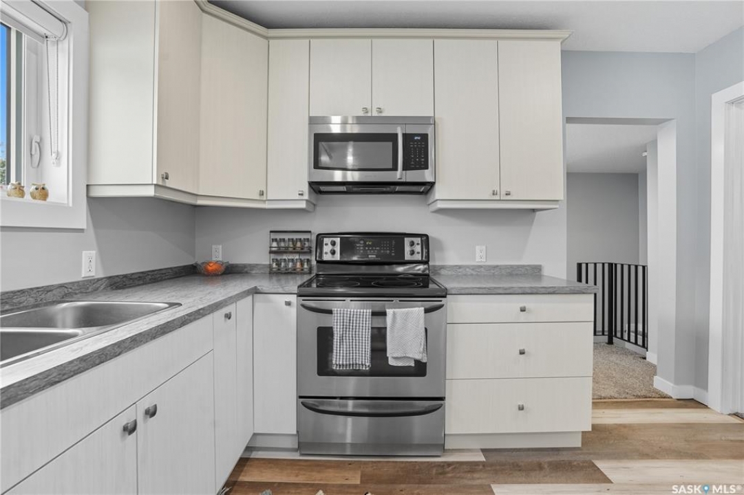 Looking for a nicely updated home in the south of Moose Jaw and close to the new school? This updated property offers a great location and plenty of updates throughout. Recent updates include a water heater (2025), air conditioner (2022), and PVC vinyl fencing (2022) enclosing a double wide lot, perfect for dog lovers. Inside, you will find updated kitchen cabinets and countertops, luxury vinyl plank flooring, nice carpet in the living room, bedrooms, family room, and den. The home also features PVC windows and doors, with a newer electrical panel and 100 amp service. Exterior updates include refreshed shingles and vinyl siding on the house, garage, and shed. The main floor offers a bright kitchen and dining area, a south-facing living room that fills with natural light, and two bedrooms. Downstairs, the developed basement includes a spacious family room, den, laundry area, and a 2-piece bath. Outside, enjoy the 20x24 garage and large 16x12 shed, great for storage or projects. If you have been looking for an updated home in South Hill near the new school, this is the one! Contact your REALTOR � to book a showing today!