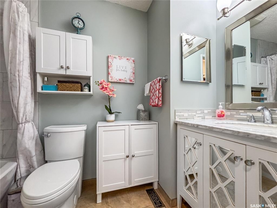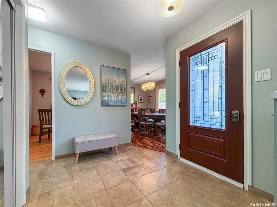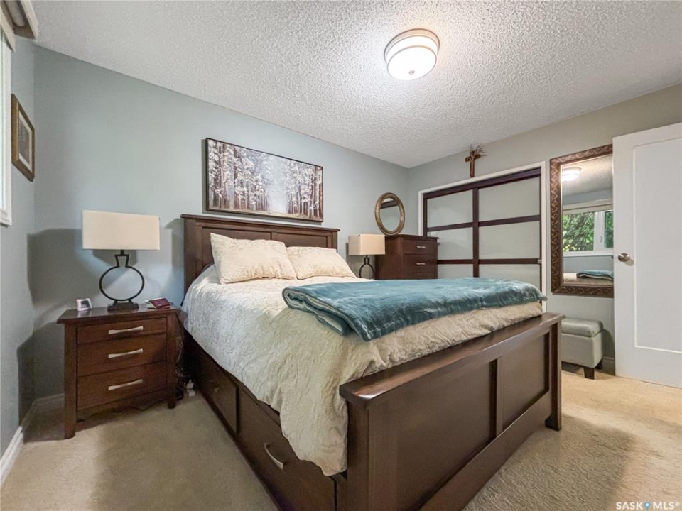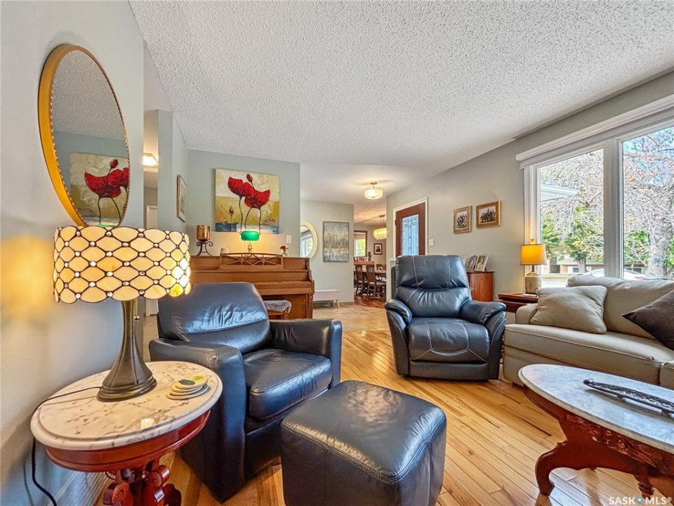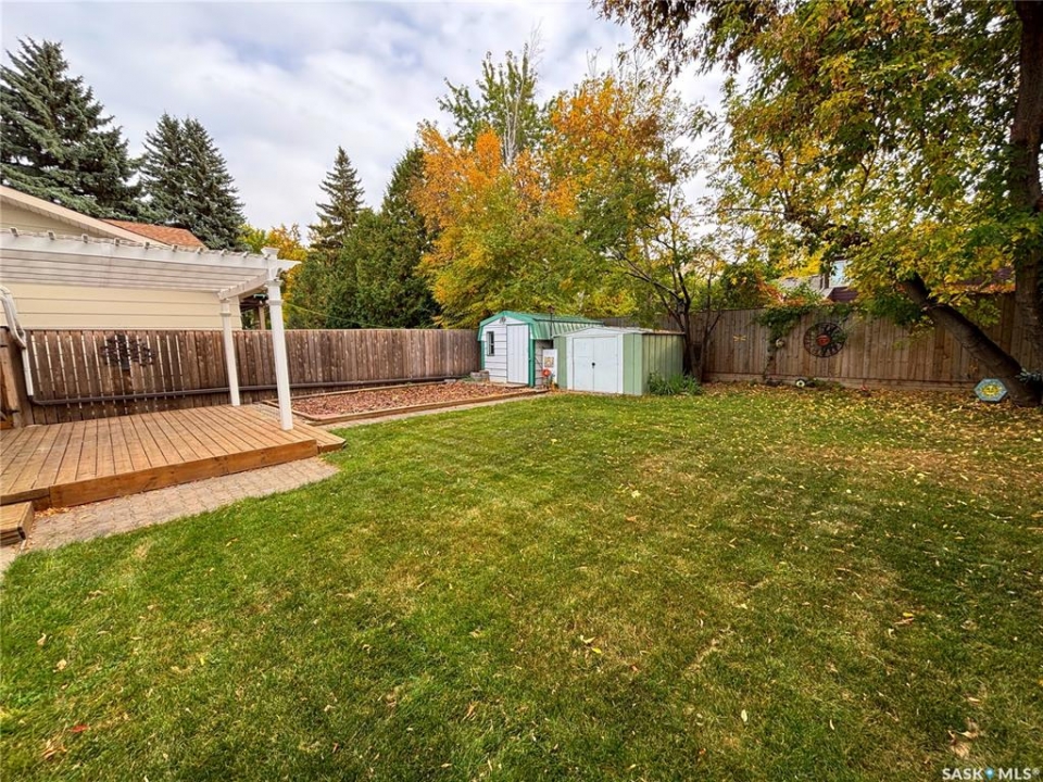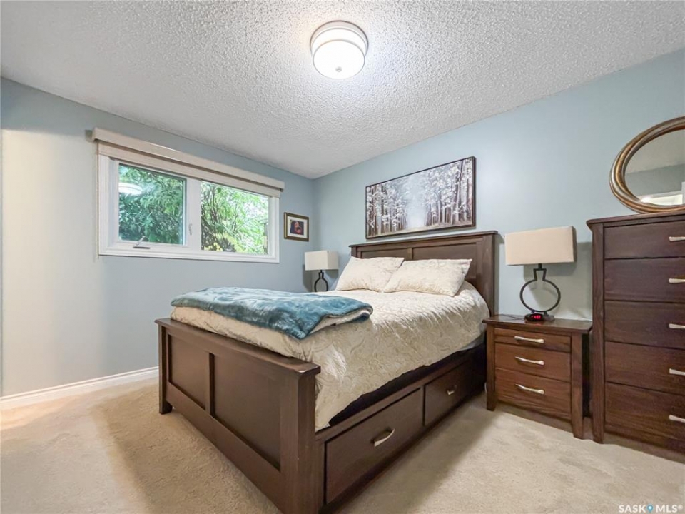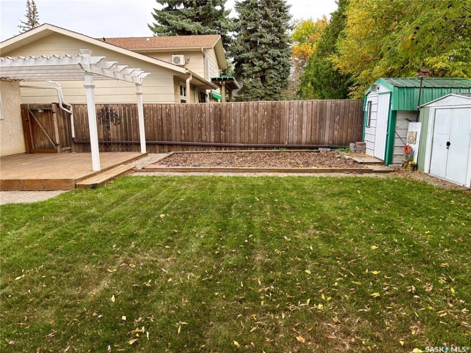 Immaculate 3 bedroom, 2 1/2 bath bungalow in a prime Lawson Heights location. This super clean home is just steps away from the Meewasin Trail and the South Saskatchewan River and features a formal dining room with acacia wood flooring, nice bright living room with hickory wood flooring and wall-mounted electric fireplace. Open & modern kitchen with eating area, microwave hood fan and an abundance of cupboard and counter space. The main floor bathroom has been renovated and there's a half bath off the master bedroom. The 2nd main floor bedroom features laminate flooring. Upgraded windows. Downstairs there's a spacious L-shaped family room and games room with bar area, the 3rd bedroom, a 3/4 bath, laundry, kitchen and storage. Central air and central vac. Beautiful back yard with mature trees, lots of grass area, storage sheds, and deck with pergola.