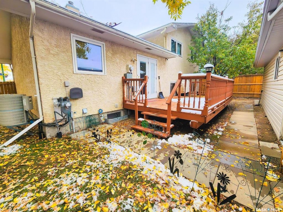 Excellent location on this large 1600 sqft 4 level split, directly across from École Centennial School and Hayworth Crescent Park, and just a short walk to St. Jerome School. Perfect for a growing family. The main floor features a bright living room and an eat-in kitchen with plenty of cabinetry, along with garden doors that open to a large back deck. Enjoy a private, fully fenced yard—ideal for kids, pets, or entertaining. Upstairs, you'll find three comfortable bedrooms and a four-piece bathroom upgraded with a Bath-fitter tub surround. The primary bedroom includes a walk-in closet and its own two-piece ensuite. The third level offers a generous family room, an additional three-piece bathroom, and great space for everyday living. The basement adds even more flexibility with a finished den, laundry area, and extra storage. Outside, the property includes a 24' x 26' double garage with RV parking beside it, plus two storage sheds. Recent updates include shingles on the house (3 years ago), several vinyl window upgrades, and a new pressure-treated backyard fence (within the last year).