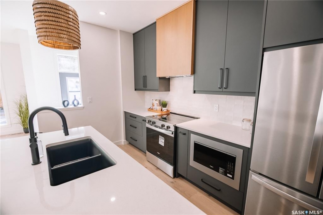 Welcome to 2804 14th Avenue, a brand-new, architecturally striking development by West Oak in the heart of Regina's Cathedral neighbourhood. This captivating townhouse condo brings modern sophistication to one of the city's most sought-after and walkable communities — just steps from Les Sherman Park, Safeway, 13th Avenue boutiques and cafés, top-rated schools, and downtown Regina. This 2 �-story townhouse-style condo showcases over 2,200 sq. ft. of contemporary living space, thoughtfully designed to maximize light, comfort, and functionality. The main level welcomes you with an inviting open-concept layout featuring floor-to-ceiling windows, 9-foot ceilings, and sleek hardwood flooring that create a bright, airy atmosphere. The modern kitchen serves as the centerpiece of the home, complete with quartz countertops, high-end cabinetry, and premium finishes that perfectly complement the property's refined aesthetic. Upstairs, the second level offers spacious bedrooms and beautifully appointed bathrooms, including a tiled ensuite shower that provides a spa-like retreat. Continuing upward, you'll find the stunning rooftop patio — a private outdoor oasis perfect for morning coffee, evening cocktails, or entertaining guests under the Cathedral skyline. Every unit includes a single detached garage and benefits from being part of a comprehensive redevelopment initiative designed for longevity, energy efficiency, and timeless style. These homes represent the perfect fusion of modern living and vibrant community, delivering a new level of luxury and design to Regina's historic Cathedral area. Contact your REALTOR � today to experience the future of Cathedral living with West Oak Developments.