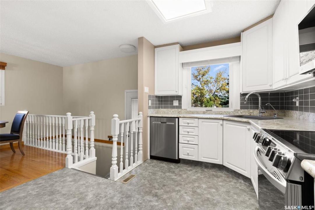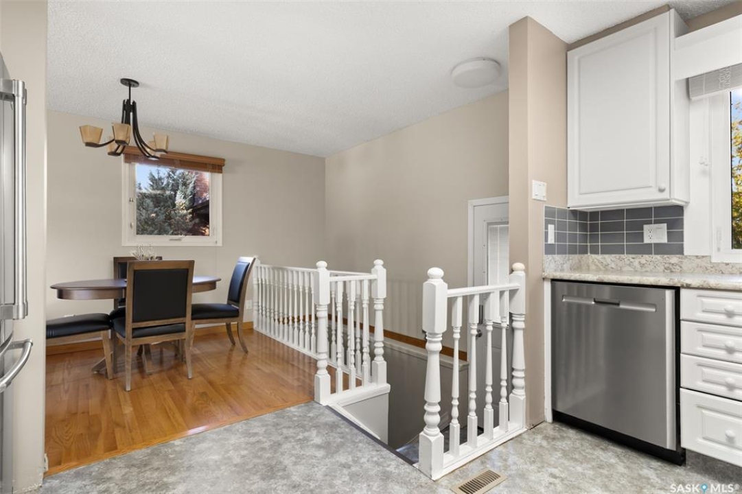 Nestled on a quiet bay in a great area, this very well maintained 3 bedroom, 2 bathroom home offers comfortable living with plenty of updates throughout. The spacious living room features a cozy natural gas fireplace and beautiful hardwood floors that flow into the dining room. The recently renovated kitchen includes new appliances, and updated cabinets and counters. Both the main floor and ensuite bathrooms have also been updated. The finished basement adds extra living space and includes an HE furnace, AC, and a reverse osmosis system for added convenience. Other improvements include newer shingles, exterior doors and windows. Enjoy summer days in the massive PVC-fenced yard with patio and garden shed. Schedule your private showing now, this one isn't going to last.