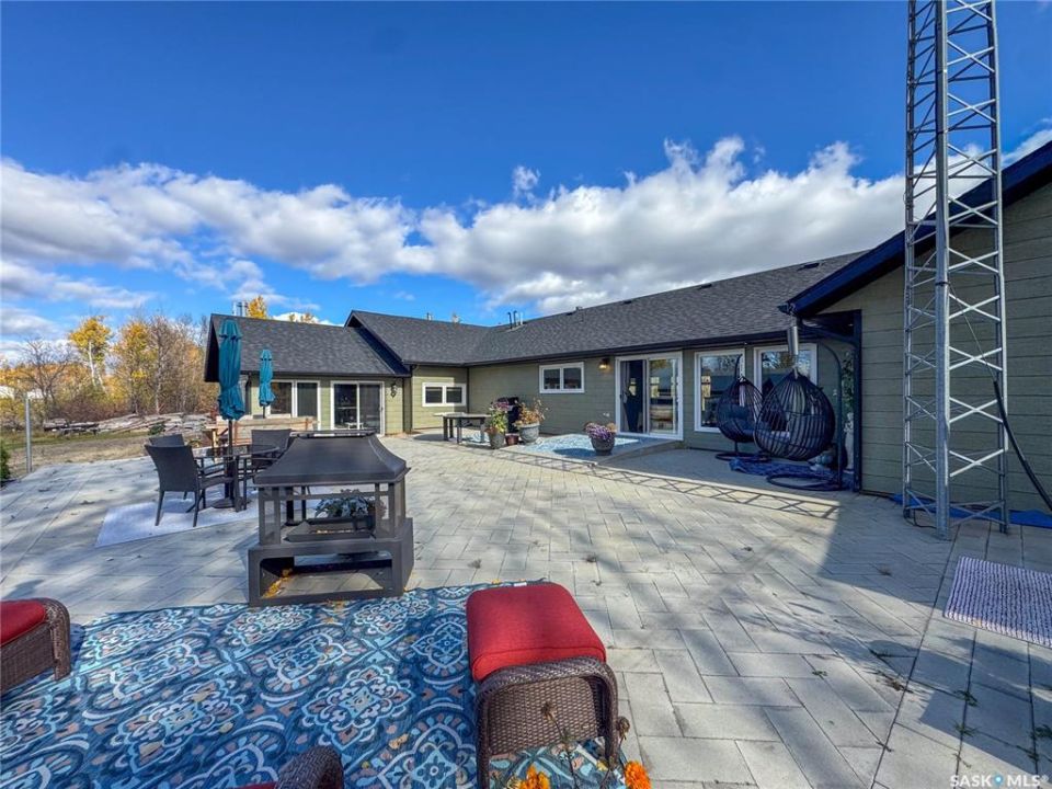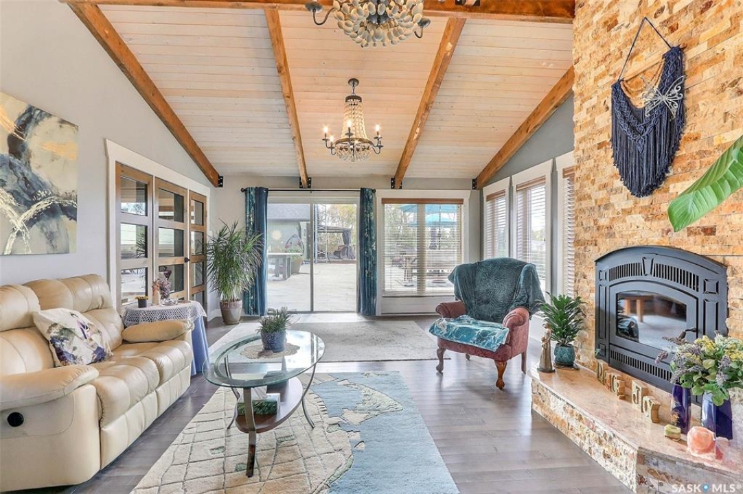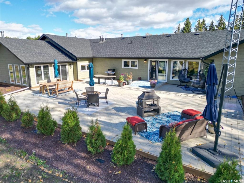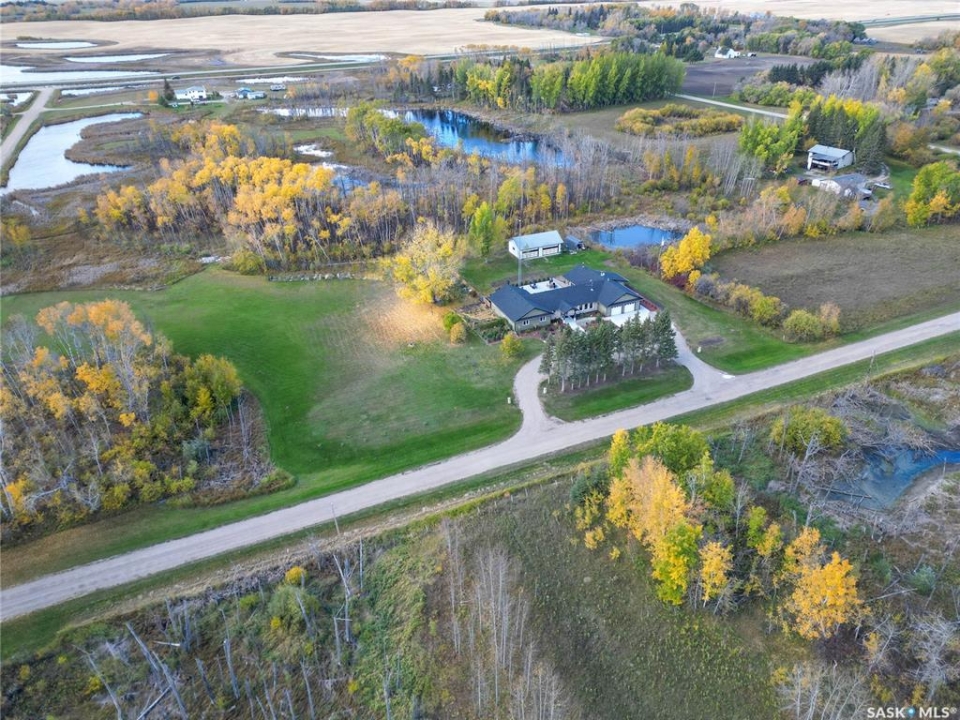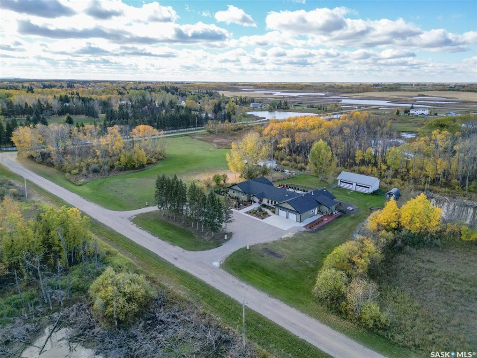 Once in a lifetime 10 acre estate in prestigious Madden Place neighborhood of Green Acres – fully updated & turn key! This extraordinary 3,466 sq/ft ranch-style bungalow offers unmatched luxury, privacy, and convenience just minutes from Prince Albert. Set on 10 beautifully landscaped acres with an additional 75 trees planted, this sprawling estate is truly one of a kind. Impeccably maintained and move-in ready, the home features 4 bedrooms plus a den, 4 bathrooms, and over 3,400 sq/ft of refined living space. The stunning great room showcases vaulted ceilings with exposed wood beams, wood burning fireplace, hardwood floors, and expansive windows that flood the space with natural light. The open-concept kitchen boasts two-tone cabinetry, granite countertops, a massive island, stainless steel appliances, and a butler's pantry. A second family room with cozy N/G fireplace and wet bar leads to an incredible sunroom with vaulted wood-beamed ceilings, wood burning fireplace, and wall-to-wall windows overlooking the grounds. The spacious primary suite offers a N/G fireplace, deck access with a gazebo, and luxurious 5-piece ensuite with full Travertine slabs in the shower and Travertine dual sinks. The home also includes a large laundry room with abundant storage and an inviting foyer with custom barn doors. Outdoor living is unmatched — enjoy an expansive patio done with paving stones, meticulous landscaping, fenced areas, and unmatched curb appeal. The property includes both an attached heated 26' x 28' double garage and a detached garage with two double doors and concrete floors. Additional highlights: city water, two natural gas fireplaces, two air conditioning units, newer vinyl windows, new 200-amp panel, central vac, electric hot water heater, weeping tile, fire-kill granite front step, and four fireplaces in total. A rare opportunity to own a truly perfection level estate — offering luxurious one-level living in one of Prince Albert's most sought-after locations.