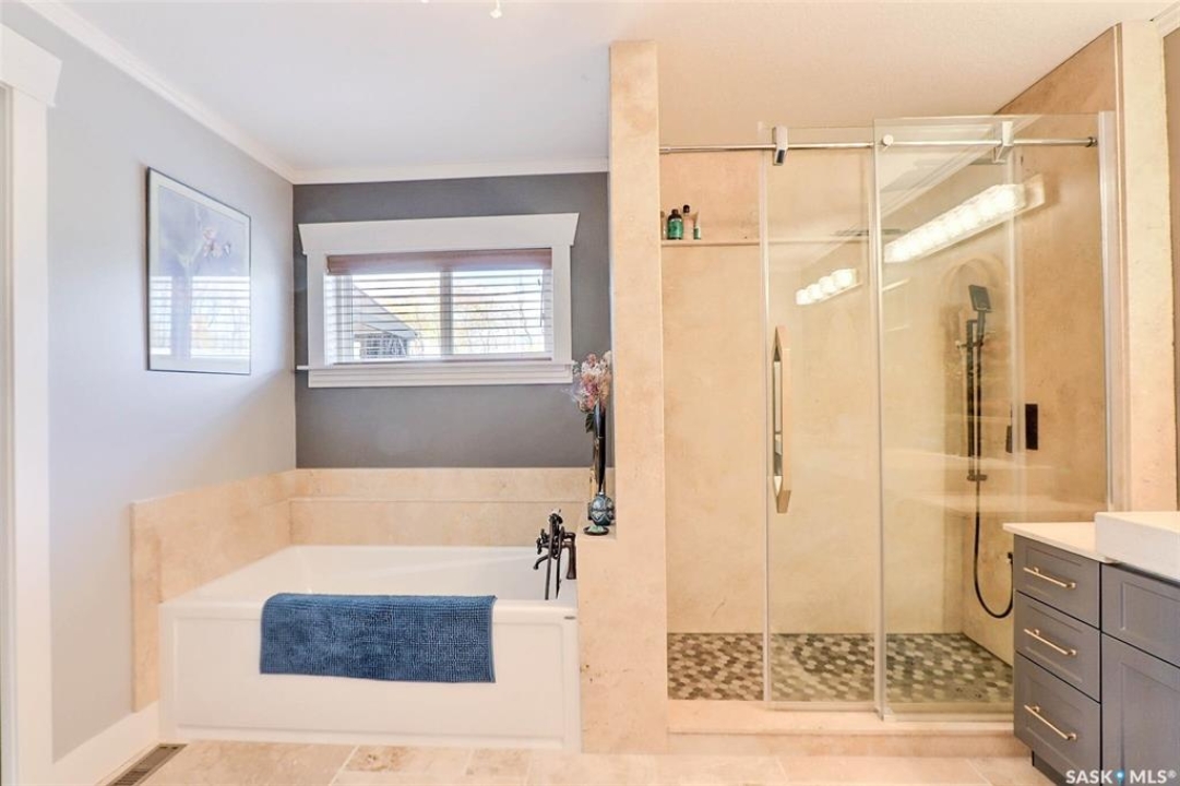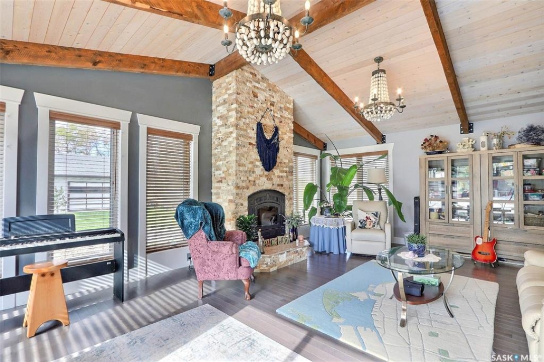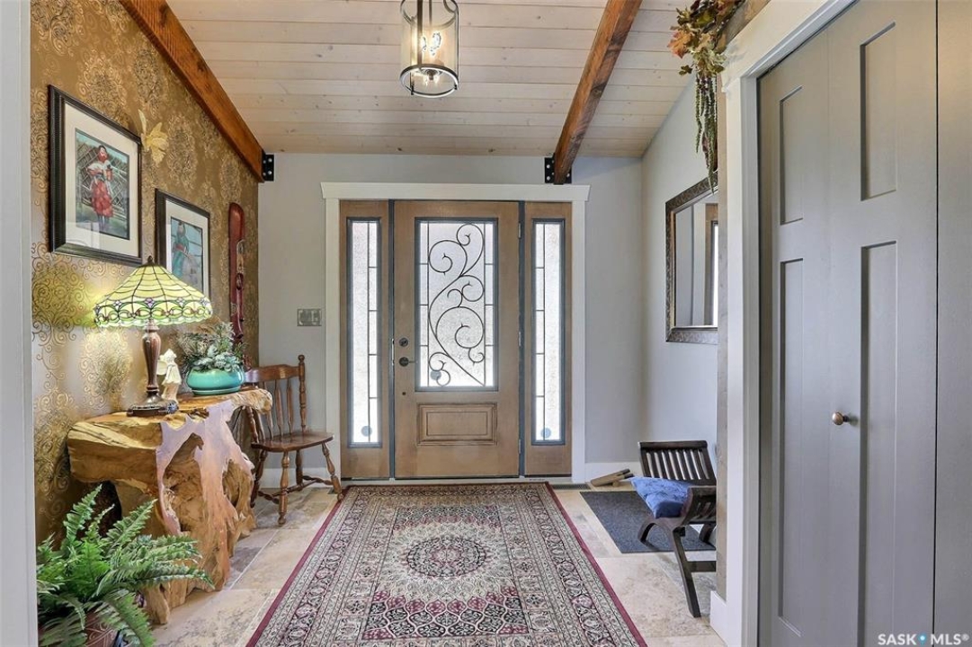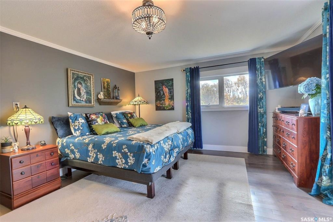 Once in a lifetime 10 acre estate in prestigious Madden Place neighborhood of Green Acres – fully updated & turn key! This extraordinary 3,466 sq/ft ranch-style bungalow offers unmatched luxury, privacy, and convenience just minutes from Prince Albert. Set on 10 beautifully landscaped acres with an additional 75 trees planted, this sprawling estate is truly one of a kind. Impeccably maintained and move-in ready, the home features 4 bedrooms plus a den, 4 bathrooms, and over 3,400 sq/ft of refined living space. The stunning great room showcases vaulted ceilings with exposed wood beams, wood burning fireplace, hardwood floors, and expansive windows that flood the space with natural light. The open-concept kitchen boasts two-tone cabinetry, granite countertops, a massive island, stainless steel appliances, and a butler's pantry. A second family room with cozy N/G fireplace and wet bar leads to an incredible sunroom with vaulted wood-beamed ceilings, wood burning fireplace, and wall-to-wall windows overlooking the grounds. The spacious primary suite offers a N/G fireplace, deck access with a gazebo, and luxurious 5-piece ensuite with full Travertine slabs in the shower and Travertine dual sinks. The home also includes a large laundry room with abundant storage and an inviting foyer with custom barn doors. Outdoor living is unmatched — enjoy an expansive patio done with paving stones, meticulous landscaping, fenced areas, and unmatched curb appeal. The property includes both an attached heated 26' x 28' double garage and a detached garage with two double doors and concrete floors. Additional highlights: city water, two natural gas fireplaces, two air conditioning units, newer vinyl windows, new 200-amp panel, central vac, electric hot water heater, weeping tile, fire-kill granite front step, and four fireplaces in total. A rare opportunity to own a truly perfection level estate — offering luxurious one-level living in one of Prince Albert's most sought-after locations.