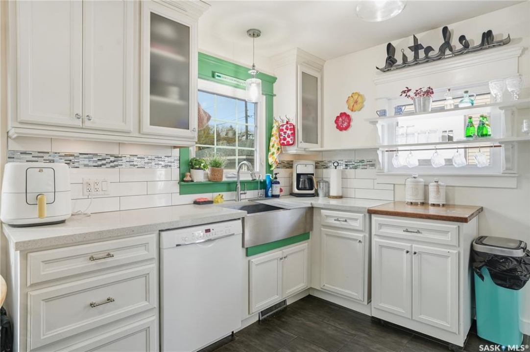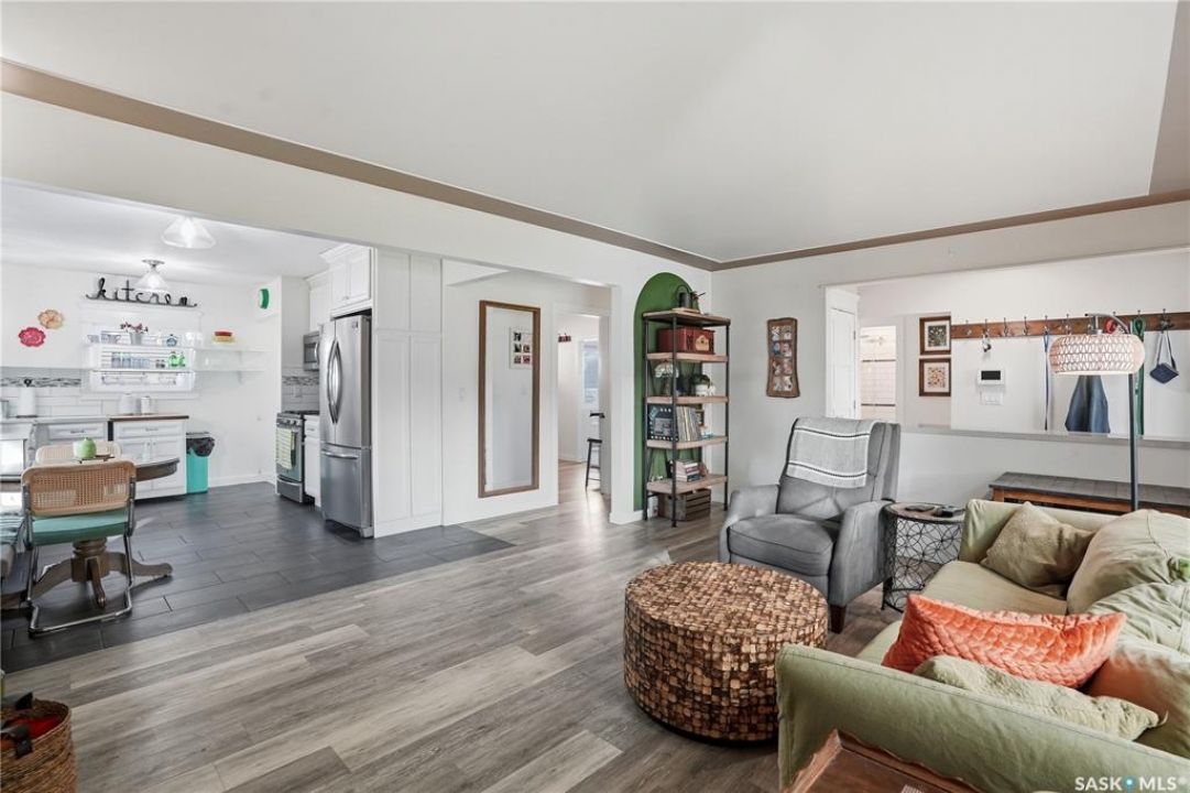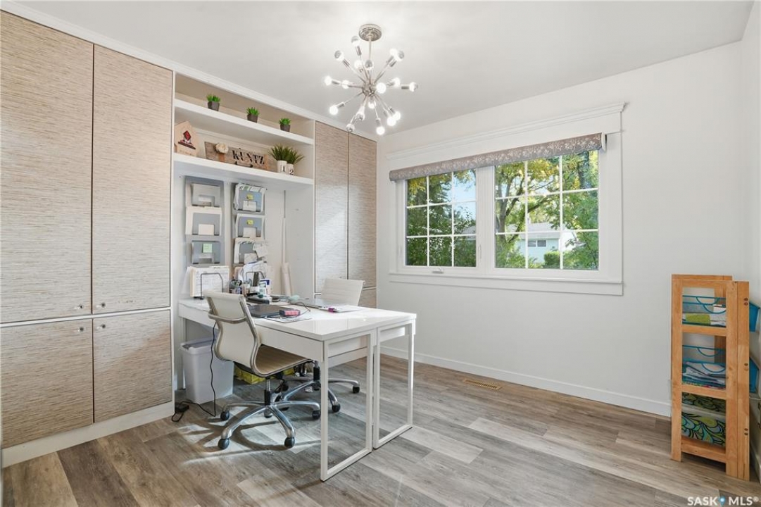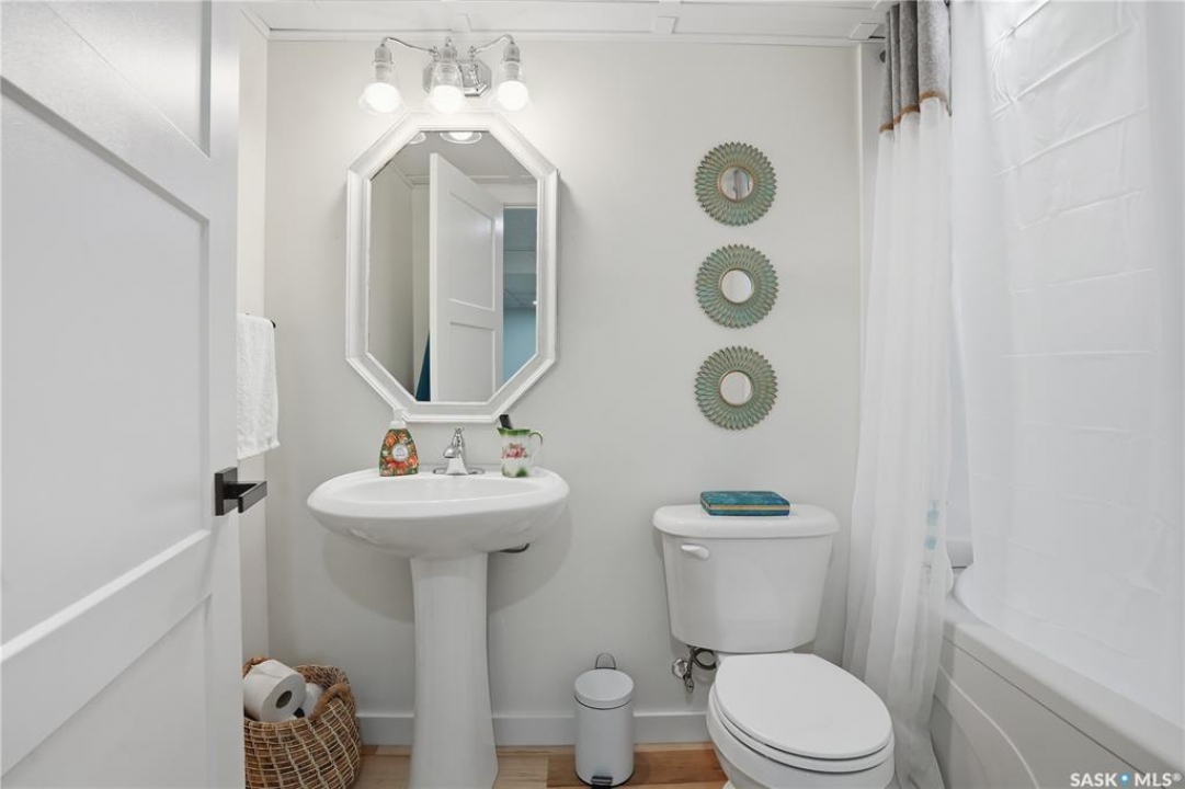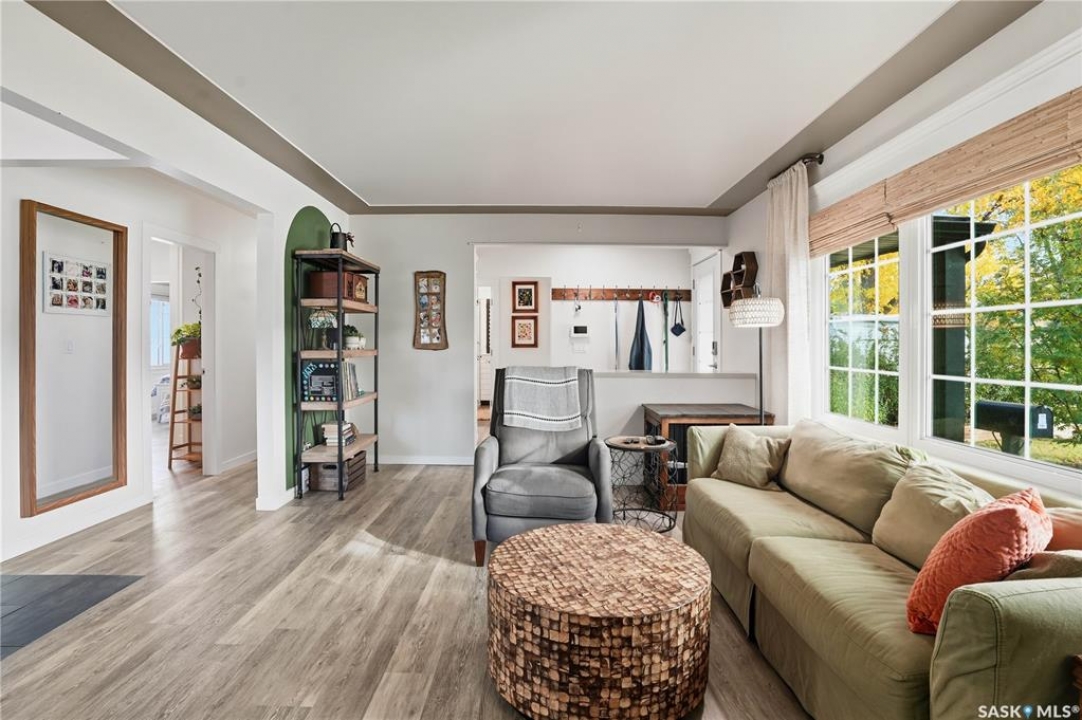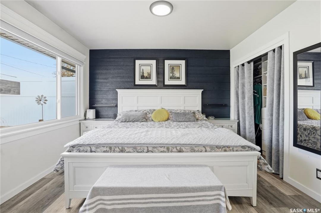 Welcome 3318 4th Avenue N! This beautifully renovated 1,054 sq ft bungalow blends modern updates with timeless charm. Offering four bedrooms and two bathrooms, the home's thoughtful layout provides flexibility — one bedroom is attached to the primary suite, ideal for a nursery or dressing room, while another has been converted into a home office. The main bathroom features a heated tile floor and a charming clawfoot tub for a touch of luxury. The farmhouse-style kitchen brings warmth and character to the heart of the home. The lower level offers incredible versatility — it can serve as a non-regulation suite or as a fantastic entertainment space complete with a wet bar and room for a full-size fridge, electric fireplace and tons of storage. Outside, you'll find a xeriscaped backyard designed for easy maintenance and year-round enjoyment. The shop-quality garage is a dream — 32x32 in size with an oversized door, steel I-beam, radiant heat, air conditioning, and a built-in radial arm saw (to stay). Recent updates/upgrades include newer siding and windows (2022), newer shingles, new LVP flooring, upgraded lighting, and motorized blinds. Seller states the north wall has been blue-skinned with weeping tile installed and run out to the street. Situated on a mature, quiet street in Coronation Park, this home is move-in ready and packed with upgrades — perfect for anyone seeking comfort, functionality, and craftsmanship. This home absolutely must be seen to be appreciated!