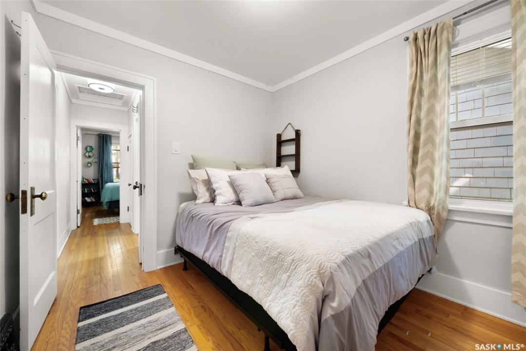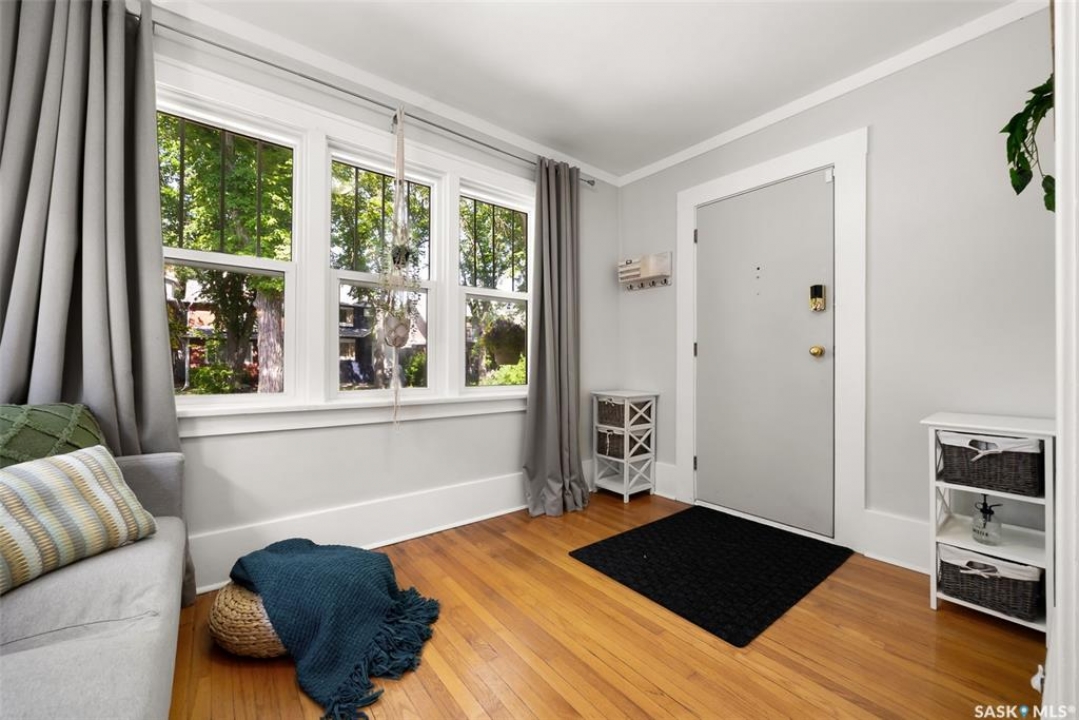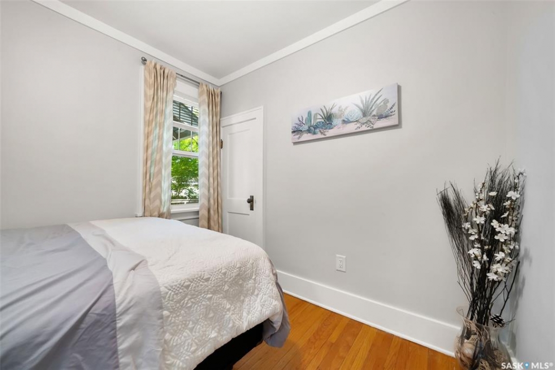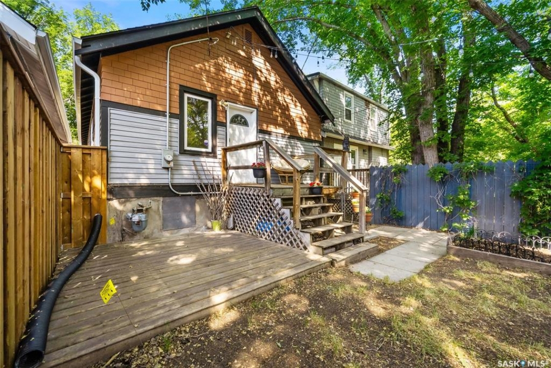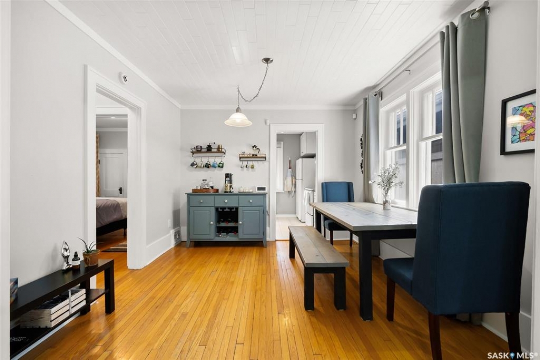 Welcome to 2061 Elphinstone Street—perfectly situated in the heart of Regina's sought-after Cathedral neighborhood. Just steps from 13th Avenue's trendy coffee shops, restaurants, and boutiques, and within walking distance to Mosaic Stadium, Brandt Centre, and Evraz Place, this home offers unbeatable access to local events and amenities. Inside, this inviting bungalow features a bright, sunlit sitting room, spacious living and dining areas, and original hardwood flooring that adds timeless character. Classic details like tall baseboards, crown molding, and plaster accents enhance the cozy atmosphere. The white kitchen offers a full appliance package and a unique foldaway pantry hatch—blending charm with functionality. The main floor includes two generously sized bedrooms and a beautifully updated 4-piece bathroom complete with vinyl plank flooring, a clawfoot tub, and modern vanity. Additional features include central A/C, a security system, and basement laundry. Enjoy the fully fenced and landscaped backyard with garden beds, patio space, single detached garage, and extra parking via the rear alley. Seller states upgrades include a full electrical replacement and new panel (2021), and half the windows replaced in 2023. Live the Cathedral lifestyle—walk to the farmers market, catch a concert, or relax with a book from a local Little Free Library. Don't miss your chance to own this charming home in one of Regina's most vibrant communities. Book your showing today!