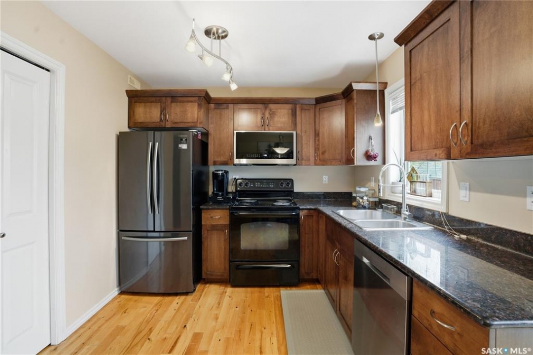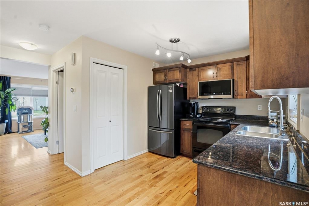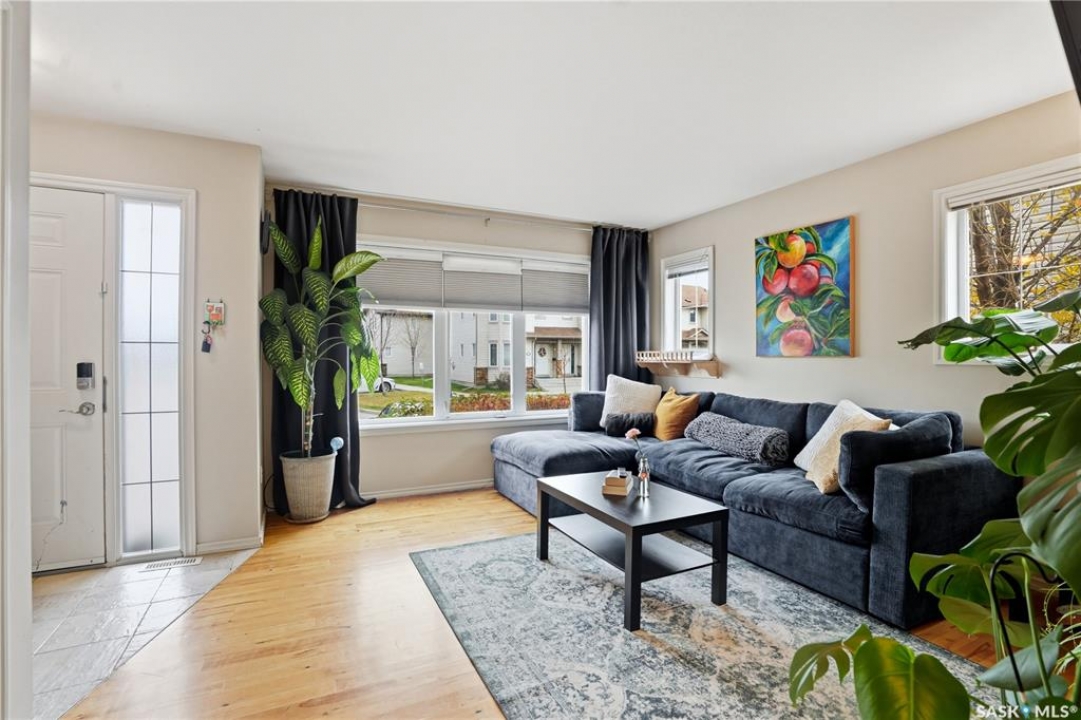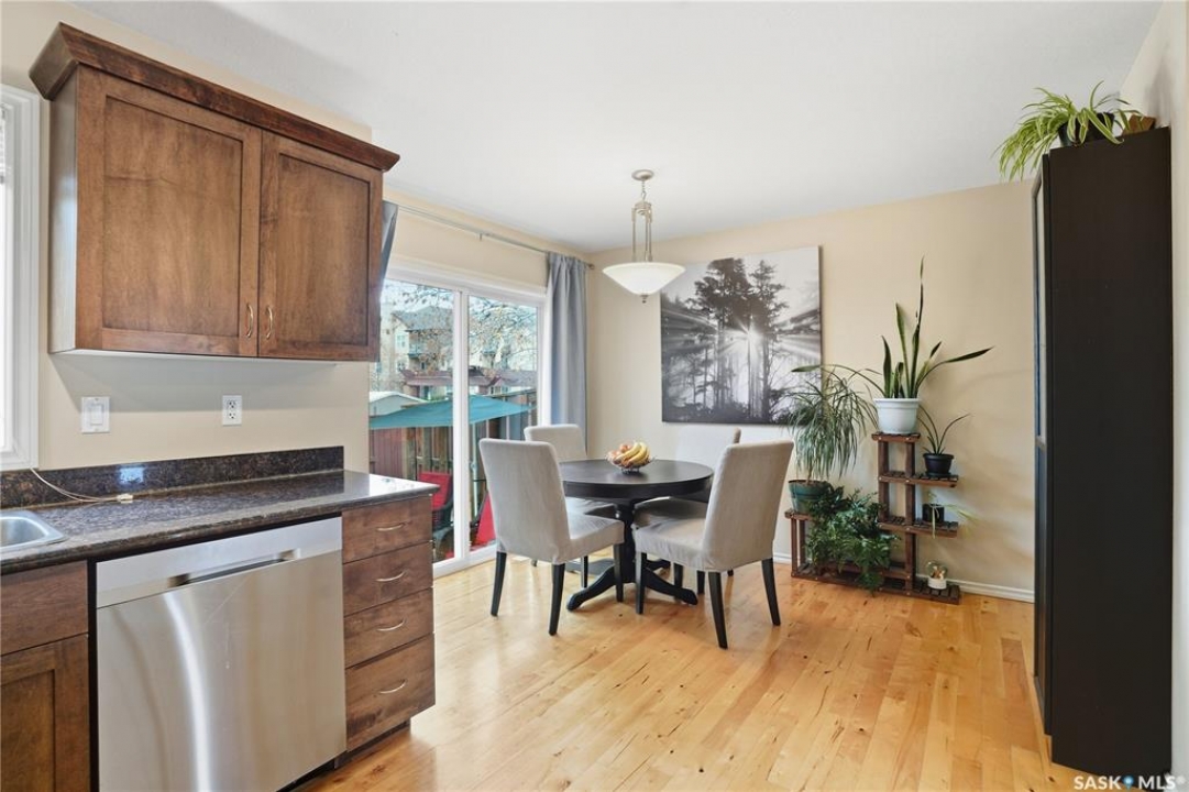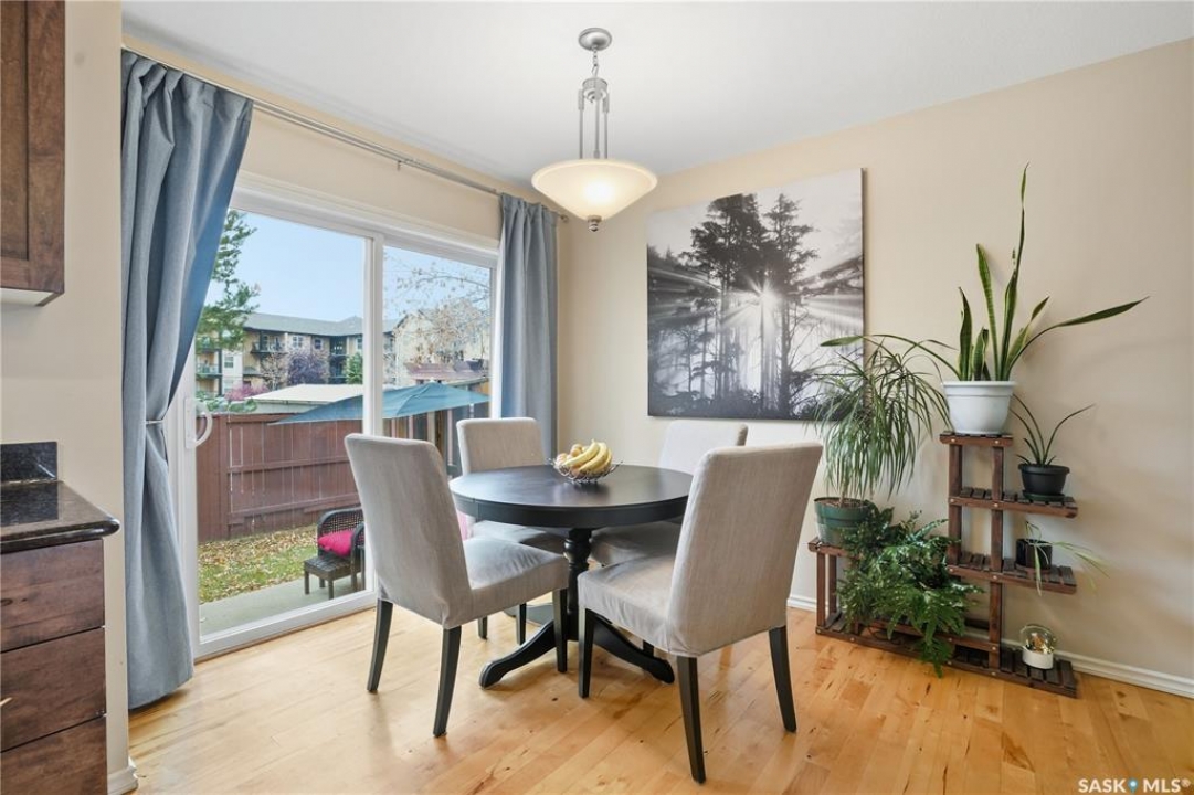 Located in the sought-after Pine Creek development in the Lakewood Suburban Centre, this immaculate 1,118 sq. ft. 2-storey townhouse offers comfort, convenience, and style. This desirable END UNIT has been beautifully decorated and features hardwood floors throughout the main with extra windows allowing for tons of natural light. With two dedicated parking stalls and visitor parking right out front, convenience is just steps from your front door. Upon entering, you're welcomed by abundant natural light and warm hardwood flooring that flows throughout the main living area. The spacious kitchen is equipped with granite countertops, maple cabinetry, a pantry, and appliances including fridge, stove, dishwasher, and over-the-range microwave. The open layout seamlessly connects to the dining area, which leads out to your backyard patio—perfect for enjoying morning coffee or evening BBQs. A convenient 2-piece bathroom completes the main floor. Upstairs, you'll find a generously sized primary bedroom, plus two additional well-sized bedrooms and a 4-piece bathroom, ideal for families or guests. The basement is completely finished with a family room, featuring finished laundry and plenty of storage. Additional features include: Central Air Conditioning and water heater 2 years old, dryer is 2 months old, microwave is 3 months old. Fantastic location close to grocery stores, parks, walking paths, 1/2 block to the Hyde park restaurants, and more!