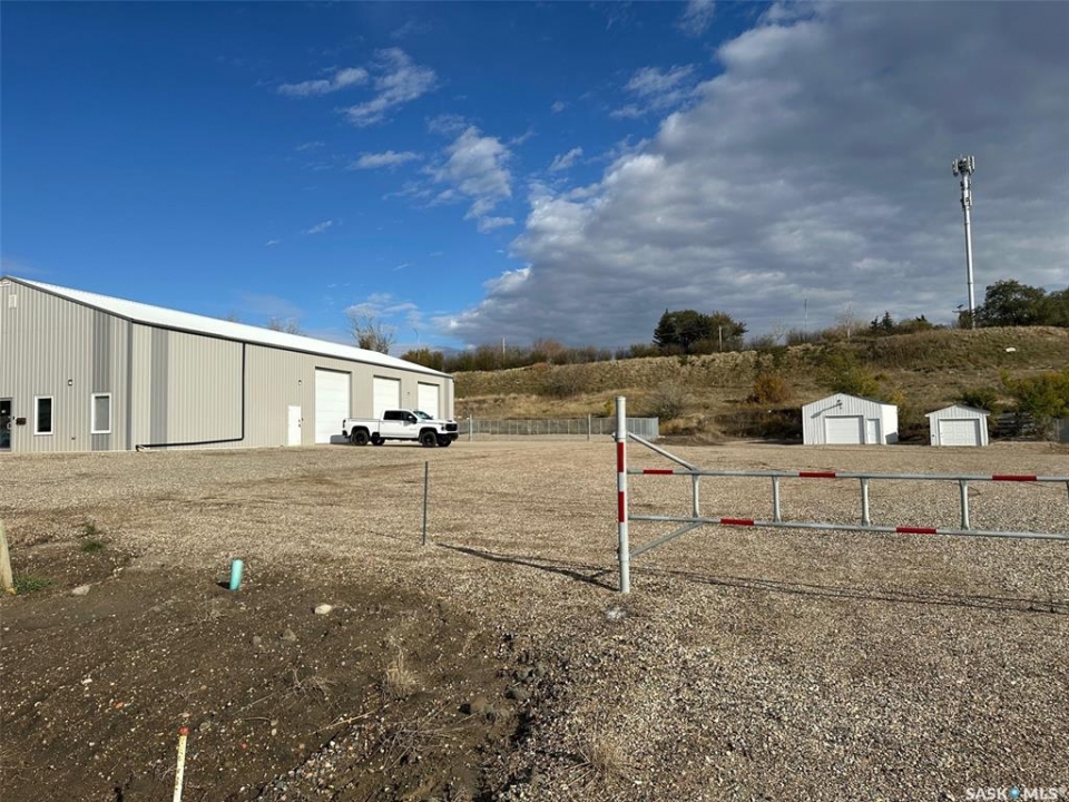 Exceptional opportunity to own or lease a well-maintained 4,200 sq. ft. commercial building situated on a 200' lot. This versatile property offers a blend of functional shop space, comfortable office areas, and cold storage facilities — ideal for a wide range of industrial, construction, or service-based businesses. 4,200 sq. ft. main building has plus mezzanine (Additional storage or workspace area overlooking the shop), enclosed offices suitable for administrative or management use, a boardroom, coffee room/kitchen as well as 2 washrooms; Large open-span shop space with high ceilings and 3 overhead doors for easy access. The yard space has a secured fenced compound as well as being heavily graveled and leveled in 2024. There are also 2 cold storage garages on the property