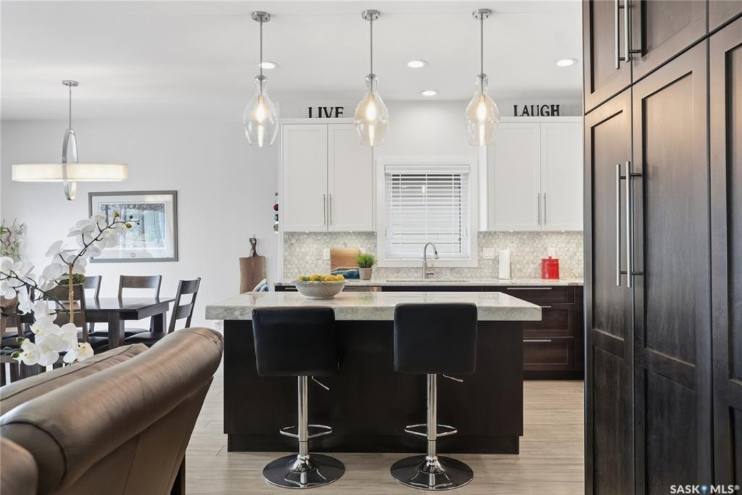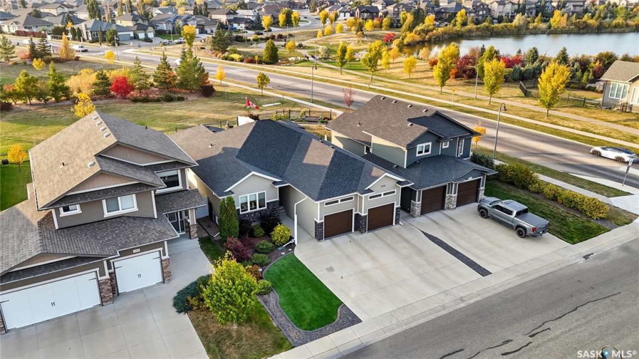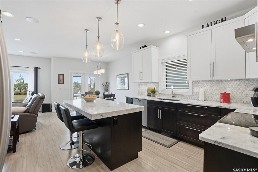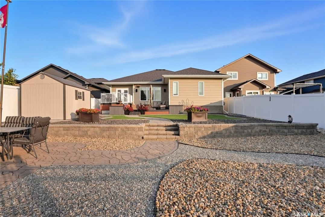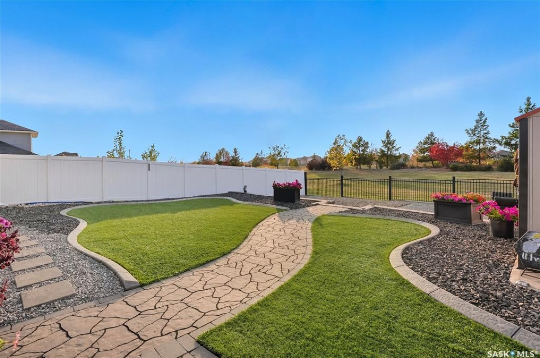 Wow! This home is truly a gem. This immaculate custom-built Fraser Homes bungalow (2014) offers 1730 ft. of fully developed living space, designed with functionality and luxury in mind. Featuring 6 bedrooms + a den, this home boasts high-end finishes, 9' ceilings, a sound system throughout, and multi-zone heating and cooling. The chef's kitchen includes a large island, custom maple cabinetry, stainless steel appliances, marble backsplash, and quartzite granite countertops. The primary suite features a spacious walk-in closet and ensuite with dual sinks and glass shower. All three bathrooms offer heated tile floors and Kohler fixtures. Enjoy maintenance-free landscaping with zero-scape turf, flagstone pathways, composite fencing, and a two-tier deck backing the park. Exterior upgrades include Trimlight LED event lighting (phone-controlled), polyaspartic-coated garage floors, and Hardie Board siding. With southwest exposure, three natural gas outlets, and a triple concrete drive, this home blends quality, comfort, and design in every detail.