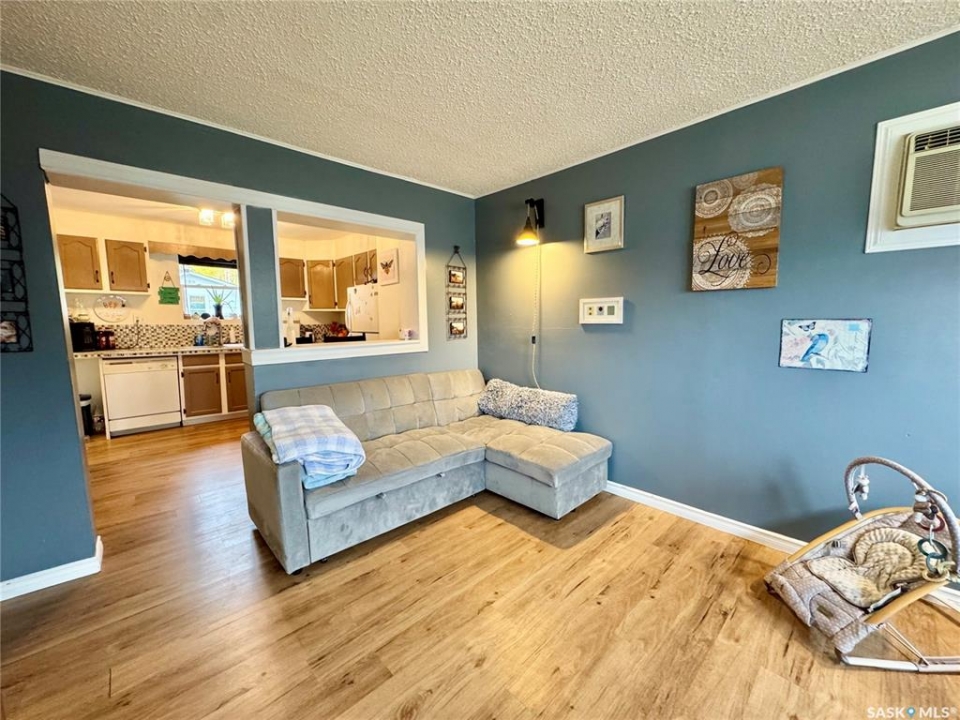 The perfect place to start! 100% move in ready this 2 bedroom, 1 bathroom entry level home is situated within a quiet East side neighbourhood and is close to all amenities. The main level of the residence provides a spacious front living room with southern exposure, an L shaped kitchen with combined dining and an overhauled 4pc bathroom. The exterior of the property comes fully fenced and supplies a ground level patio area, huge front gravel driveway with a single detached garage off of the rear lane.