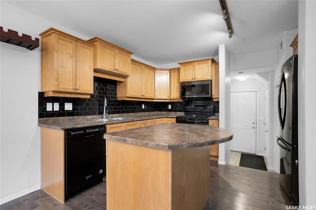 Welcome to modern comfort in the desirable neighborhood of Stonebridge. This beautifully maintained 2-bedroom, 3-bathroom two-story townhouse offers the perfect blend of style, convenience, and peace of mind with recent upgrades throughout. Step inside to a spacious foyer & hardwood floors that flow seamlessly through the living room, dining area, and spacious maple kitchen. The kitchen boasts a tiled backsplash and full appliance package including fridge, stove, dishwasher, and newer microwave. The bright dining area features garden doors opening to your private deck overlooking greenspace. A convenient 2-piece powder room and direct entry to the finished double attached garage complete this level. Retreat upstairs to a generous family room/bonus room featuring tons of natural light & a gas fireplace, perfect for relaxing evenings. The primary suite impresses with a walk-in closet and 3-piece ensuite, while the second bedroom and 4-piece bathroom provide excellent space for family or guests. The lower level offers endless possibilities for customization with an open space ready for your personal development, plus utility and laundry areas with a newer dryer. Recent updates provide include a new furnace installed in 2021, new water heater and shingles both in 2024, central air conditioning and underground sprinkler system with all window treatments included. Enjoy easy access to nearby parks (one across the street) and amenities in the family-friendly Stonebridge community. This move-in ready home combines modern upgrades with outstanding value. Don't miss your opportunity to make it yours!