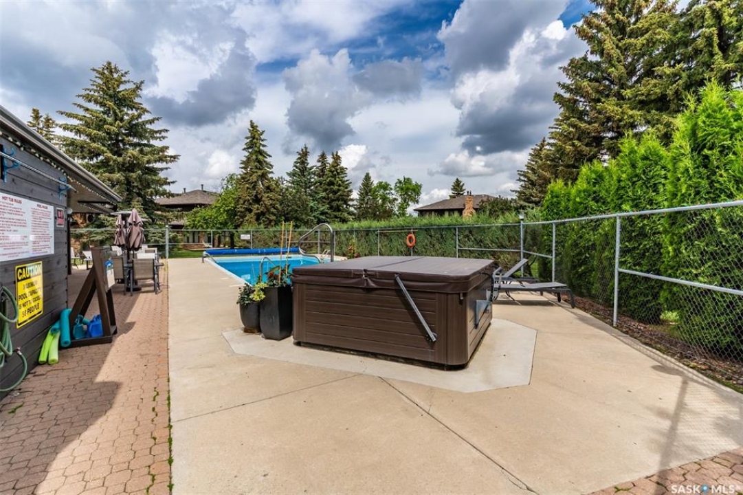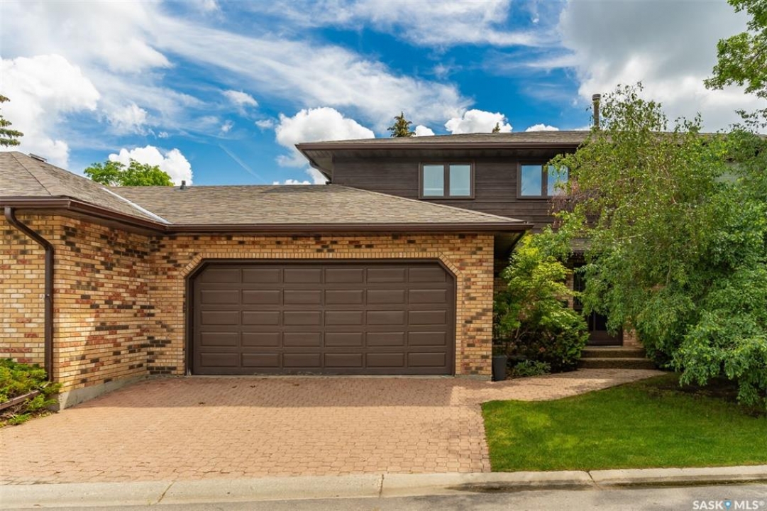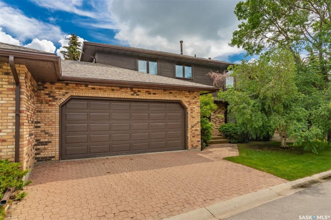 Welcome to one of Saskatoons finest condominium developments- Heritage Estates. This 1795 sq.ft, two story townhouse has had numerous upgrades including a stunning kitchen complete with leather looking countertops and island with gorgeous countertop. During the renovations they also added in a built in hutch in dining nook area. There is a gas FP in living room that compliments both dining and living room area. Garden doors off nook to rear interlocking brick patio and grassed area with the pool and clubhouse access nearby. The home offers 2 bedrooms plus a den that overlooks the main floor front entry (potentially could be a 3rd bedroom)on the 2nd floor. The Master bedroom offers 3 closets as well as a 4 piece ensuite consisting of double sinks in vanity, toilet plus a large soaker tub. The 2nd bedrooms is also a good size with double closet. The main floor also offers a 2 piece bath/laundry combination room. This home has had numerous upgrades including the triple pane LowE argon PVC windows and a upgraded water heater. The double attached garage is finished and offers direct entry (inside dimensions are 23' deep by 20' wide). The lower level has approx 9' high ceilings and is open for your own personal development. Condo fees are set at $578/month (Professionally managed) which includes common insurance & maintenance, snow removal for driveway and sidewalk and roadway within complex, lawn care, garbage & reserve fund. This development has recently had all roofs within the redone. Not only will you appreciate the luxury living space, you can immerse yourself into the community offered within this long standing condo complex. They have a variety of weekly events with a Thursday Happy hour, pickle ball, coffee gatherings and plenty of card games. You will be able to enjoy the outdoor pool, and recreation center and tennis courts that also serve as pickle ball courts. Taxes for 2025 $4111. For more information on this outstanding home contact your agent to view.