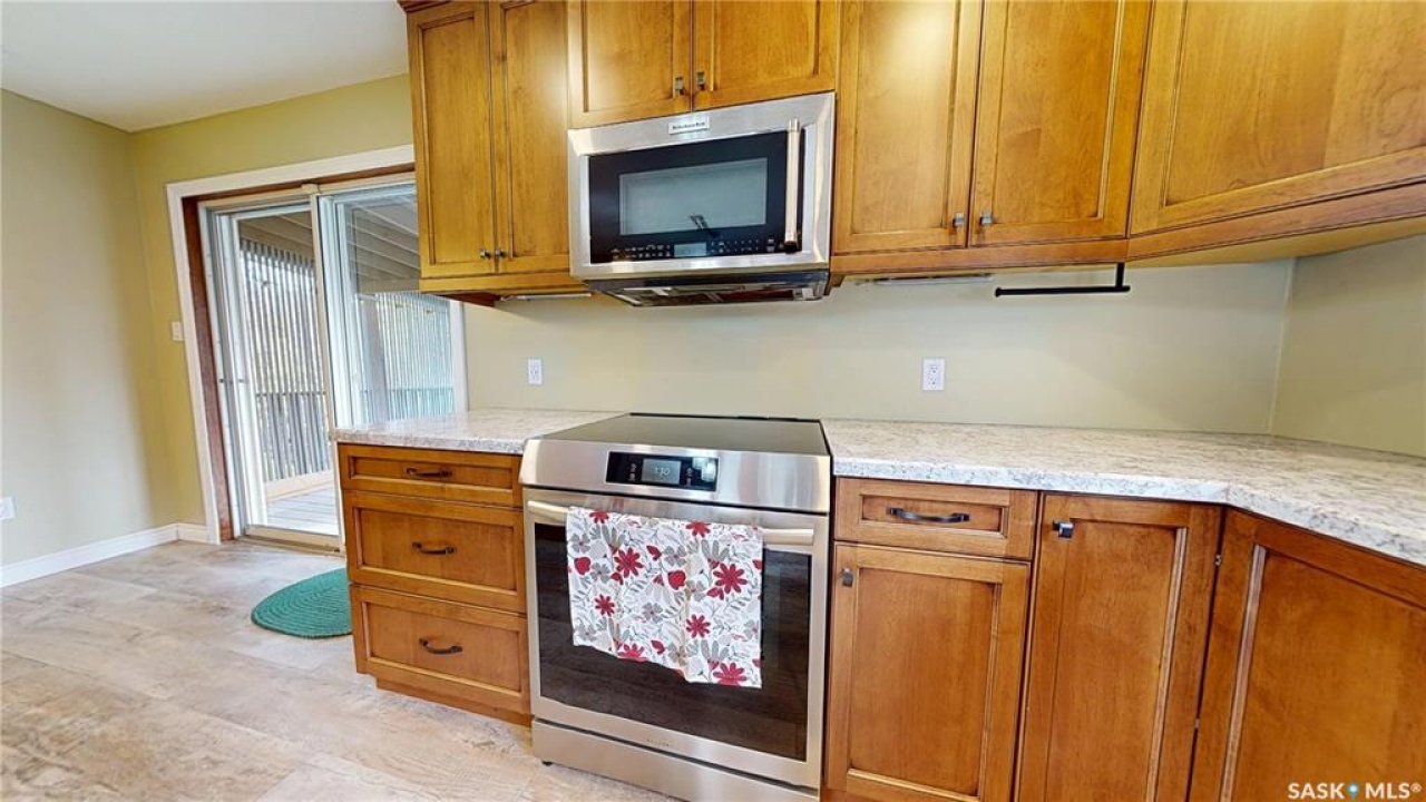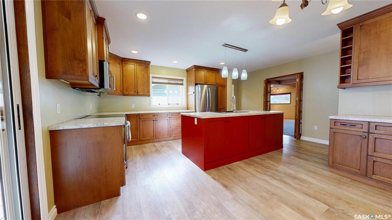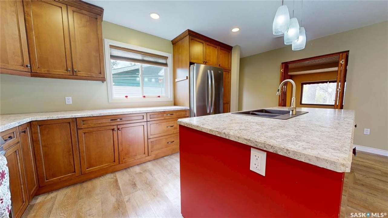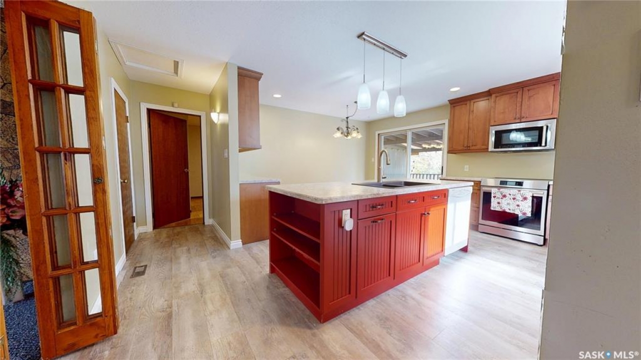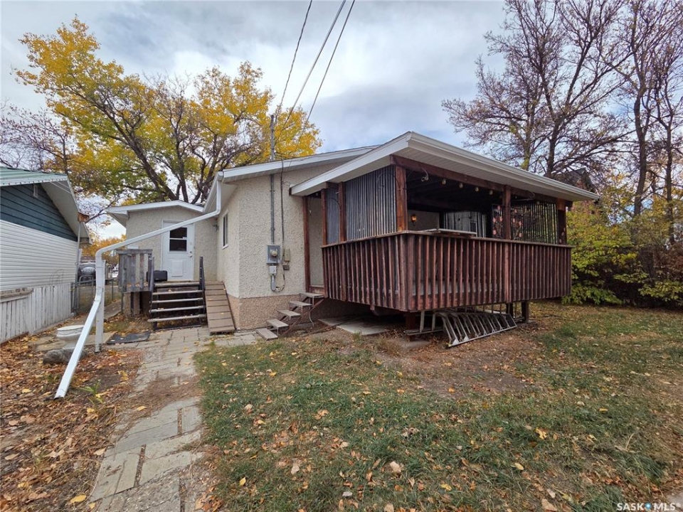 Priced to sell and available for quick possession, this home is an easy walk to Maple Creek's core shopping. This 2-bed 2-bath home has everything you need on one level. From the front entry you find a nice-sized living room and an adjacent den area that can be multi-functional as an office or easily converted into a 3rd bedroom. The rear of the home showcases a beautifully updated kitchen with a central island, sleek pot lighting, and modern appliances, complemented by a built-in display hutch. The dining area has glass doors leading out to the covered back deck, creating a feeling of spaciousness and would be a perfect spot for hosting friends and family. The Master bedroom easily can accommodate a king bed and has 3 pc ensuite. The 2nd bedroom is at the front of the home and beside the main 4 pc bath. The back entry porch has laundry with plenty of storage and high end side by side front load washer and dryer. The partial basement offers mechanical, good storage, and is large enough for development. This property also offers a double size detached garage with one side fully insulated, perfect for storage or use as a work shop/mancave. Exterior is stucco for minimal maintenance. Front c/c driveway, fenced back yard and extra gravel parking for more vehicles or RV. This home is a true gem at an affordable price. Don't miss your chance—call today and make it yours!