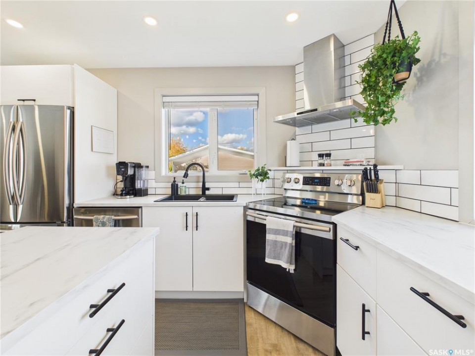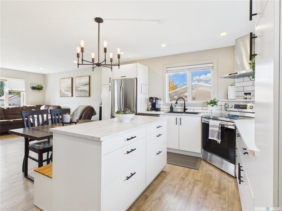 Welcome to MacDowall - the kind of place where neighbours wave, kids ride bikes till dusk, and life just feels a little slower in the best way. This freshly updated bungalow sits on a double lot and is ready for its next chapter. Inside you'll find 4 bedrooms and 2 bathrooms, with a bright, open-concept layout that's been thoughtfully refreshed. The kitchen is a total showstopper - flooded with natural light, full of storage, and designed for connection. The island bench even opens up for hidden storage and faces the dining area, making it the heart of the home. Throughout the main floor you'll love the newer vinyl plank flooring and fresh paint that gives the whole space a warm, modern feel. All the windows are newer, and the shingles are brand new, so you can move right in and enjoy with peace of mind. Step outside to enjoy your .26-acre double lot, complete with a new patio area perfect for firepit nights and summer hangs. The property has its own well for water with a septic-to-mound system, offering that small-town convenience with extra space and privacy. Whether you're starting out, downsizing, or raising a family, this home is a rare find in a truly special community. Just a short drive from Prince Albert, but it feels like a world away.