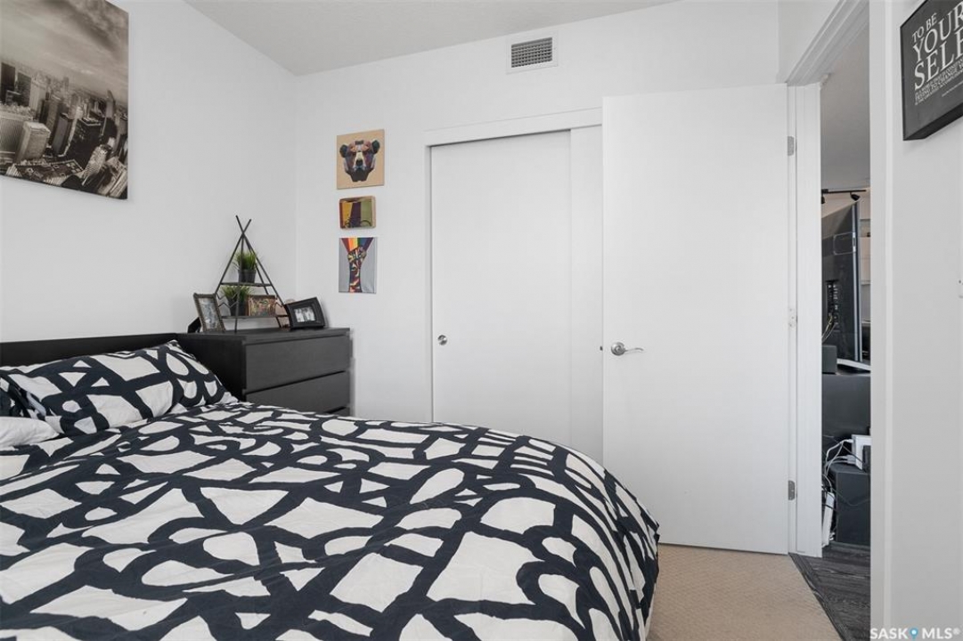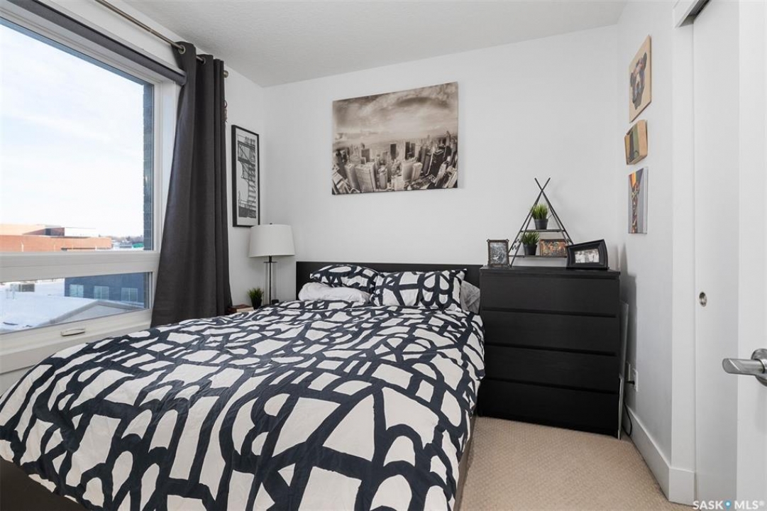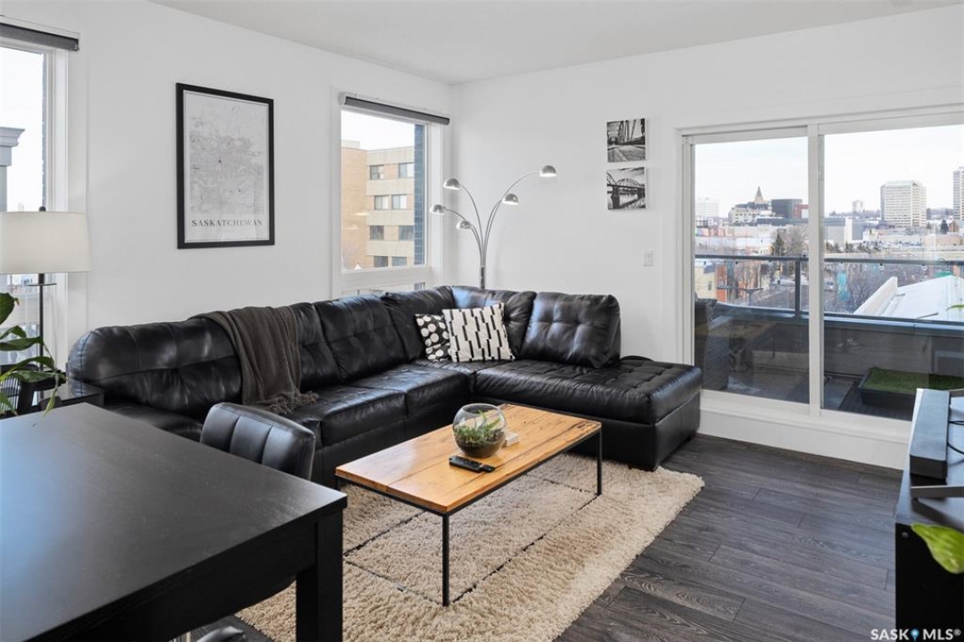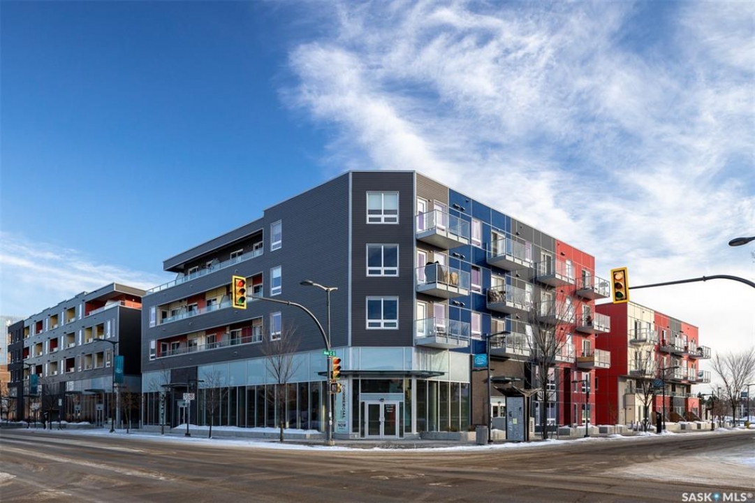 Vibrant Riversdale is calling you home!!! This corner unit with a stunning Downtown View from its LARGE BALCONY is just STEPS from the Riverbank, 20TH St, AND Downtown! This unit features a spacious bedroom, 1 bathroom, and a den/office. The kitchen is beautifully finished with high-quality cabinetry, quartz countertops, a stainless steel backsplash, and all appliances, including in-suite laundry. Riversdale is an exciting and vibrant neighbourhood, and this development is in the heart of it all. Homequarter, Guide Salon, and Local Barre are right in the complex, to name a few, with the action of 20th street at your fingertips. The unit also features heated underground parking, underground storage, and separate bicycle storage. Call your favourite realtor for a private viewing today!! Quick Possession Available!!