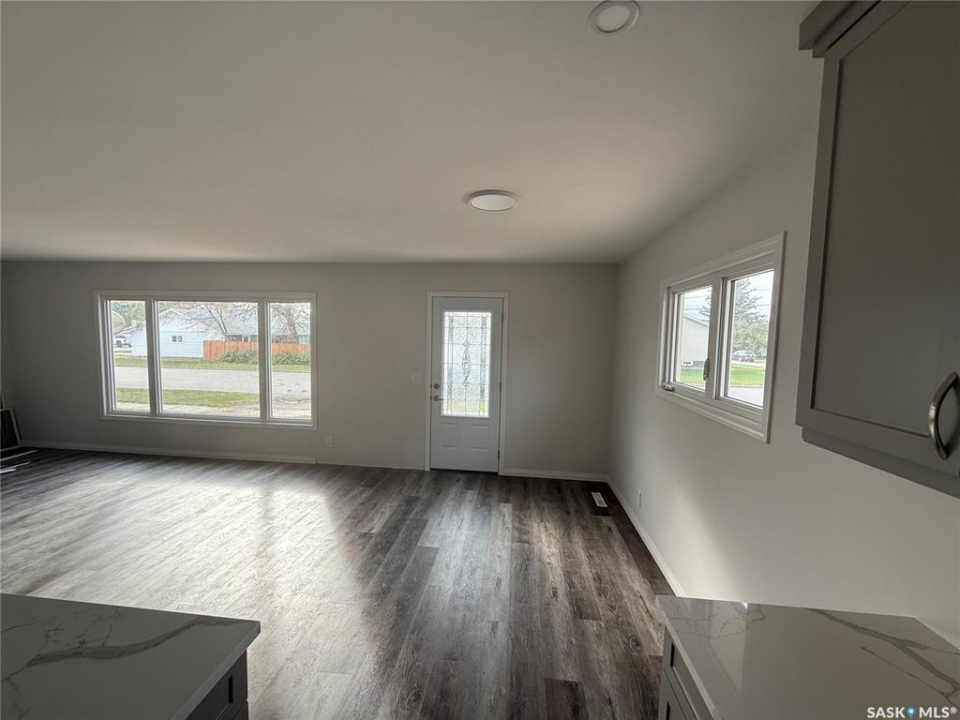 Take a look at this fully renovated 2 bedroom property with all the living space on the main floor. With just over 1000 square feet this home boasts of open concept living. The kitchen is spacious and offers a large island and tons of cupboard space. The kitchen, dining room and living room are open to each other which is great for someone who entertains. Down the hallway is a 4 piece bathroom and 2 good size bedrooms. The mudroom/laundry area have a wash sink. This area is just off the single attached garage. The great thing about this garage is that 2 vehicles could fit with one behind the other should you want. The yard is low maintenance and is a great location in town. Steps away from the local hospital, and a few blocks away from the school. Updates to the home include: NEW in 2025- Shingled roof, windows, central air conditioning, water heater, furnace, vinyl plank flooring throughout, bathroom, kitchen cupboards & counter top, doors & trim. Don't miss out on this beautiful property!