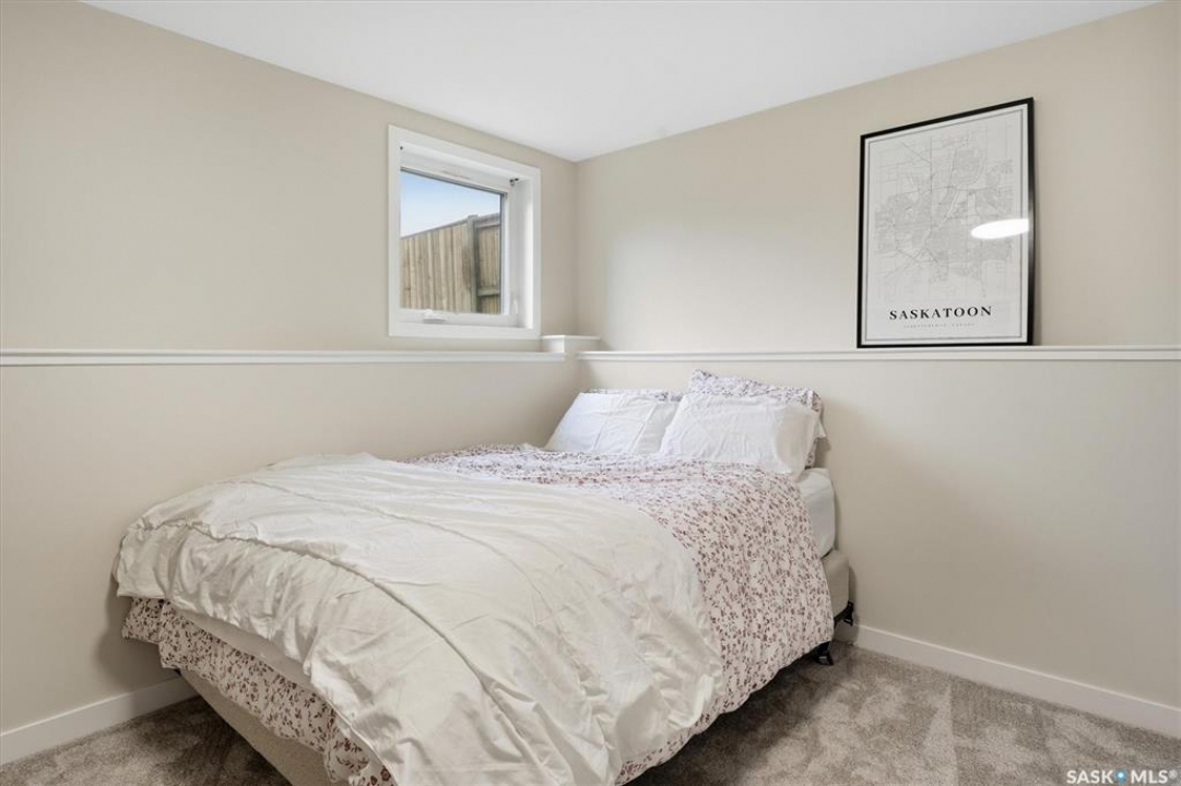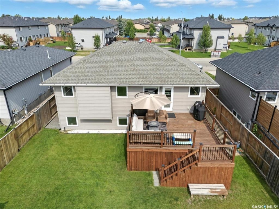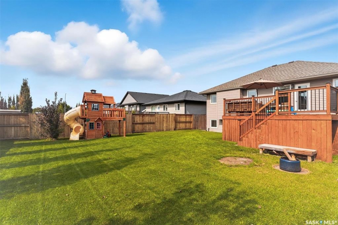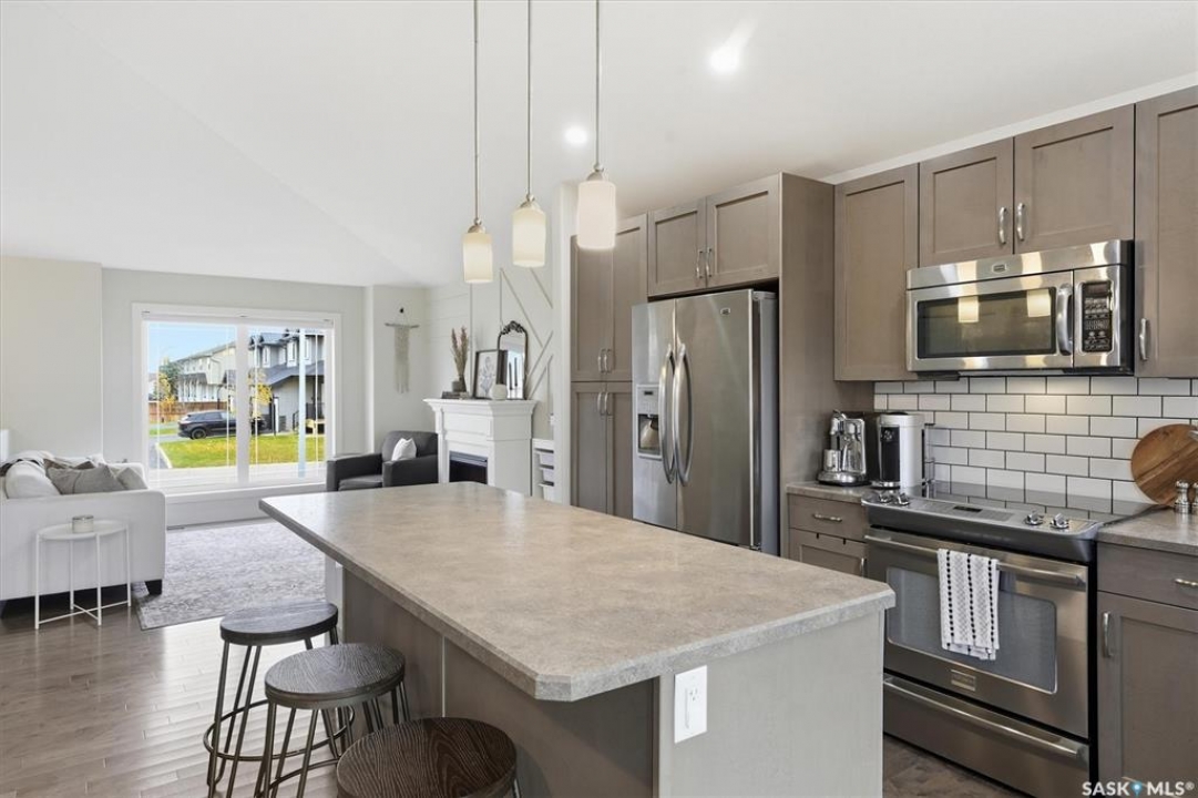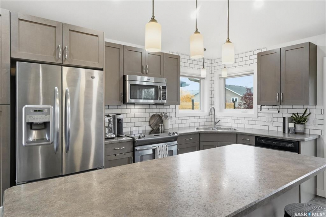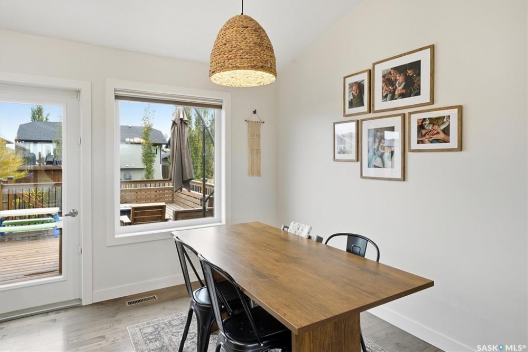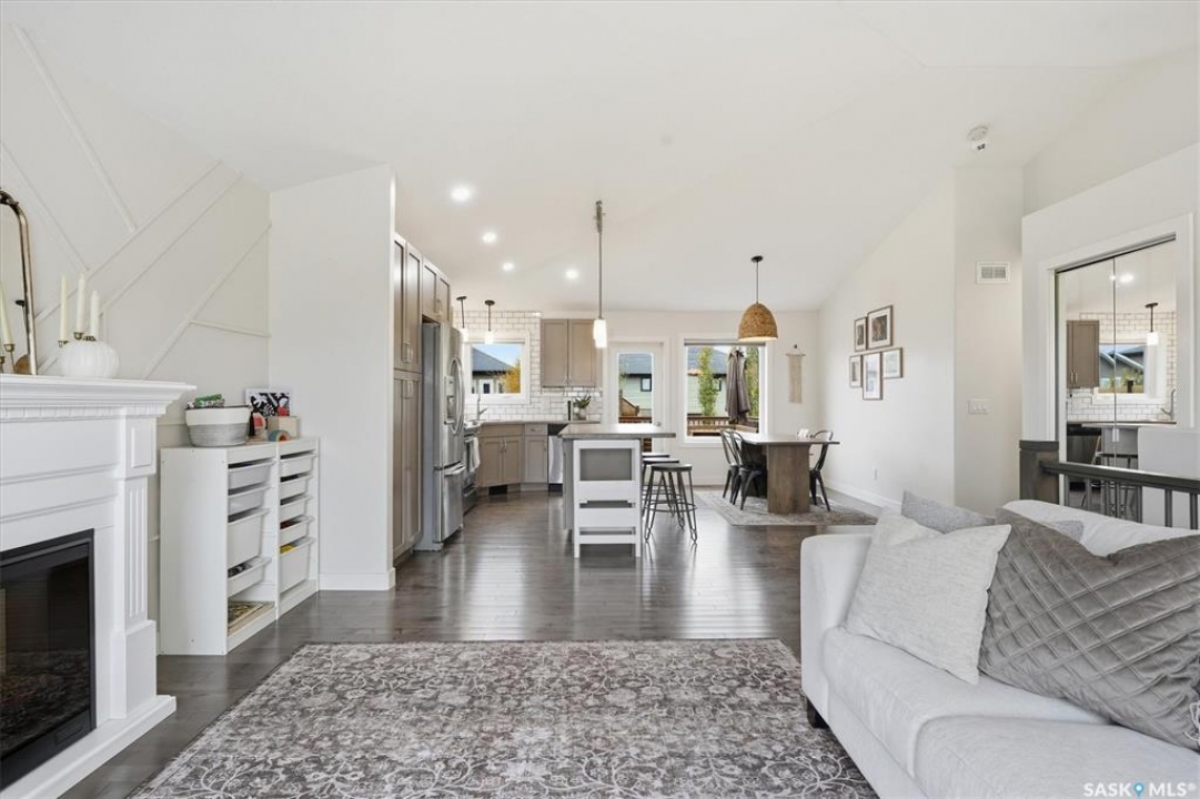 This beautifully designed bi-level home combines modern comfort with functional family living. The open-concept main floor features engineered hardwood flooring throughout the living room, kitchen, and dining areas. Vaulted ceilings and large windows fill the space with natural light, showcasing a custom feature wall in the living room. The kitchen is a chef's delight, offering a large island, abundant storage and counter space, a timeless subway tile backsplash, and a corner sink with views of the backyard. Garden doors off the dining area lead to a spacious deck, perfect for effortless indoor-outdoor entertaining. The main level includes a 4pc main bathroom and three bedrooms down the hall, including a lovely primary suite with a walk-in closet and 4-piece ensuite. The fully finished basement expands your living space with a bright family room, a games area, large windows, plush carpeting, a fourth bedroom, a stunning 3-piece bathroom, and a large laundry area with plenty of storage. The heated double attached garage impresses with epoxy flooring, and 10' ceilings. Enjoy the expansive backyard with plenty of room for kids and pets to play. Great location with easy access for your daily commute, walking distance to schools and parks. Call your favorite Realtor � today and come see it for yourself!