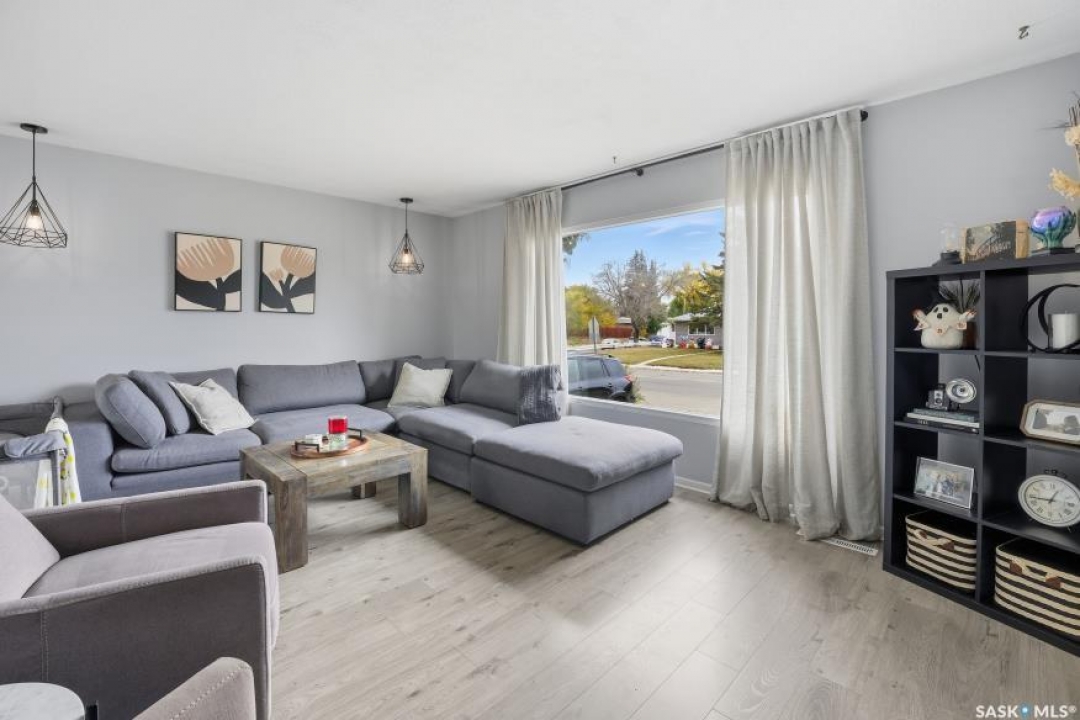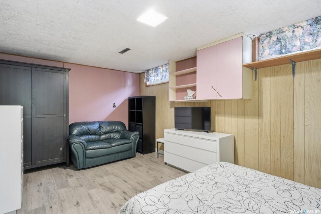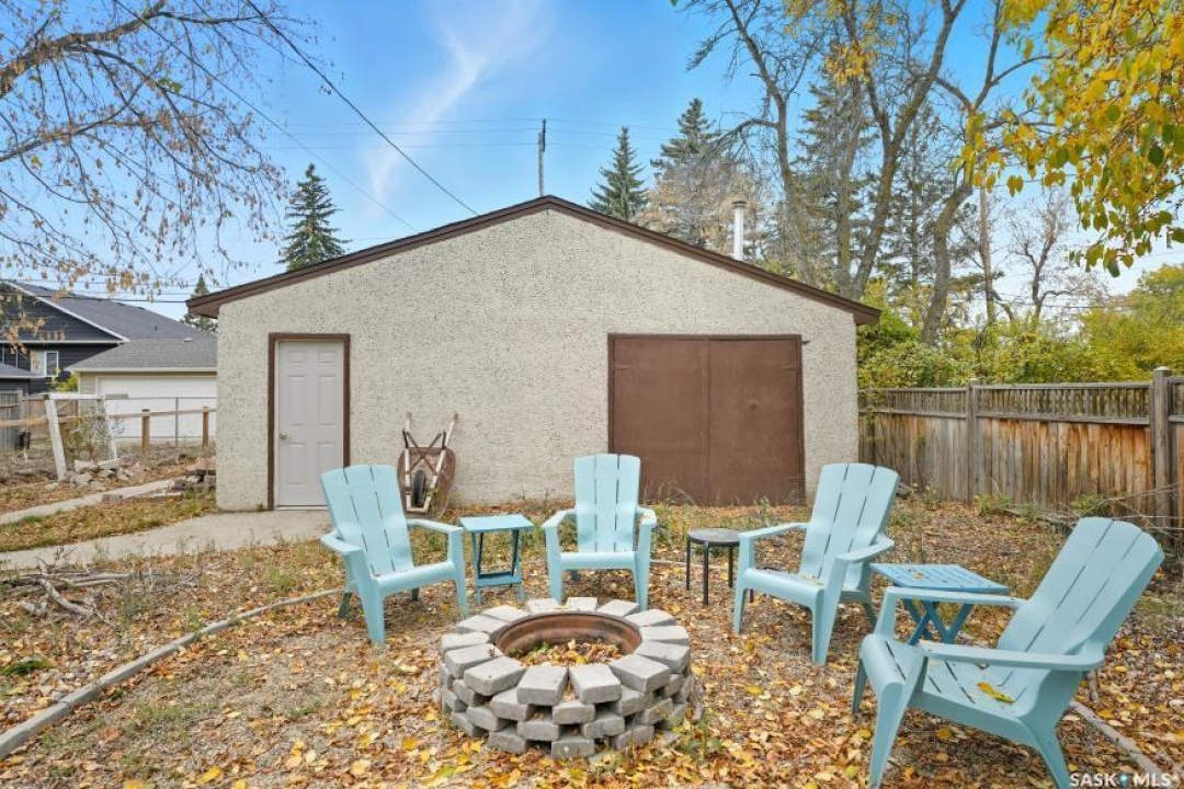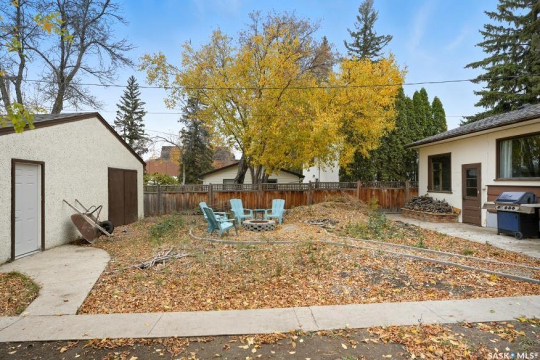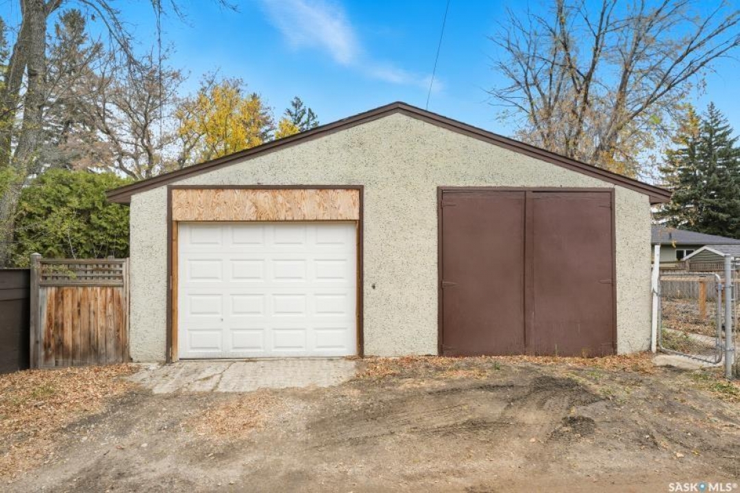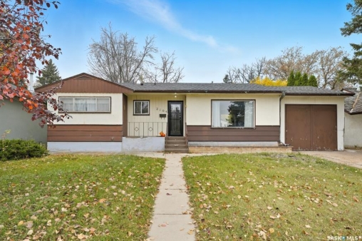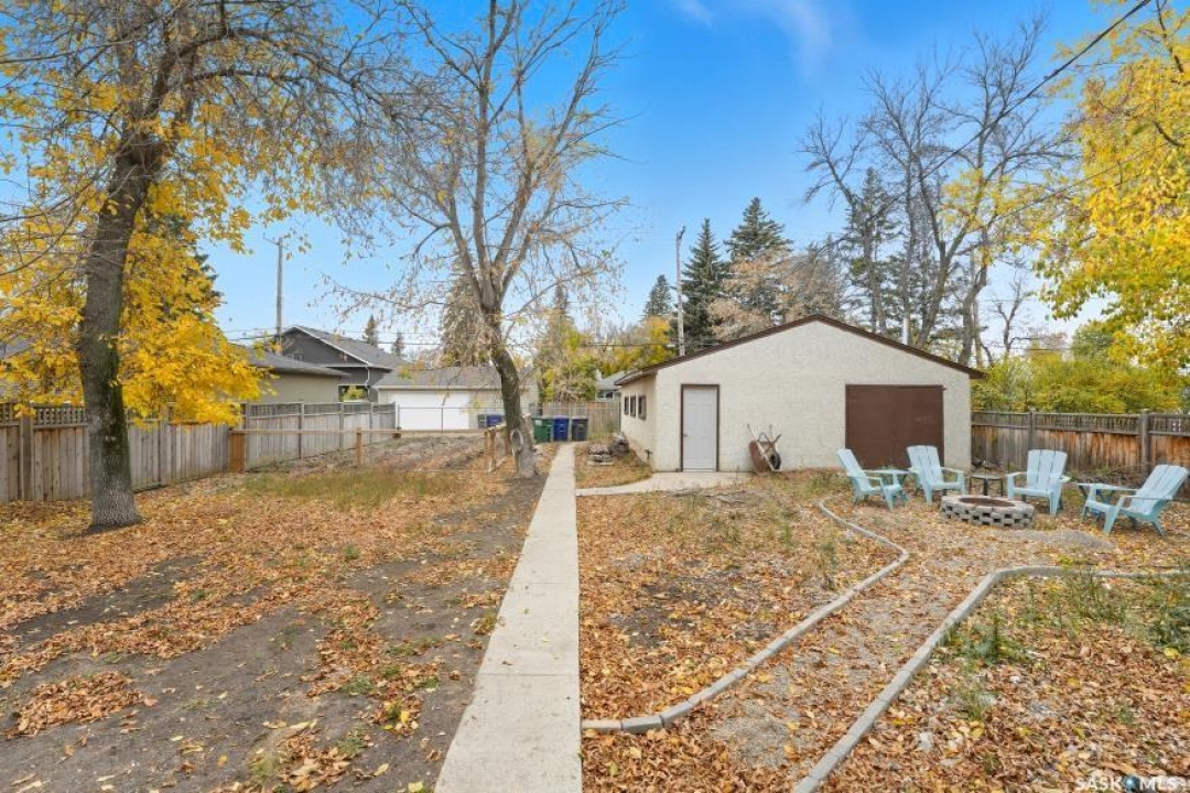 HUGE LOT! — this home is a must-see to truly appreciate all the updates and care that have gone into it. As you approach the property, you'll be welcomed by a spacious concrete step and patio, complemented by a new front door and screen. Step inside to find beautiful new grey laminate flooring throughout. This 1,102 sq. ft. bungalow features an inviting L-shaped living and dining room, complete with a built-in china cabinet. The kitchen overlooks the backyard and includes a three-year-old dishwasher, a two-year-old stove, and a brand-new vented hood fan. The main bathroom has been fully renovated — bright, modern, and ready to impress — and the main floor also offers three comfortable bedrooms. The fully developed basement adds tremendous living space, featuring a large family room with plenty of cabinetry, a sauna, two additional bedrooms, a two-piece bath, and a spacious laundry room with a sink and ample storage. Step outside to the expansive backyard on a 63.96' x 131.78' lot, where you'll find a 26x30 heated detached garage, a single attached garage, a fire pit area, and a large garden plot — with plenty of room left for kids or pets to play. Other updates include five-year-old shingles on the house and three-year-old shingles on the garage. Conveniently located close to schools, the University of Saskatchewan, shopping, and parks, this beautifully maintained home offers comfort, functionality, and great value for today's buyer.