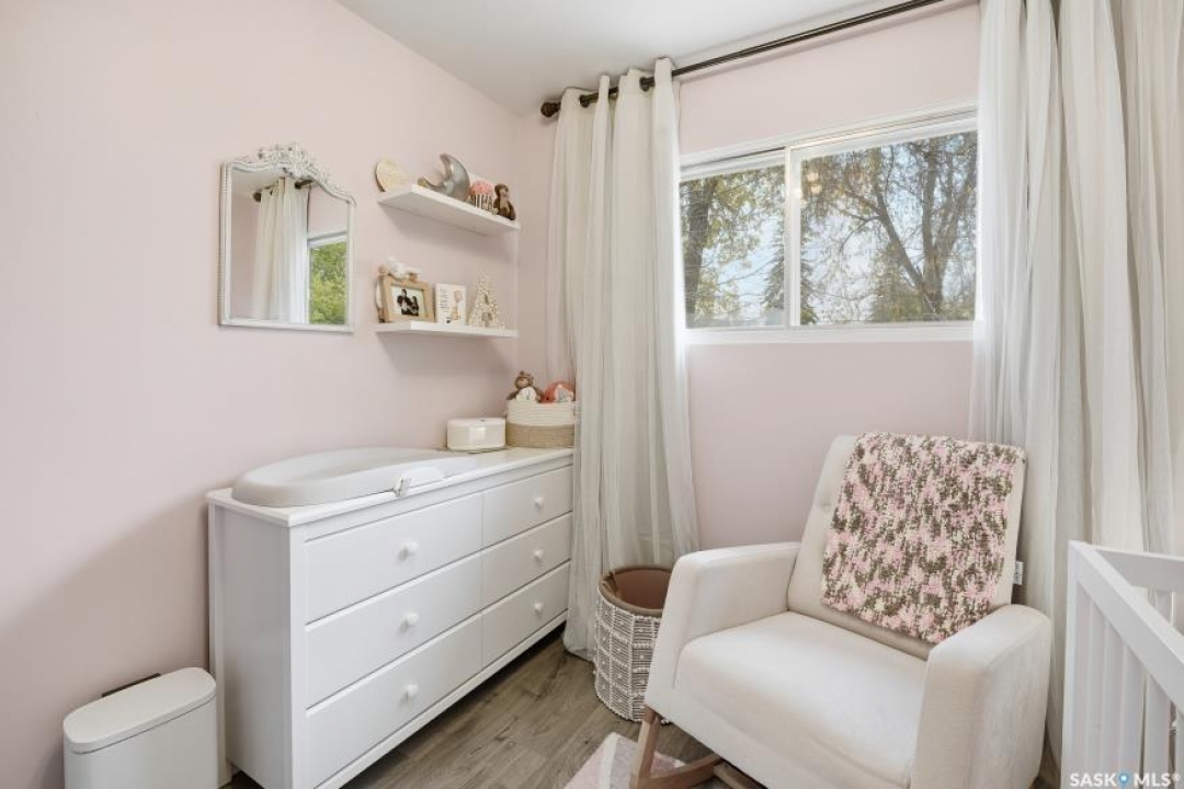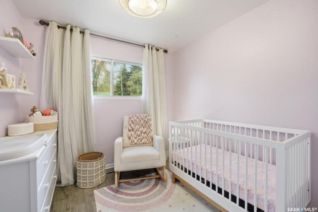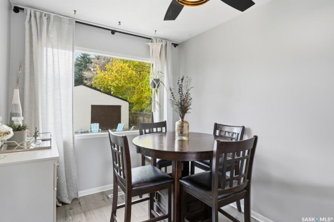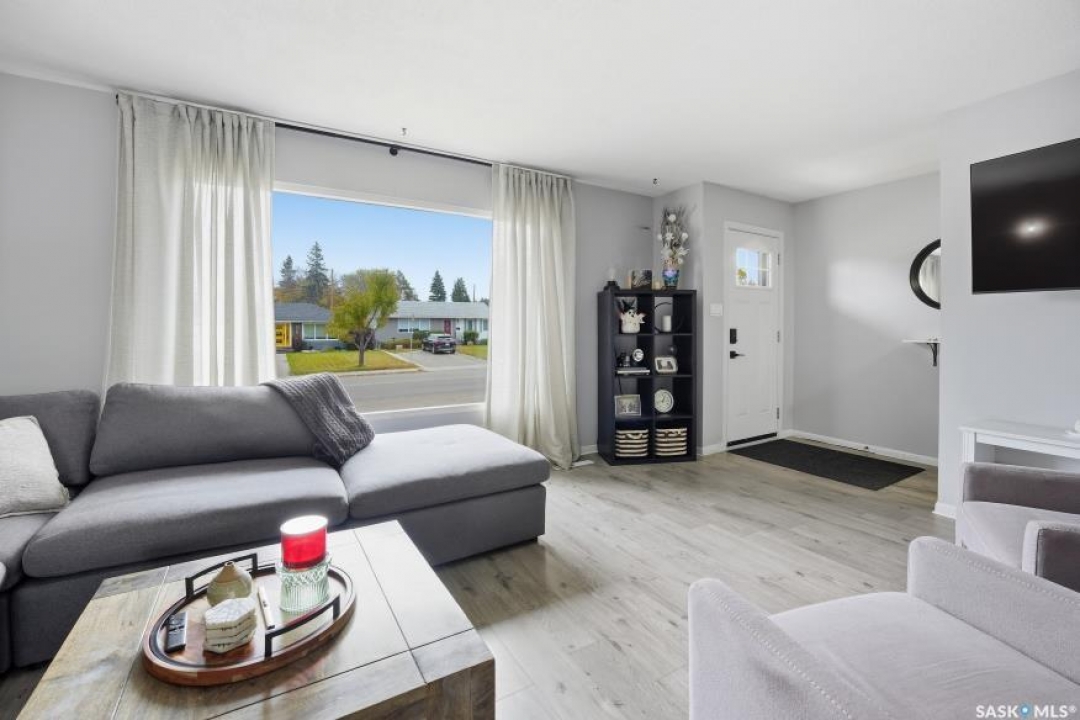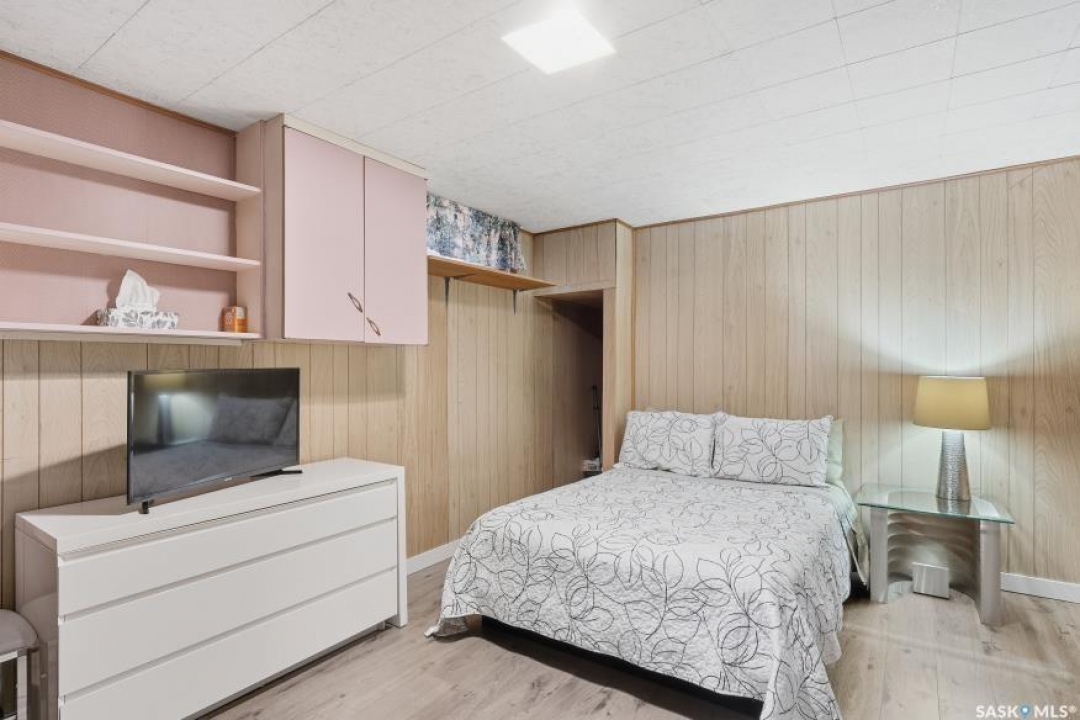 HUGE LOT! — this home is a must-see to truly appreciate all the updates and care that have gone into it. As you approach the property, you'll be welcomed by a spacious concrete step and patio, complemented by a new front door and screen. Step inside to find beautiful new grey laminate flooring throughout. This 1,102 sq. ft. bungalow features an inviting L-shaped living and dining room, complete with a built-in china cabinet. The kitchen overlooks the backyard and includes a three-year-old dishwasher, a two-year-old stove, and a brand-new vented hood fan. The main bathroom has been fully renovated — bright, modern, and ready to impress — and the main floor also offers three comfortable bedrooms. The fully developed basement adds tremendous living space, featuring a large family room with plenty of cabinetry, a sauna, two additional bedrooms, a two-piece bath, and a spacious laundry room with a sink and ample storage. Step outside to the expansive backyard on a 63.96' x 131.78' lot, where you'll find a 26x30 heated detached garage, a single attached garage, a fire pit area, and a large garden plot — with plenty of room left for kids or pets to play. Other updates include five-year-old shingles on the house and three-year-old shingles on the garage. Conveniently located close to schools, the University of Saskatchewan, shopping, and parks, this beautifully maintained home offers comfort, functionality, and great value for today's buyer.