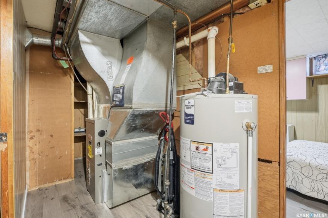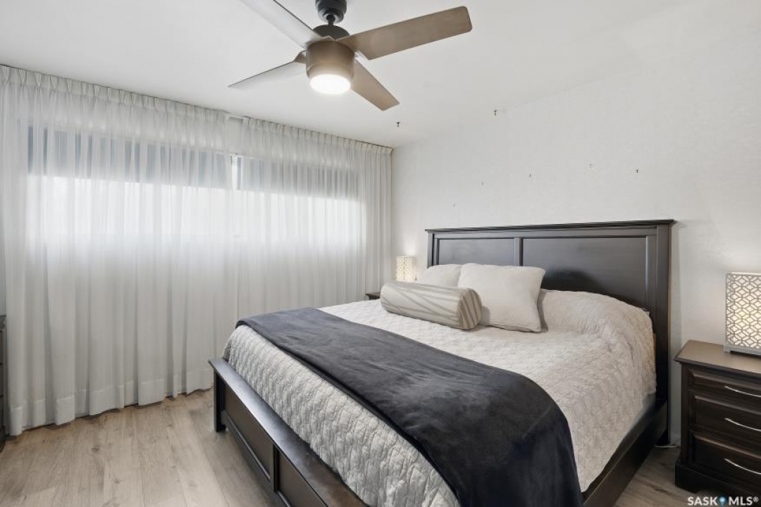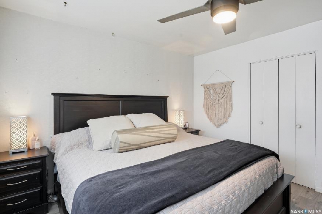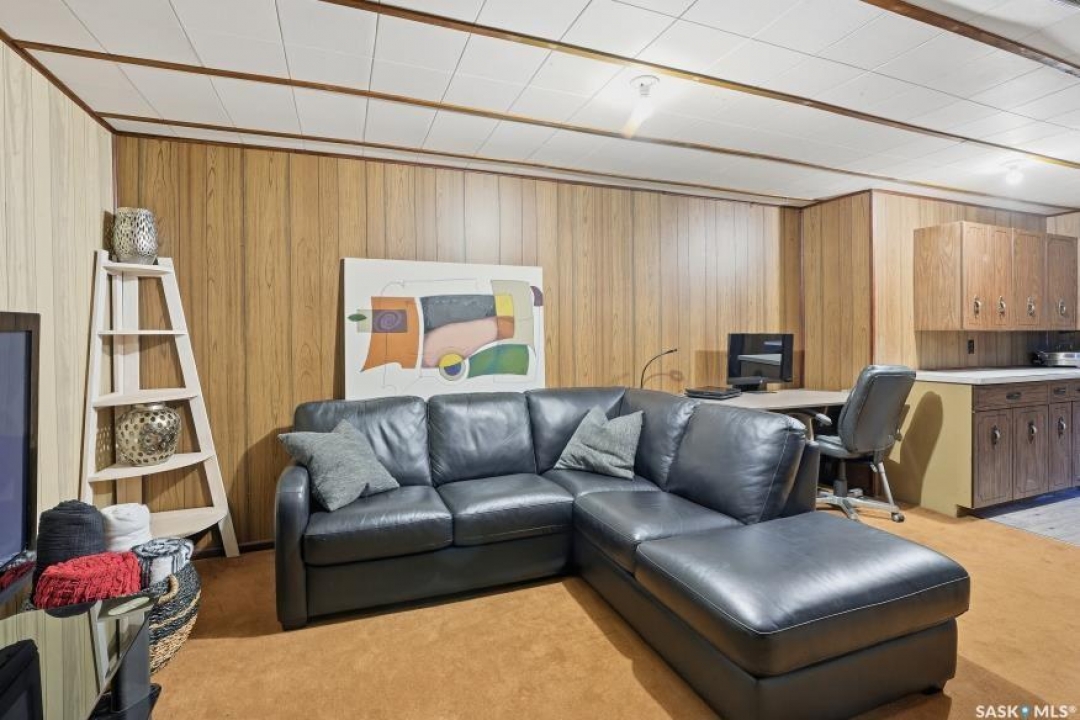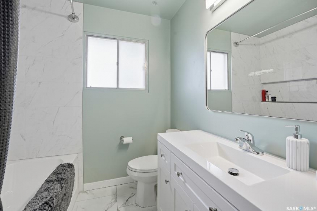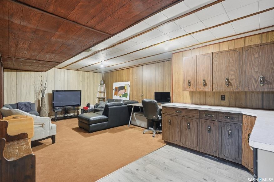 HUGE LOT! — this home is a must-see to truly appreciate all the updates and care that have gone into it. As you approach the property, you'll be welcomed by a spacious concrete step and patio, complemented by a new front door and screen. Step inside to find beautiful new grey laminate flooring throughout. This 1,102 sq. ft. bungalow features an inviting L-shaped living and dining room, complete with a built-in china cabinet. The kitchen overlooks the backyard and includes a three-year-old dishwasher, a two-year-old stove, and a brand-new vented hood fan. The main bathroom has been fully renovated — bright, modern, and ready to impress — and the main floor also offers three comfortable bedrooms. The fully developed basement adds tremendous living space, featuring a large family room with plenty of cabinetry, a sauna, two additional bedrooms, a two-piece bath, and a spacious laundry room with a sink and ample storage. Step outside to the expansive backyard on a 63.96' x 131.78' lot, where you'll find a 26x30 heated detached garage, a single attached garage, a fire pit area, and a large garden plot — with plenty of room left for kids or pets to play. Other updates include five-year-old shingles on the house and three-year-old shingles on the garage. Conveniently located close to schools, the University of Saskatchewan, shopping, and parks, this beautifully maintained home offers comfort, functionality, and great value for today's buyer.