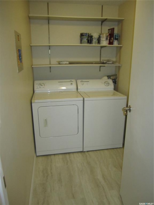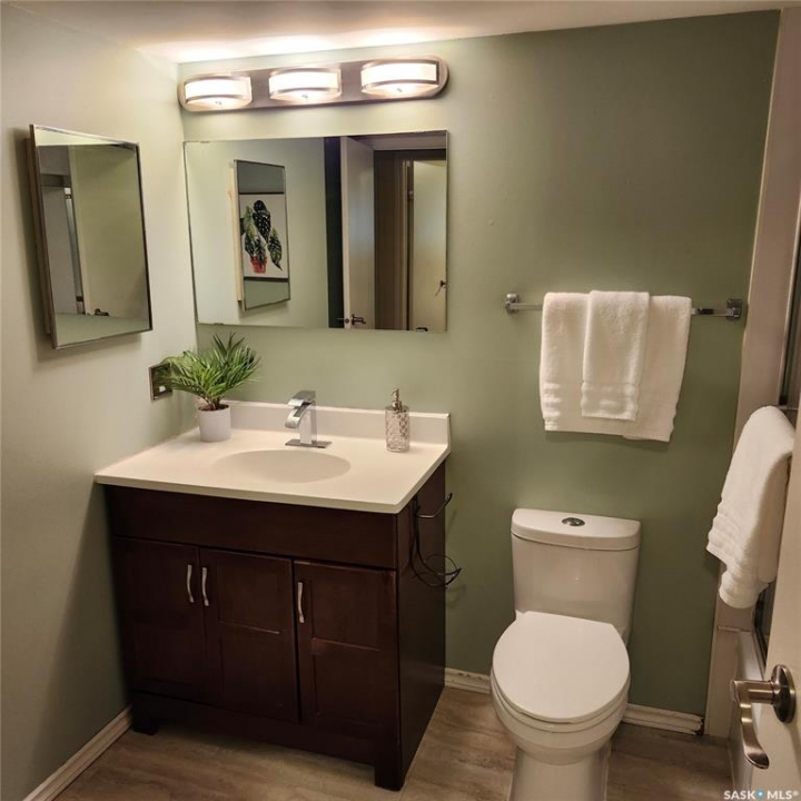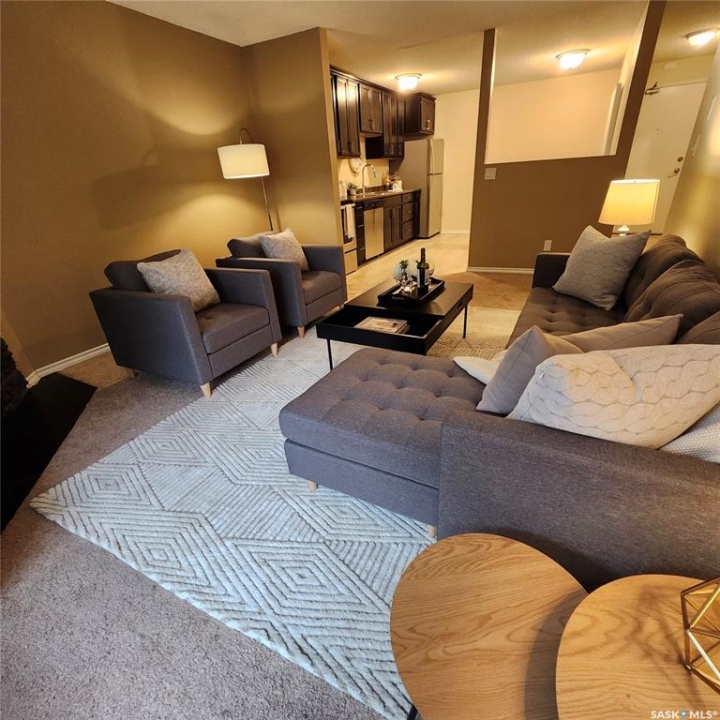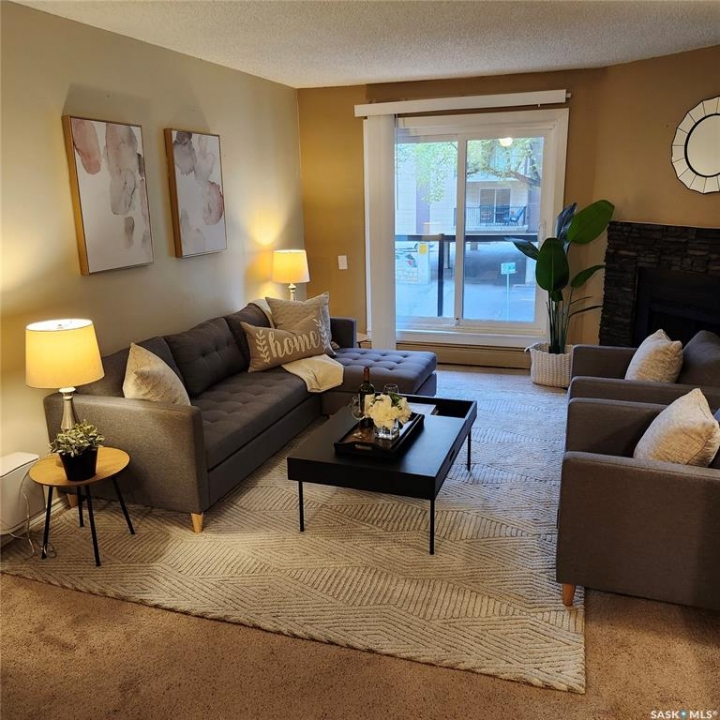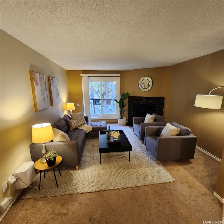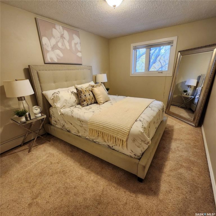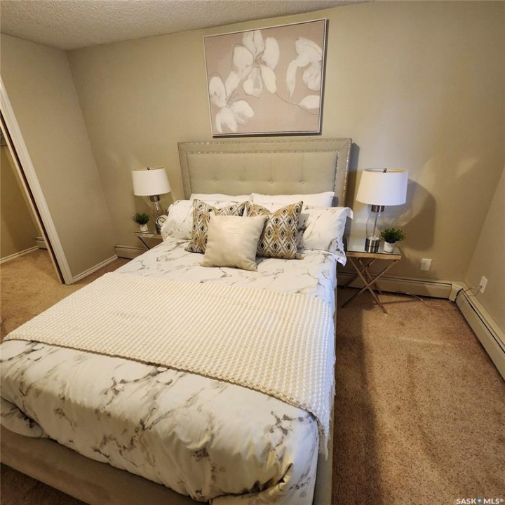 CITY PARK - - - Updated, spacious 2 bedroom condo in City Park walking distance to the river, U of S, and downtown. Renovations over the years include: newer kitchen with dark maple cabinets, countertops, vinyl plank flooring, sink, tap, & stainless steel appliances. Updated bathroom with newer vanity, taps, and tub surround. All newer trims & baseboards, paint, and lighting. Master bedroom with cheater ensuite & double closet. Ensuite laundry. Huge west facing balcony shaded by mature elm trees. One covered, electrified parking stall included. This spacious unit is in a superb City Park location. Great for U of S, AIRBNB, & downtown workers. Don't miss this one!