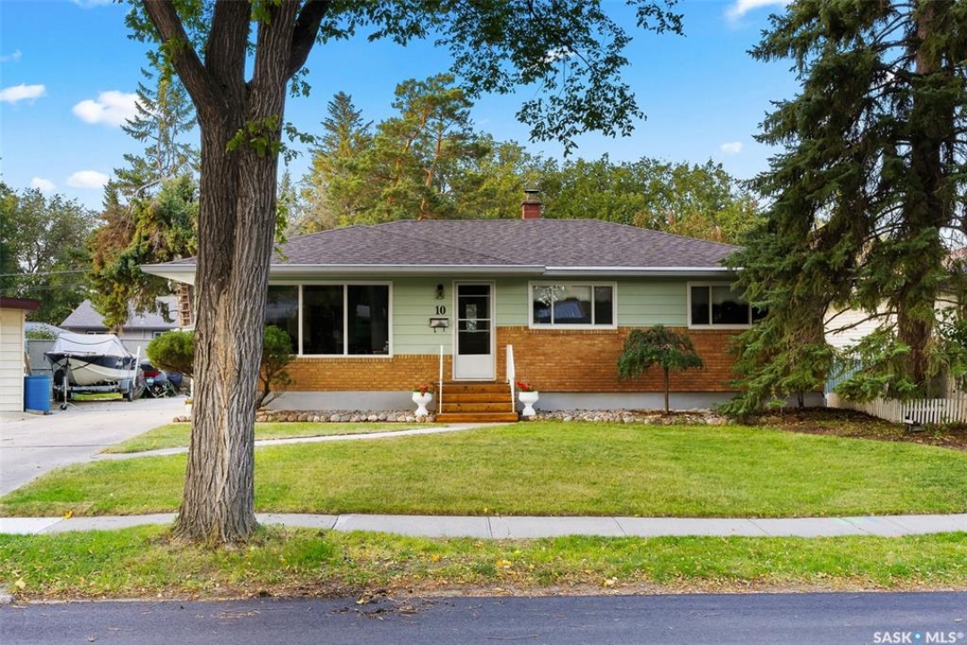 If you've been searching for your next family home in Regina's south end, 10 Dunning Crescent might be the one you've been looking for. This 1,232sqft bungalow is tucked away on a tree-lined crescent in the heart of Hillsdale, just steps away from Wascana Park, University of Regina, and the Conexus Art Centre. Walk in, and immediately be impressed with all the natural light that floods into the living room picture window. The dining room offers a built-in china cabinet. The kitchen has seen a recent refresh with stained oak cabinetry, glass tile backsplash, stainless steel sink, and countertops. The main floor offers three bedrooms and a large full 4pc. bath. The lower level is accessible through a direct back entrance so could be easily transformed into an income suite and offers a huge rec. room, spare flex room, a 4pc. bath, and laundry/storage area. Outside, you'll find a fully fenced, well-established yard with a shed and a single detached garage. Don't miss out on this incredible home in an outstanding location!