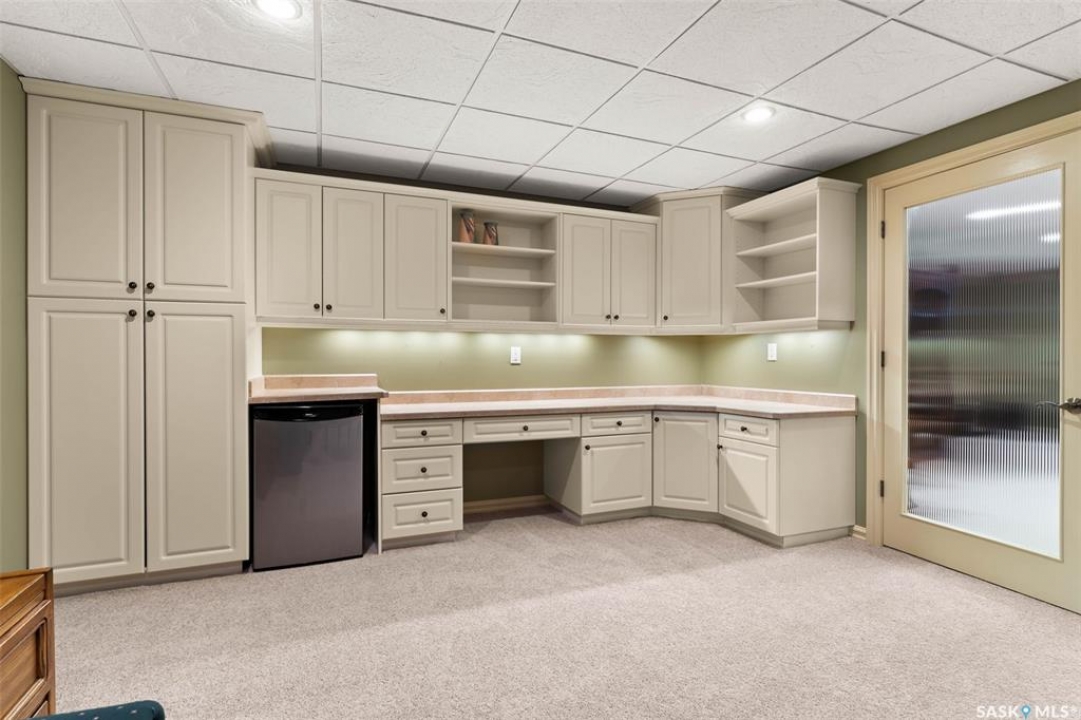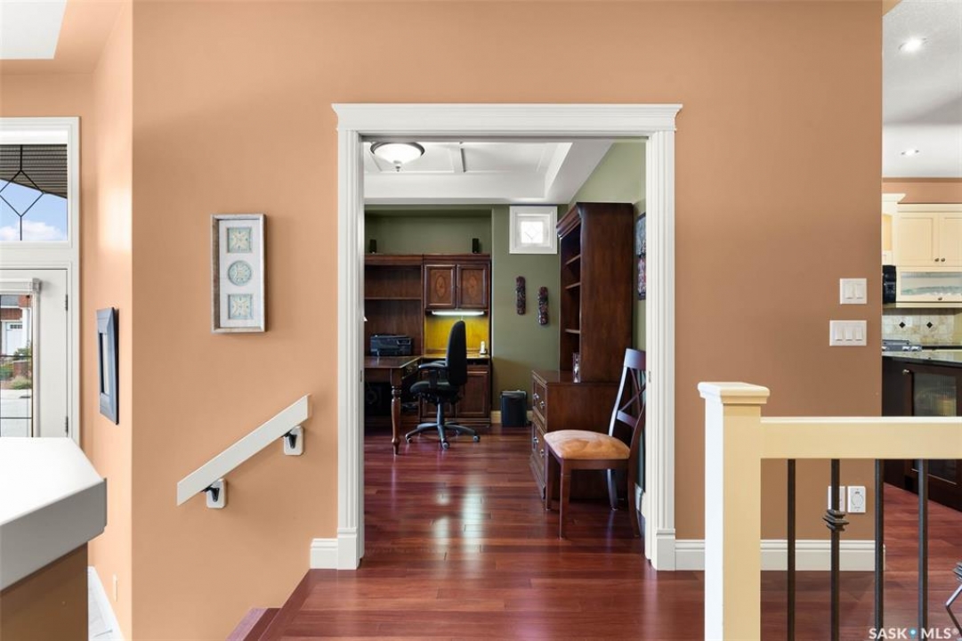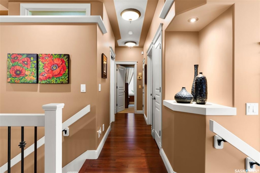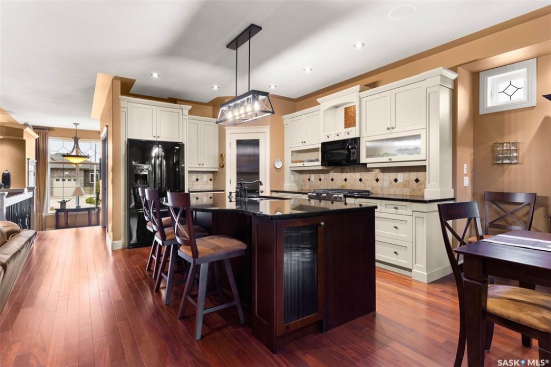 Welcome to this meticulously maintained custom-built bungalow by Munro Homes, ideally located just steps from the scenic Wascana Creek walking paths and McKell Wascana Conservation Park. This home has been lovingly cared for by its original owner and is truly move-in ready! Step inside to a spacious, welcoming entry that opens to a warm and inviting main floor with open-concept living. The kitchen features solid surface countertops, a gas range, walk-in pantry, and abundant cabinetry with a large island — perfect for cooking and entertaining. The living room offers a cozy gas fireplace, while the dining area easily accommodates family gatherings and opens onto a screened-in deck, extending your outdoor living space through three seasons. At the front of the home, a bright den provides the perfect office or reading space. The main floor also includes two bedrooms and two full bathrooms, including a spacious primary suite with dual walk-in closets and a luxurious ensuite featuring a soaking tub, walk-in shower, and dual sinks. A convenient laundry room with built-ins completes the main level. The fully finished basement offers an incredible amount of space to relax, work, or play — ideal for a home theatre, gym, games area, or craft space. You'll also find a third bedroom, a three-piece bathroom, and plenty of storage in the utility room. The in-floor heating adds a wonderful touch of comfort during cooler months. Additional highlights include an insulated and drywalled double attached garage (21' x 23.5'), underground sprinklers with drip lines, and a fully fenced, xeriscaped backyard for low-maintenance living. Contact your sales agent today to schedule your private showing!