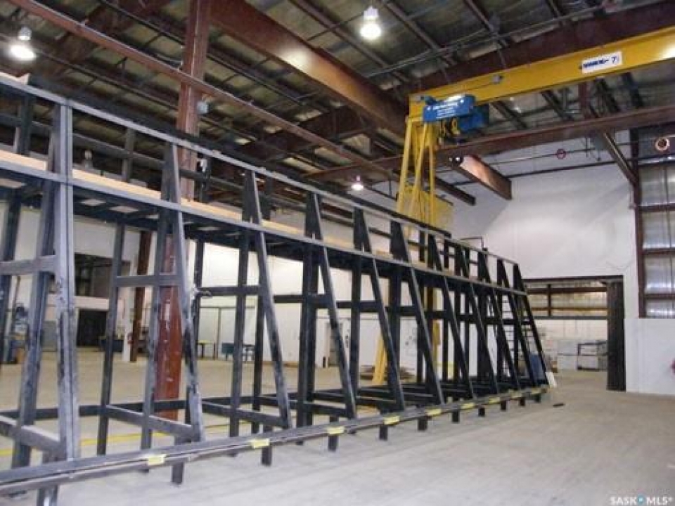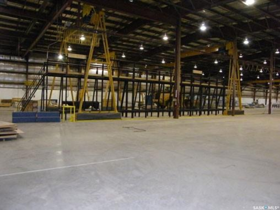 INDUSTRIAL BUILDING AND PROPERTY. The Main Industrial building is 91,300 sq. ft. single-story building with an additional 6,000 sq. ft. mezzanine with offices. The foundation and flooring are reinforced concrete slab. Pre-engineered steel structure with insulated metal cladding and metal roof. Radiant heat & full sprinkler system. With overhead doors ranging from 14 x 14 to 18 x 18 in size. Included are 1-20-ton crane, 2-10-ton cranes, 4-5-ton cranes. Second building is 3,920 sq. ft. with 2 overhead doors. Reinforced concrete floor. Pre-engineered steel structure with insulated metal cladding & metal roof. Radiant heating. Third building is 3,750 sq. ft. single-story wood frame building with metal siding. Overhead door. Irregular shaped lot of approx. 12 acres with 1,026.5 ft. of frontage (with fenced compound & security) along Canola Ave. Parsons Industrial Park North Battleford, SK. This property has a tenant with a full triple net lease to 2030. Also available is listing A2070374.