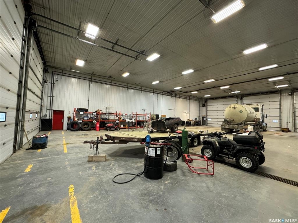 This impressive 24,000 sq ft commercial shop located in the industrial park along Highway 39, just east of Estevan, offers a prime location and exceptional functionality. With 20,000 sq ft of dedicated shop space, the property features one large 75x100 bay, two 50x100 bays each equipped with a 10-ton crane, and a 25x100 wash bay for added convenience. The remaining space is allocated to well-designed office areas, perfect for managing business operations. Situated on 8 acres of land, this property provides ample room for outdoor storage or expansion, making it ideal for heavy industrial use or businesses looking to grow.