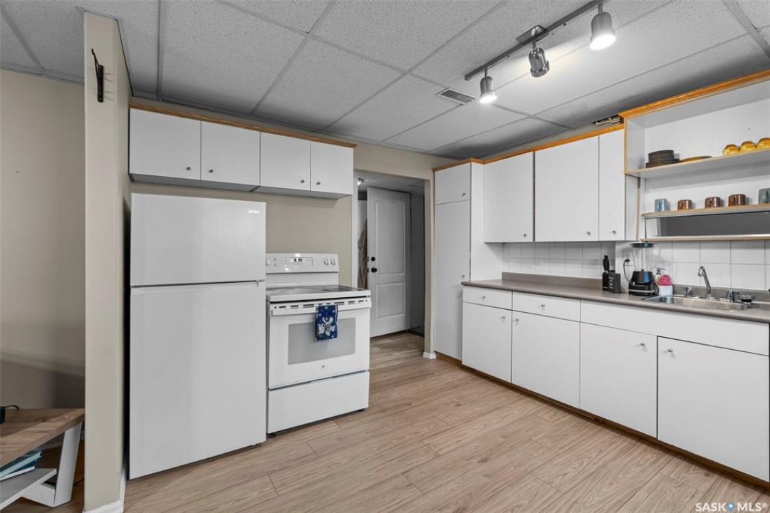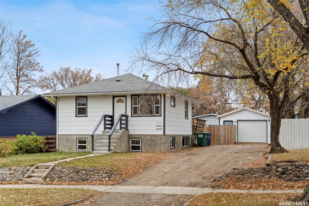 Welcome to 1508 Avenue H North. This raised bungalow is fully developed and sits on a huge lot (approximately 50' x 124', zoned R2). The main floor features a large side mudroom, an open concept kitchen and living room, 2 bedrooms, and the 4 piece bathroom. On the way to the lower level is the shared laundry. The basement (with separate entrance) is bright (huge windows) and spacious, featuring new laminate flooring in 2025, the open concept kitchen & living room, a large bedroom, and the 3 piece bathroom. The huge back yard is fully fenced, includes the deck, and the single detached garage. Tons of parking space in the oversized driveway. High efficient furnace and power vented water heater. All appliances included (new dishwasher in 2025, new fridge in 2024).