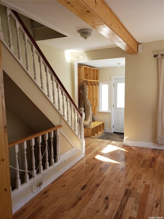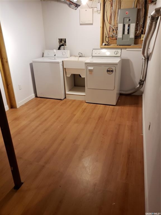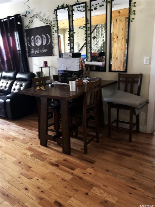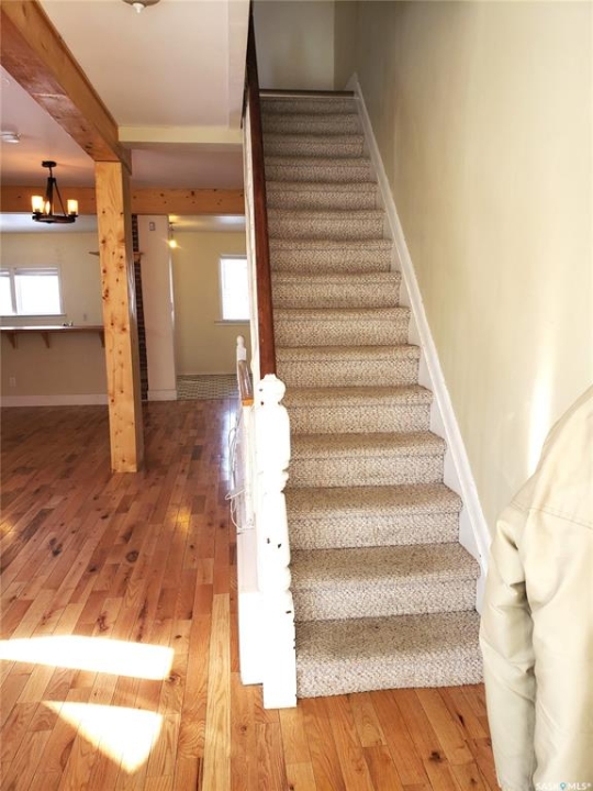 Nice Riversdale location, close to services, downtown and river. This well maintained 1350 sq. ft home has had a lot of improvements over the years. Walk up to a newer deck, large porch entrance, into the open living dining area complete with all new oak hardwood flooring. Large Primary Bedroom addition with large 4 piece bath. Large Kitchen/Dining includes all appliances. Upstairs to 2 smaller bedrooms and 3 piece bath. Downstairs to a warm high basement has been re dug, enlarged with a new steel beam and concrete, electrical as well. Includes a family room, extra bedroom and utility room as well as cold storage. Large cared for fenced yard has a lot of mature landscaping with a variety of shrubs and fruit trees and a paving stone patio. Single car garage with alley access, concrete floor and rear driveway, remote door and insulated. Note: Photos show the home vacant and occupied. Neighbouring homes are friendly, mostly owner occupied. Call for private viewing.