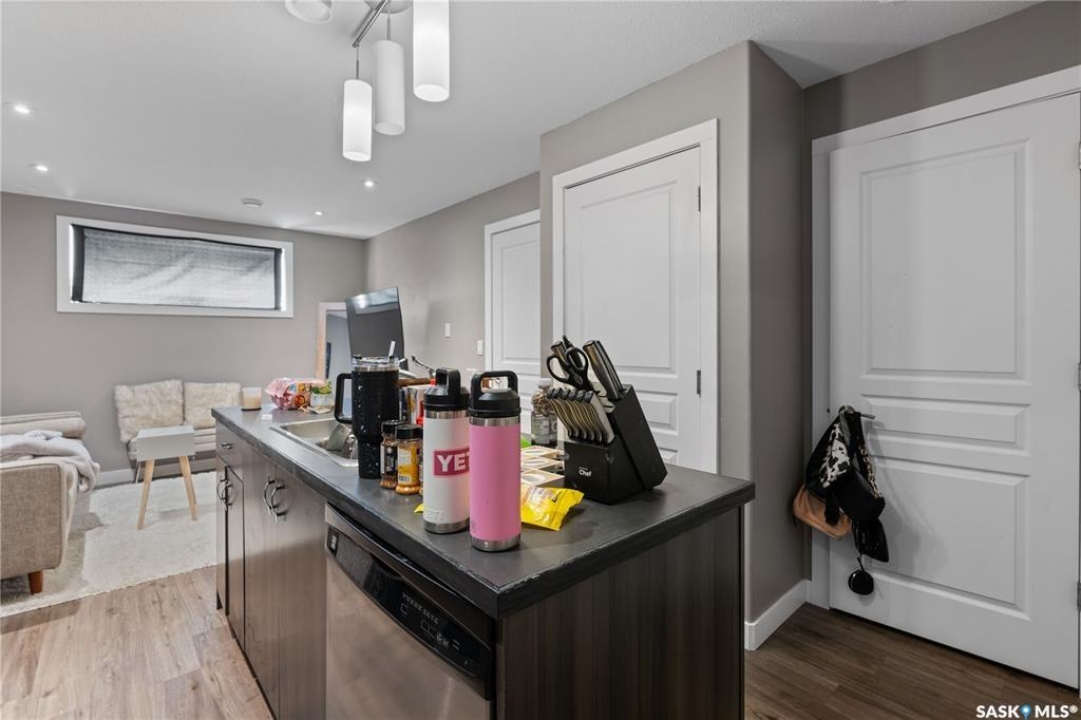 Welcome to 5214 Squires Road, a beautifully finished 2-storey home located in the vibrant community of Harbour Landing. This well-designed home offers a functional layout with modern finishes throughout. The main floor features 9-foot ceilings and an open-concept living area that flows seamlessly into the kitchen, complete with quartz countertops, tile backsplash, stainless steel appliances, and a convenient 2-piece bathroom. Upstairs, you'll find three spacious bedrooms, laundry area and two full bathrooms, including a primary suite with a private 4-piece ensuite. One of the standout features of this property is the fully finished basement with a separate side entrance. It includes a legal 1-bedroom suite with its own kitchen, bathroom, in-floor heating, and large windows, ideal for rental income. Outside, enjoy the low-maintenance exterior, a generous rear deck, and a double-car detached garage with rear lane access.